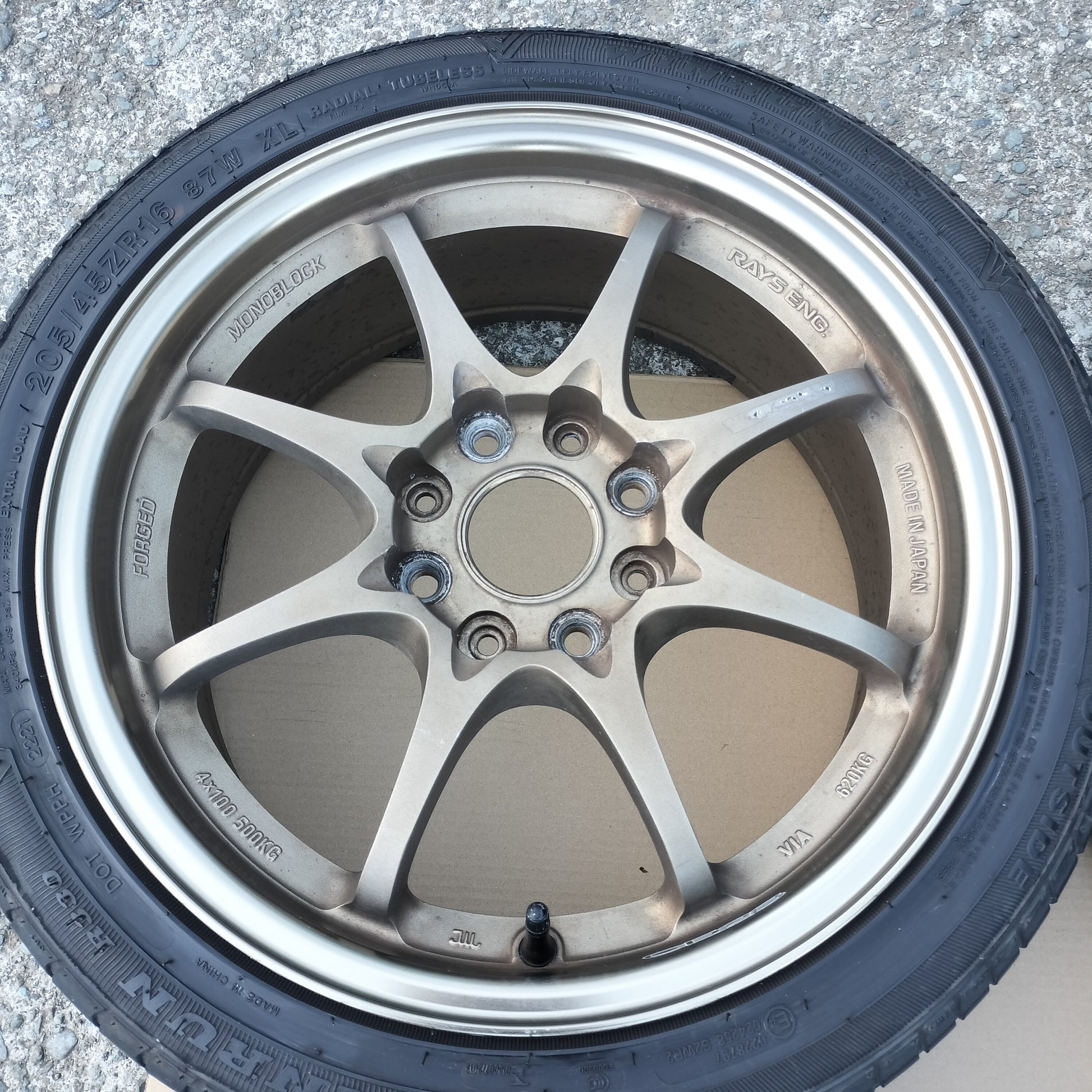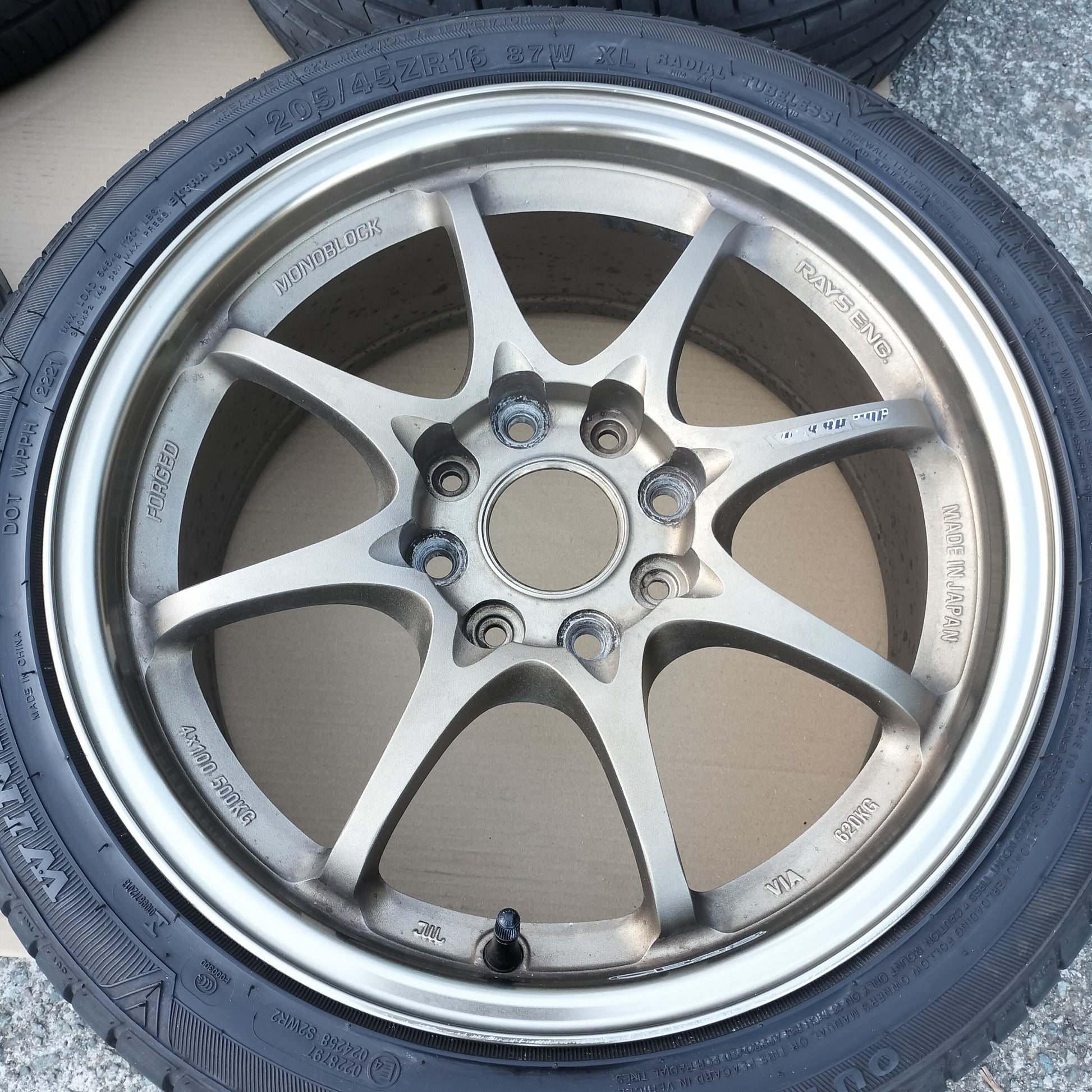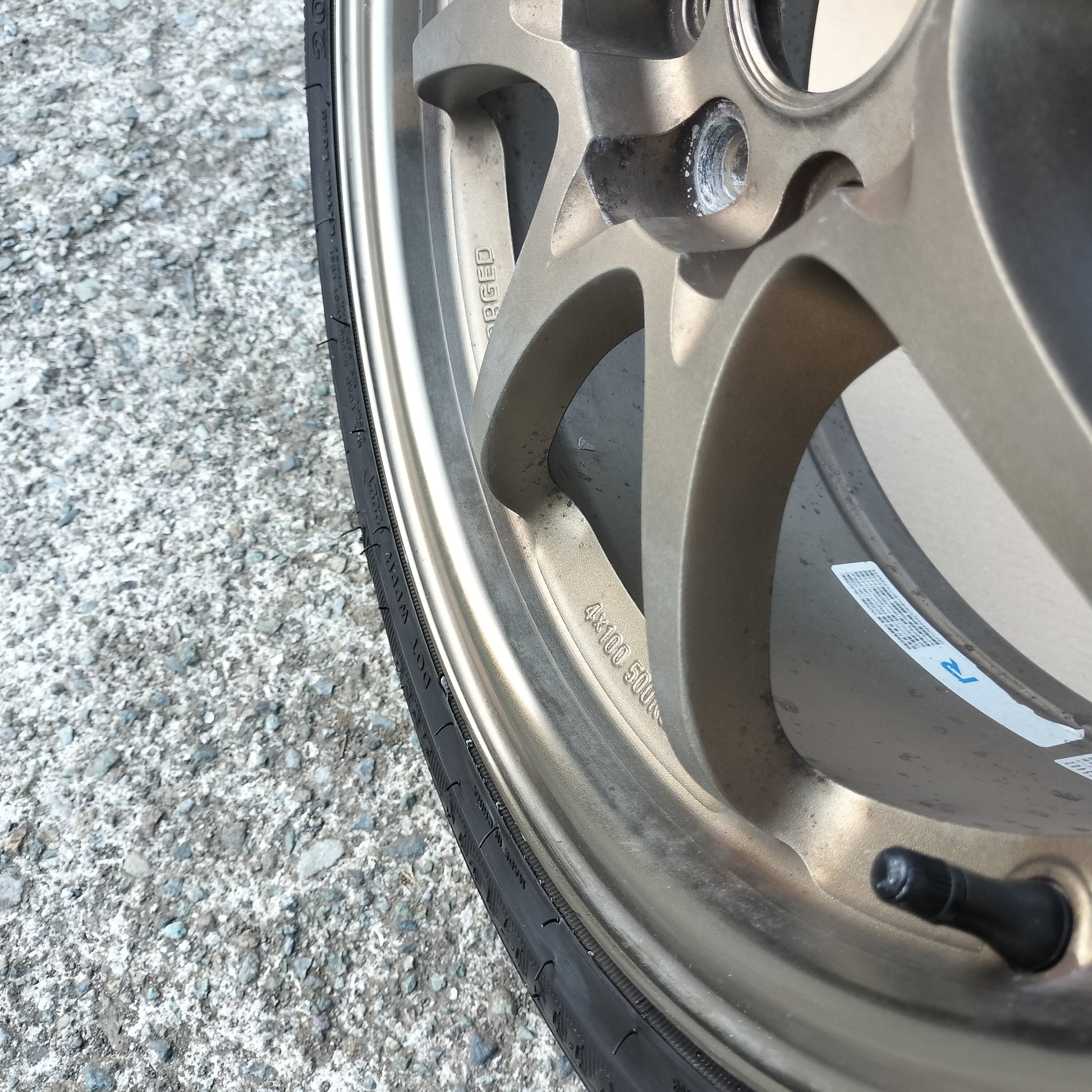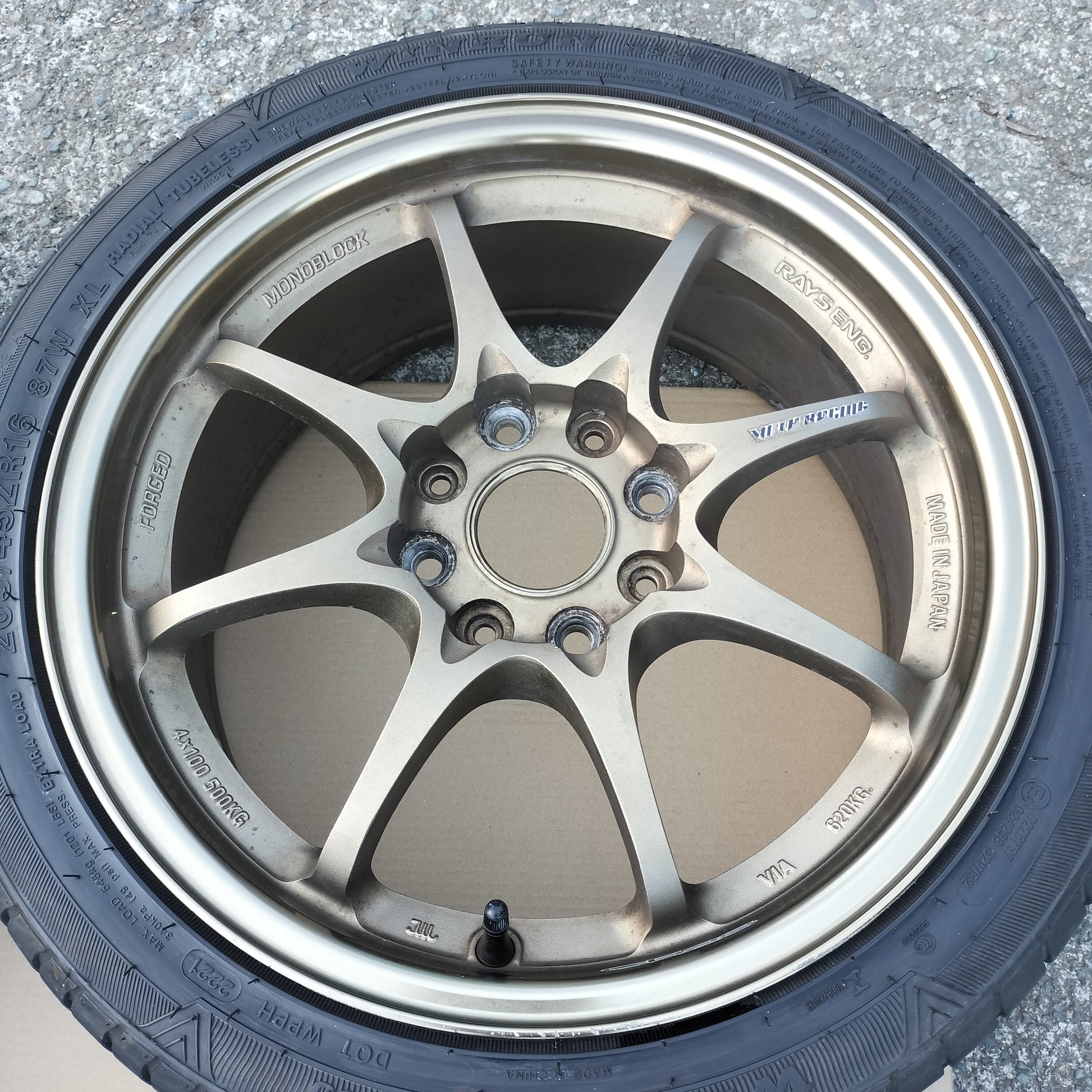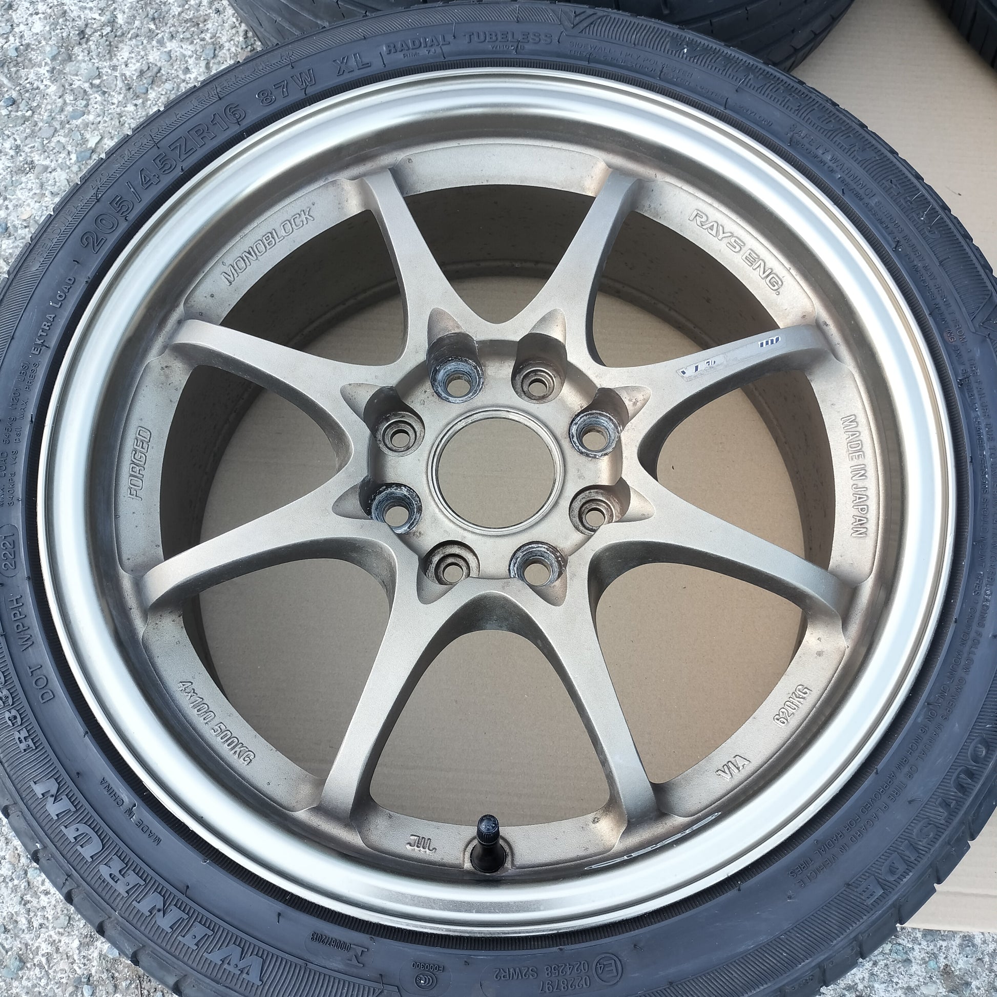 New black European valve stems (to replace the current generic rubber valve stems) and new black "VOLK RACING" "CE28" are included with the sale!