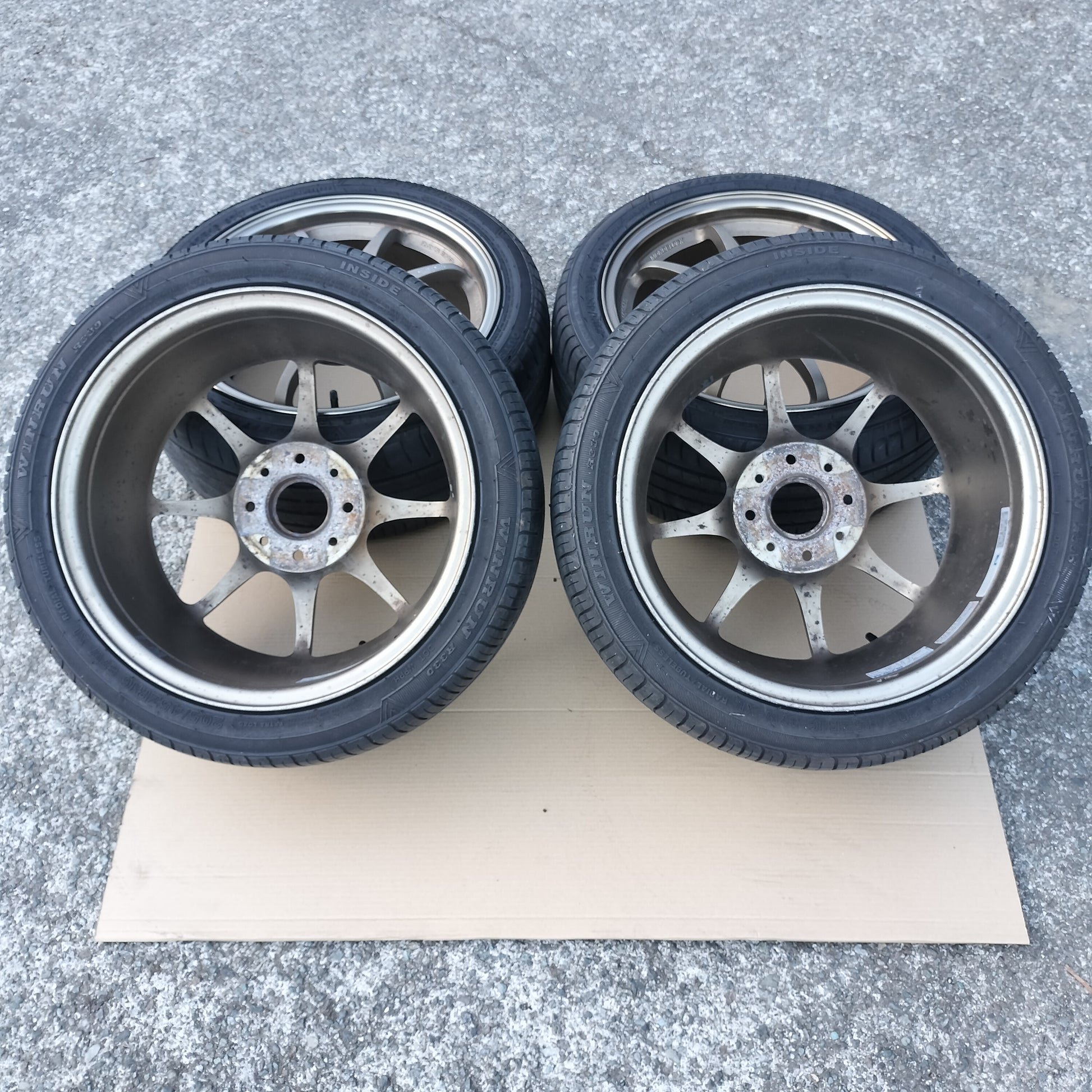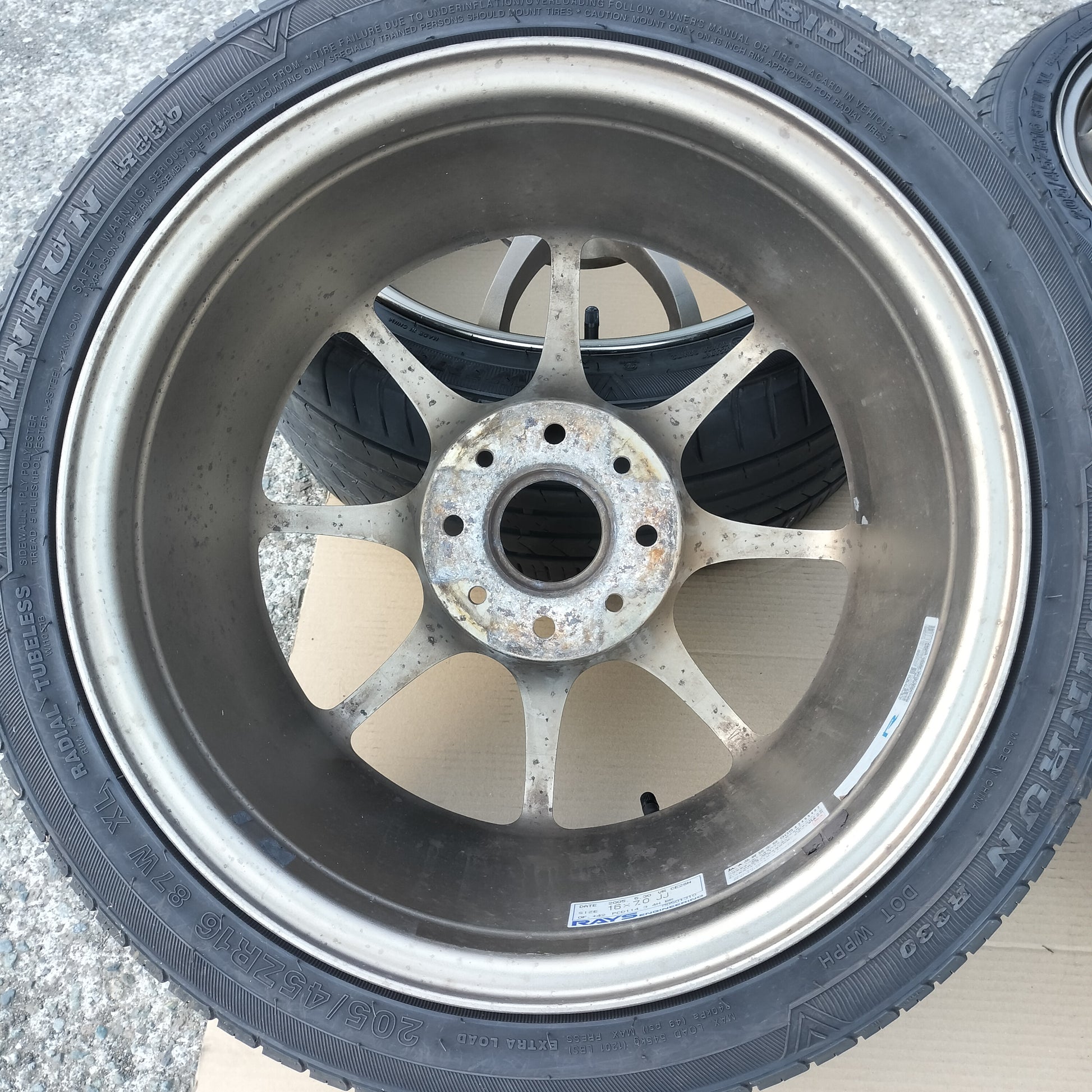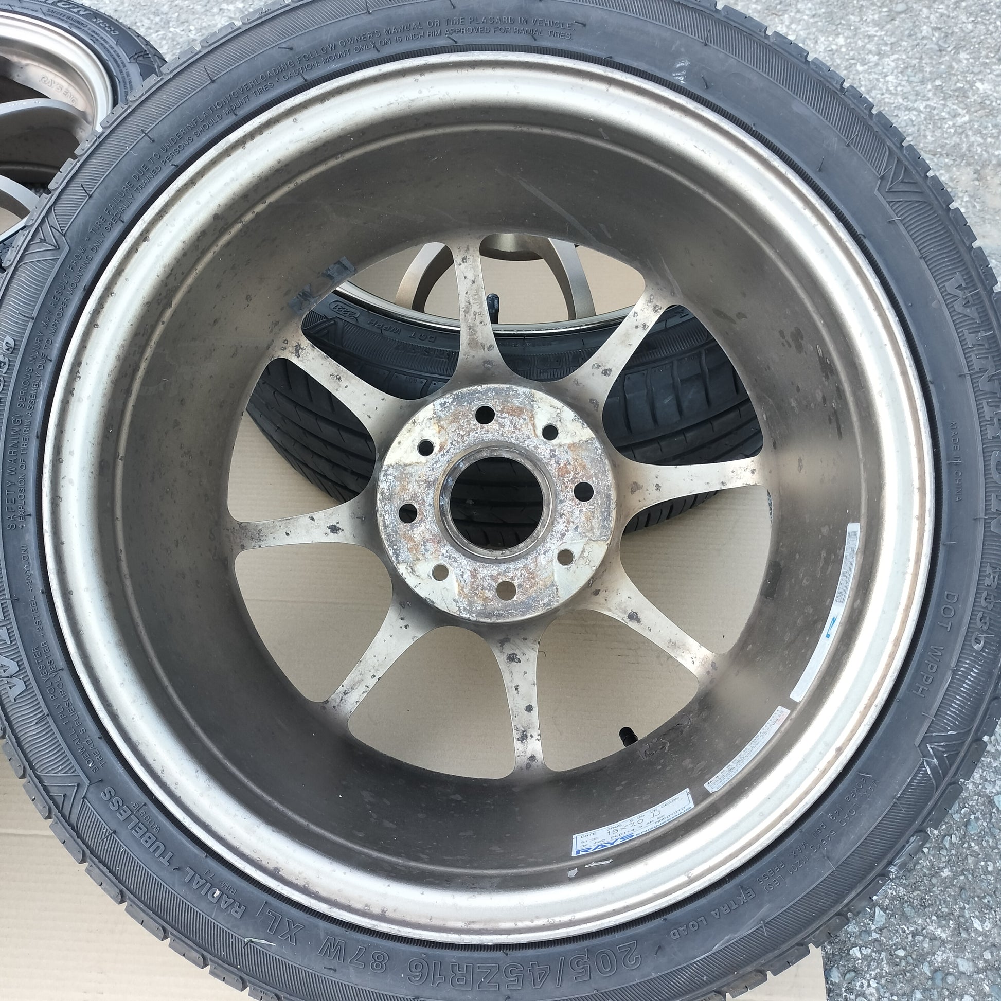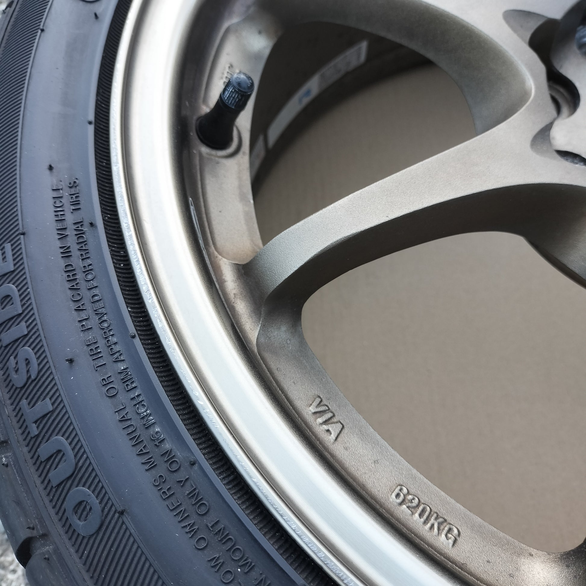 The current valve stems are normal black rubber valves stems. If the buyer wants new Rays valve stems or spoke stickers, I can help order them and ship them together with the wheels. Please message or email after purchase.