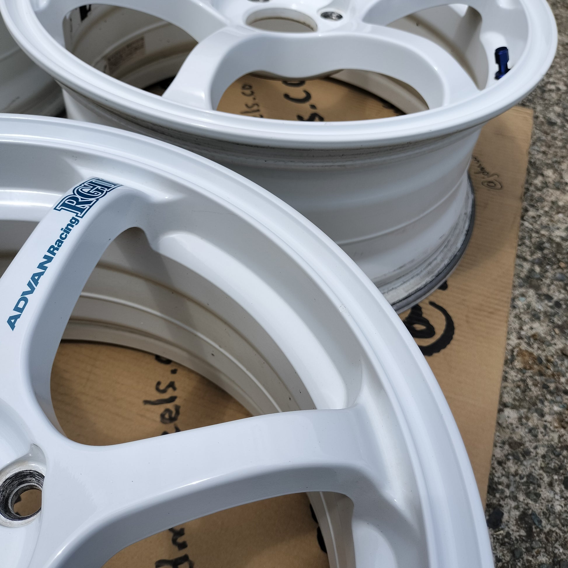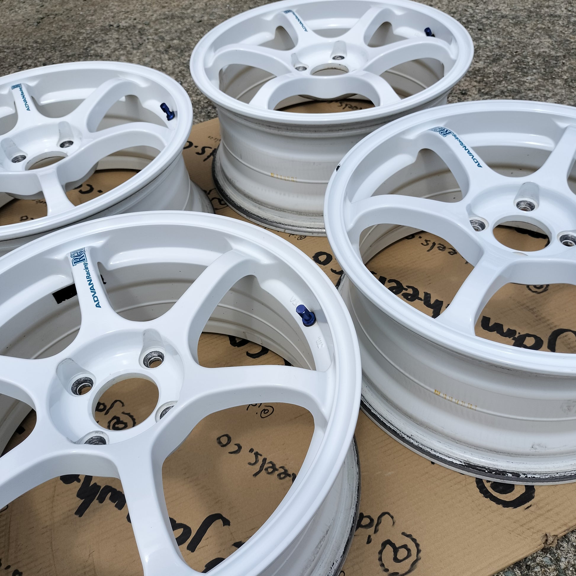 Beautiful condition set of one of Advan's best designs! ZERO rash! Just a few normal use nicks and chips with the most noticeable one being on the outer lip (only in the finish - touch up paint would hide it well; please see pictures). Even the spoke stickers are fully intact and unfaded!