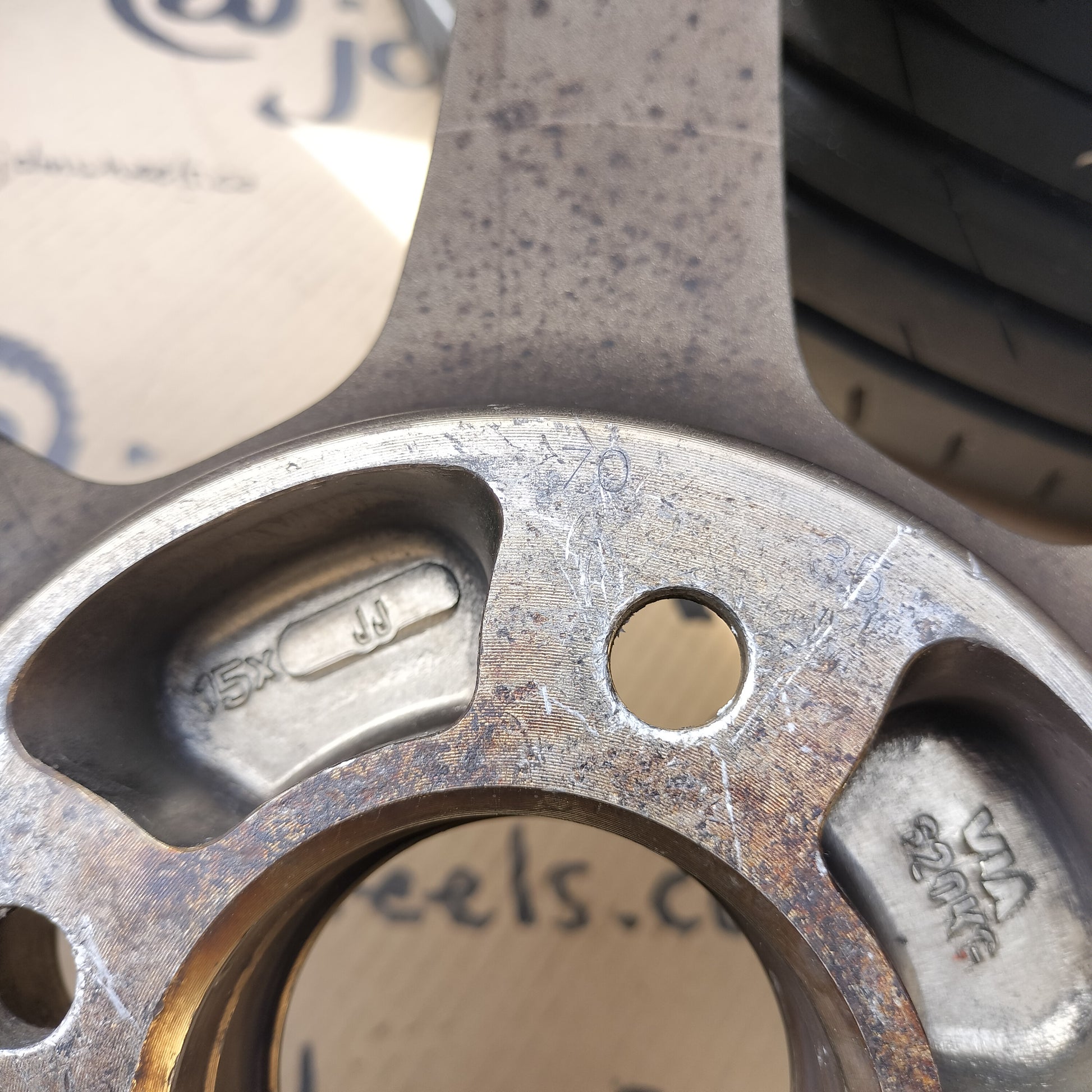 The spec stickers are missing but you can see the "70 35" stamped into the hub mounting face indicating they're 7J +35.