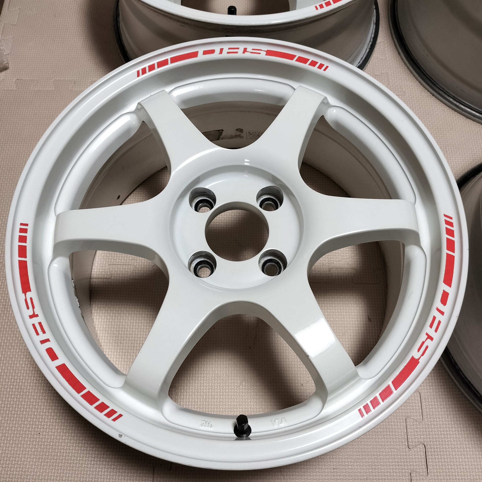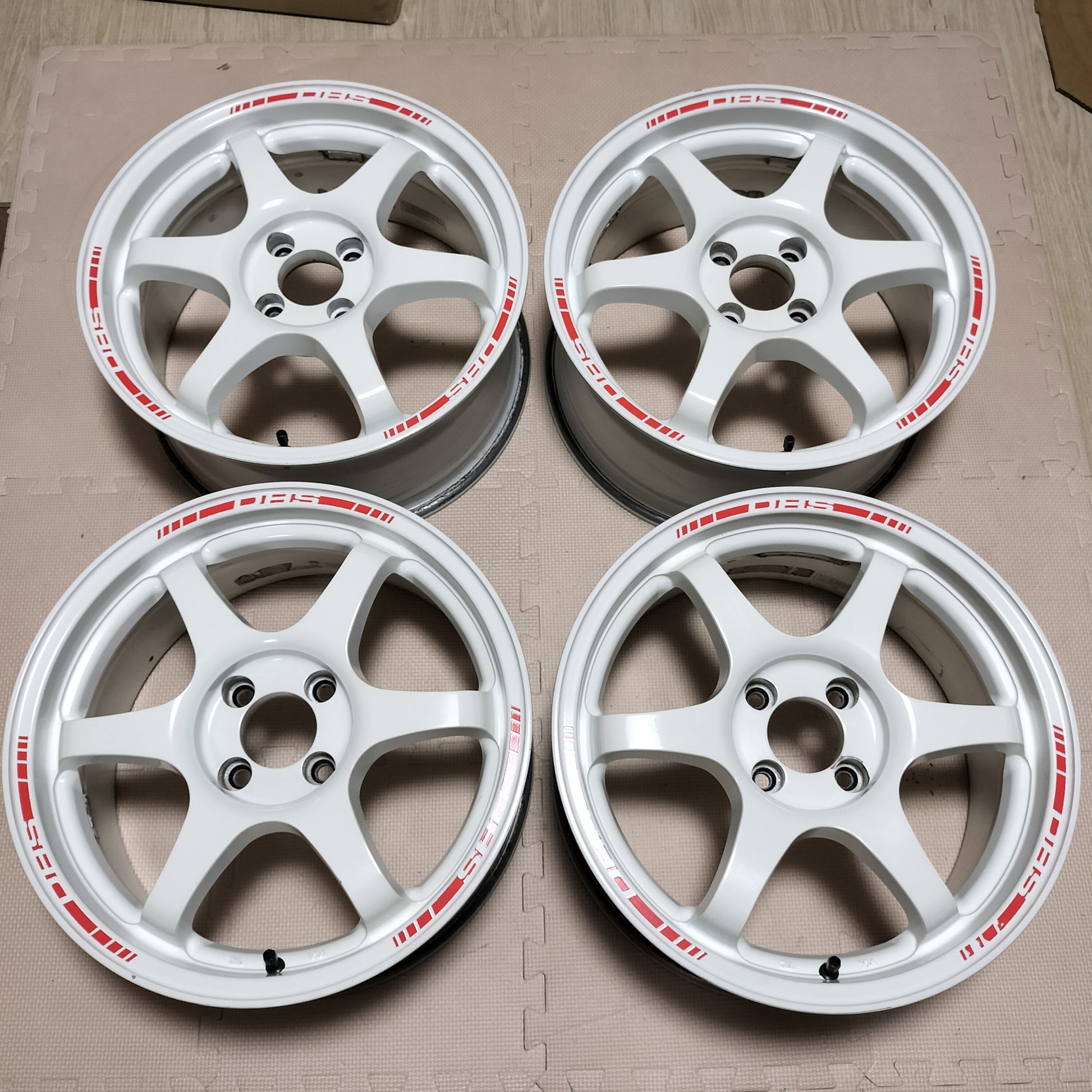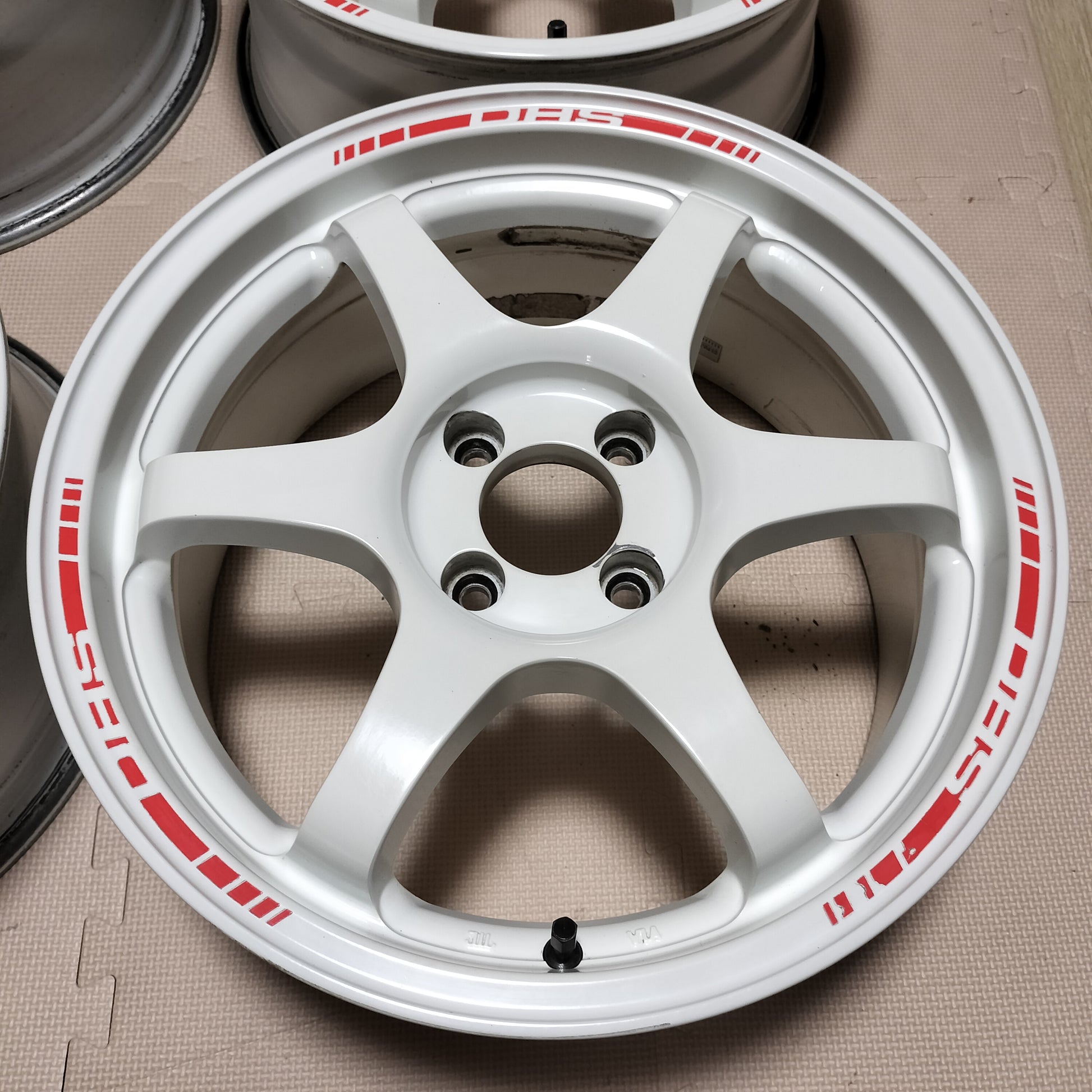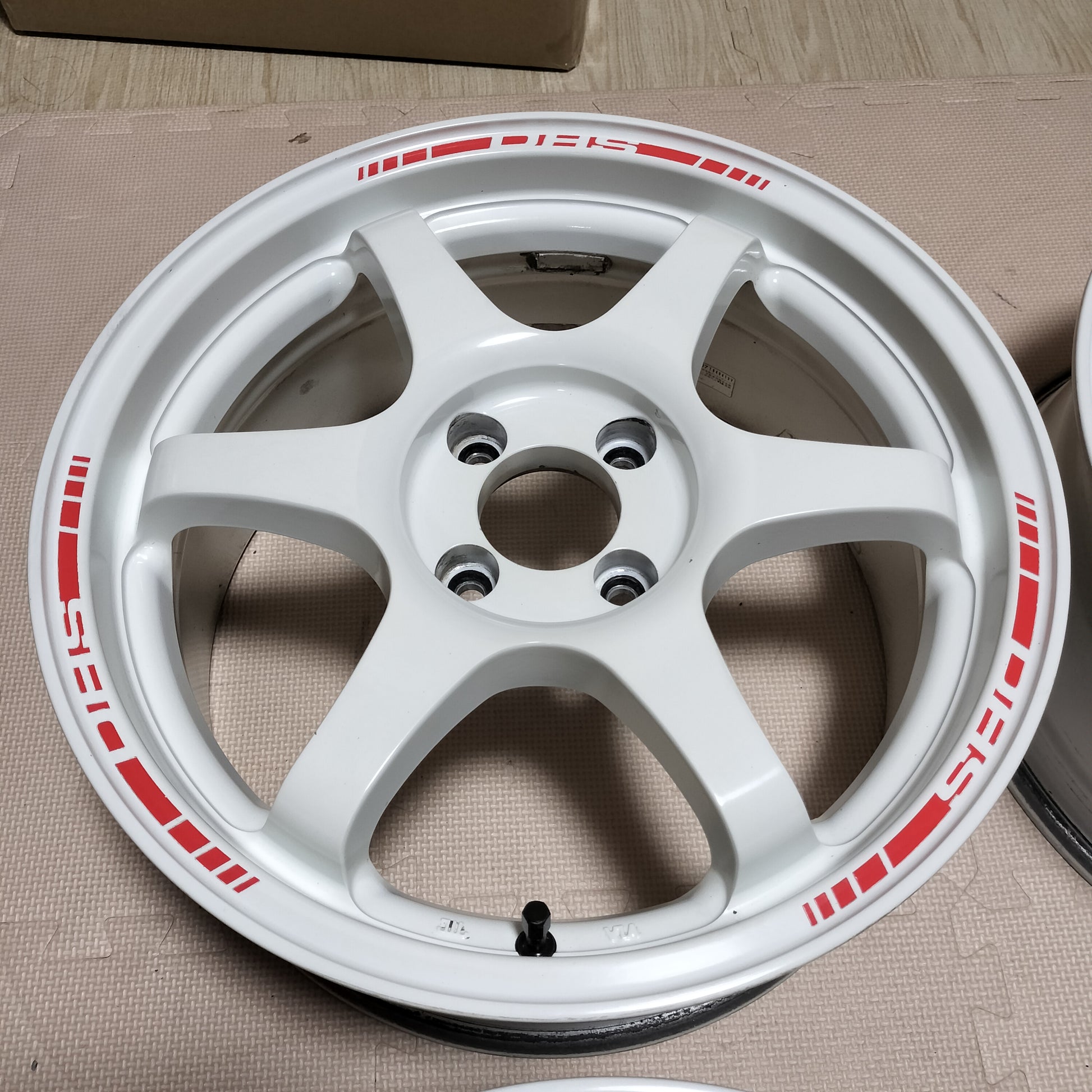 Very good condition. Finish is still glossy and stickers are present just a bit cracked from age. Rare to see a set with full original stickers. Classy six spoke design with a motorsports feel. Great survivor set.