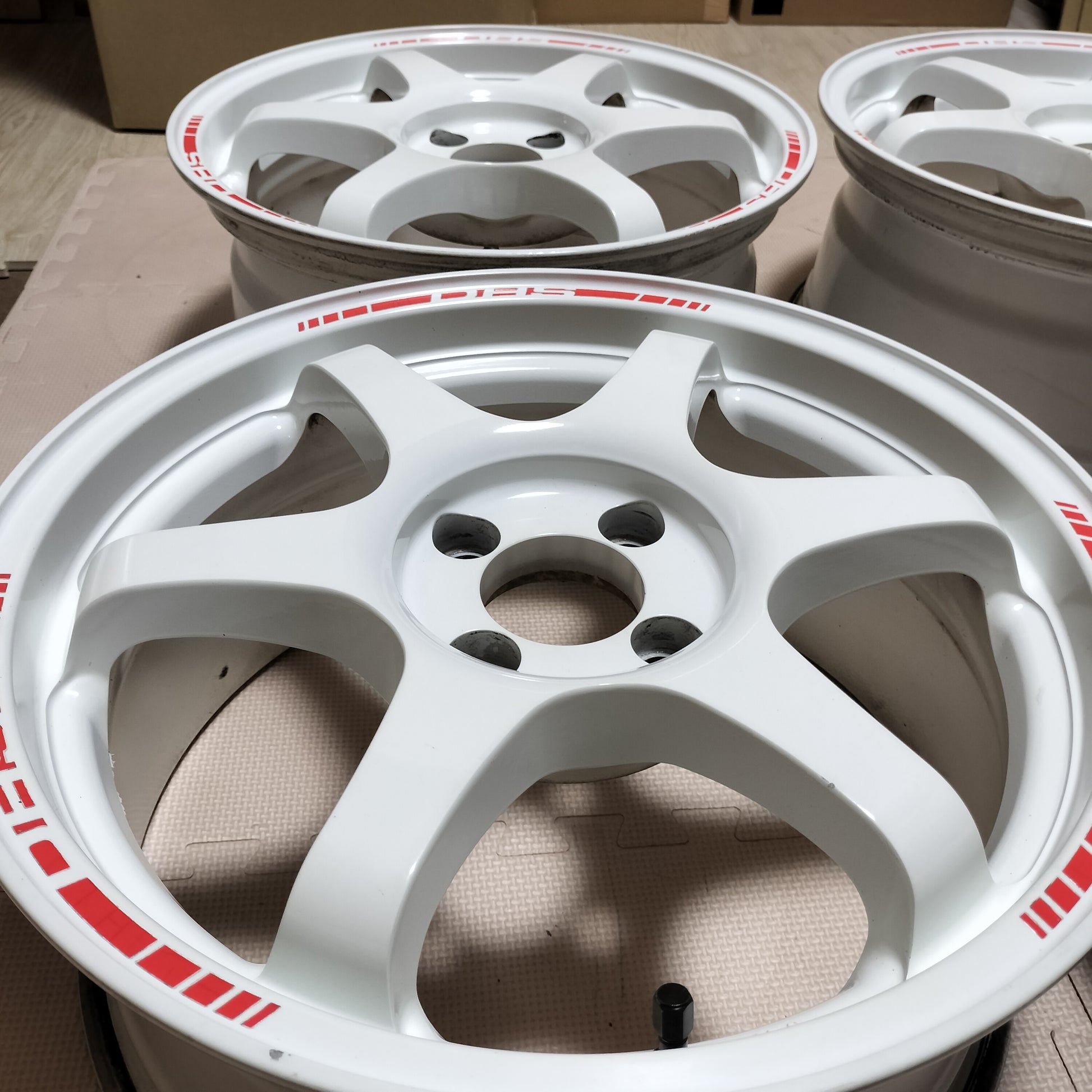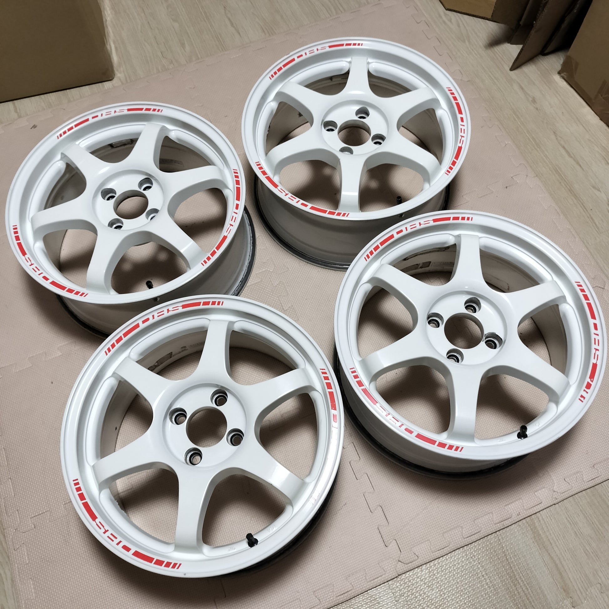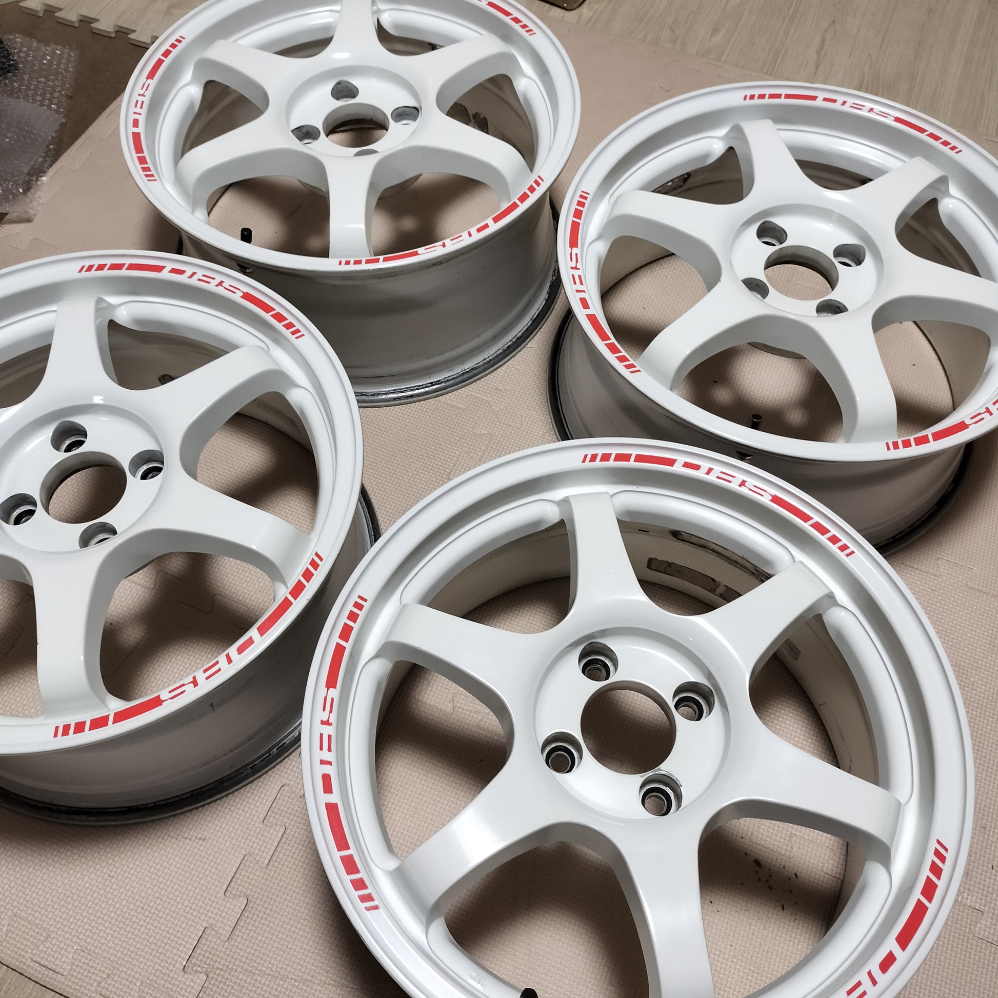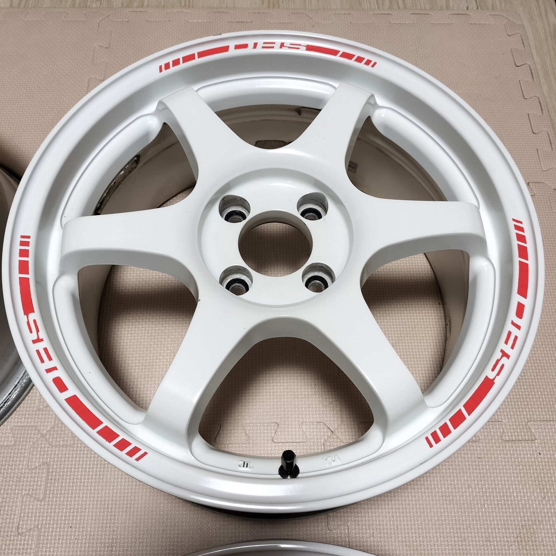 Very good condition. Finish is still glossy and stickers are present just a bit cracked from age. Rare to see a set with full original stickers. Classy six spoke design with a motorsports feel. Great survivor set.