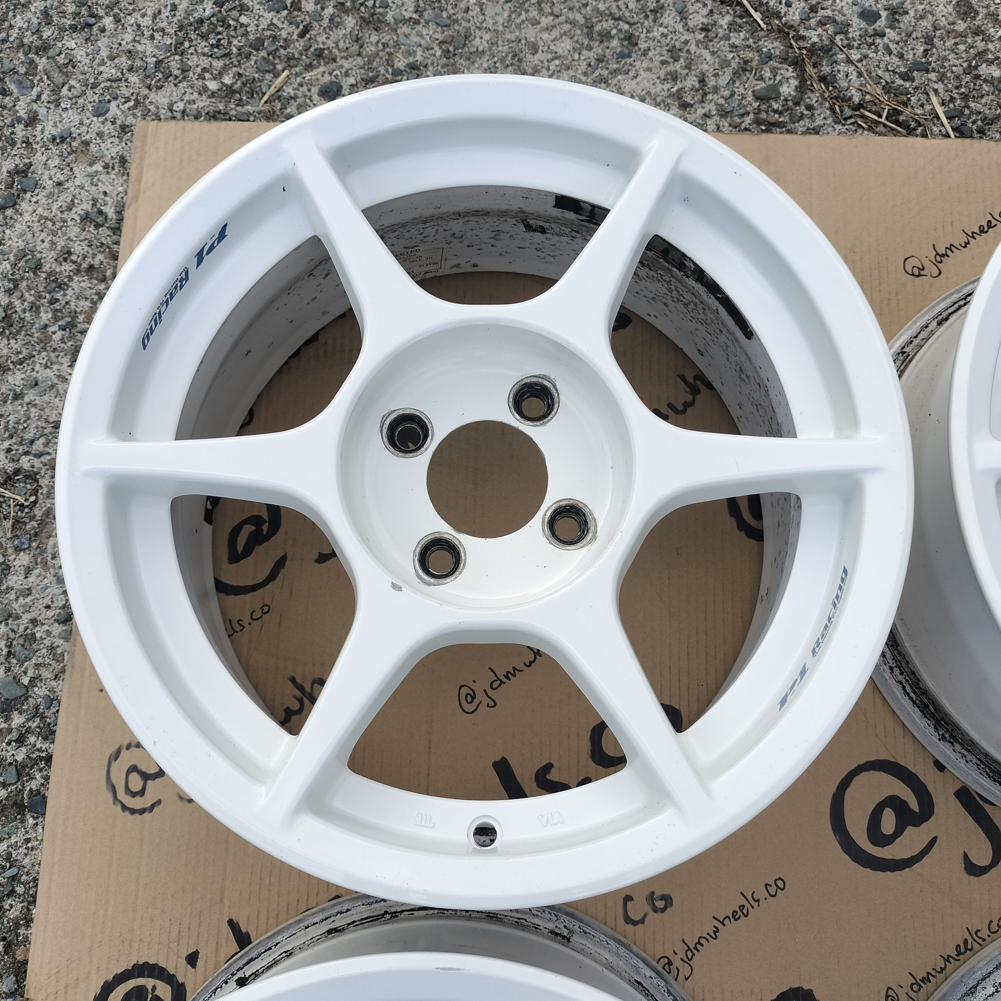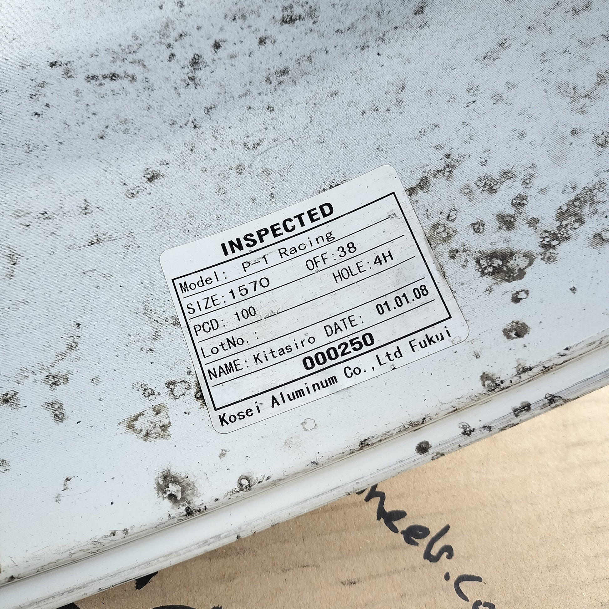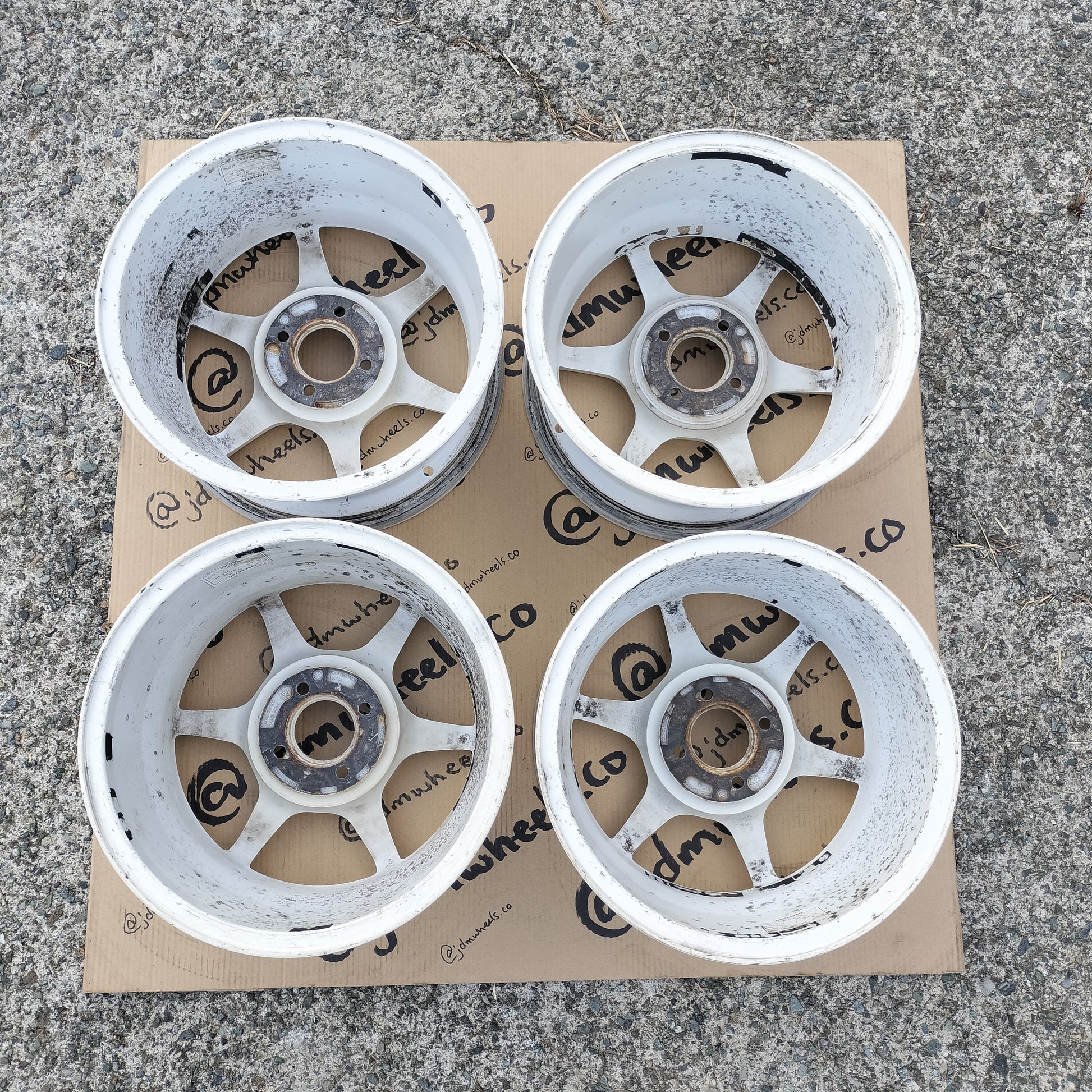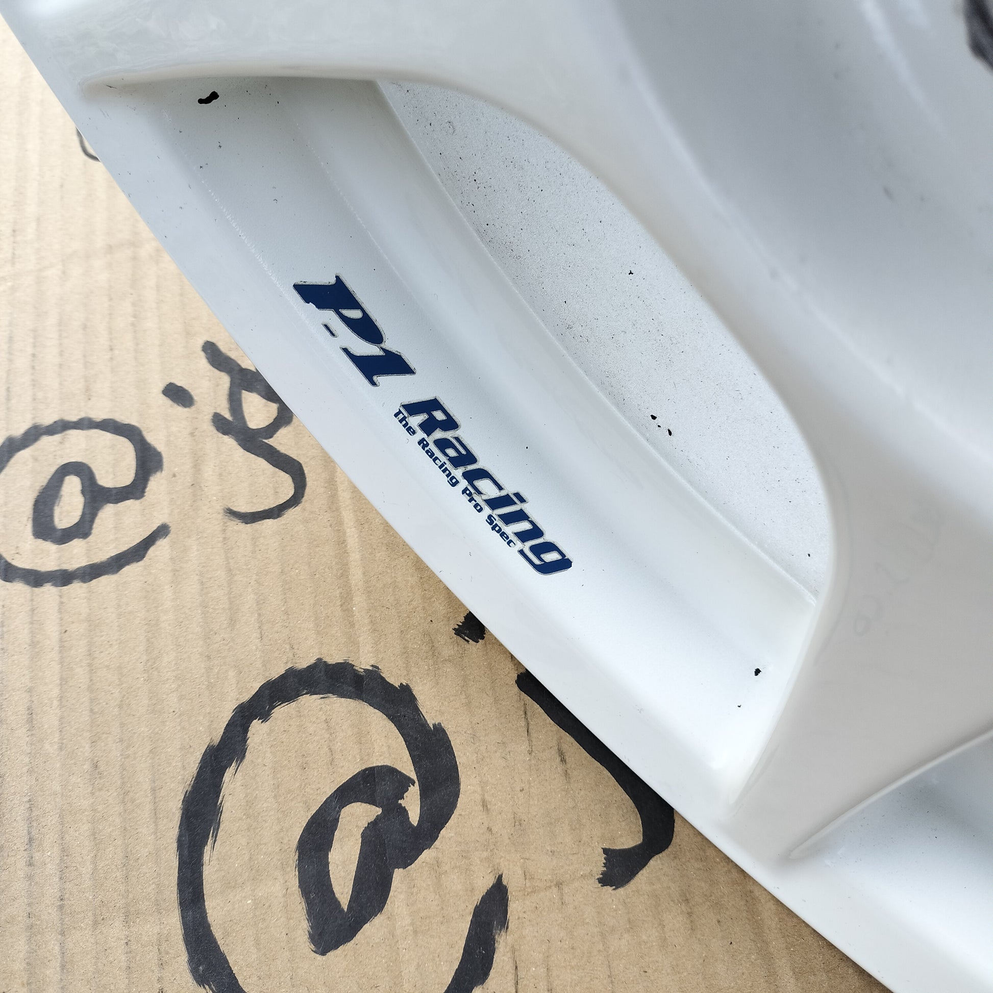 These look like they've seen race/circuit use based on the nicks and brake dust. The white finish is fairly glossy but please study the enlarged pictures carefully as white tends to hide some details in pictures.