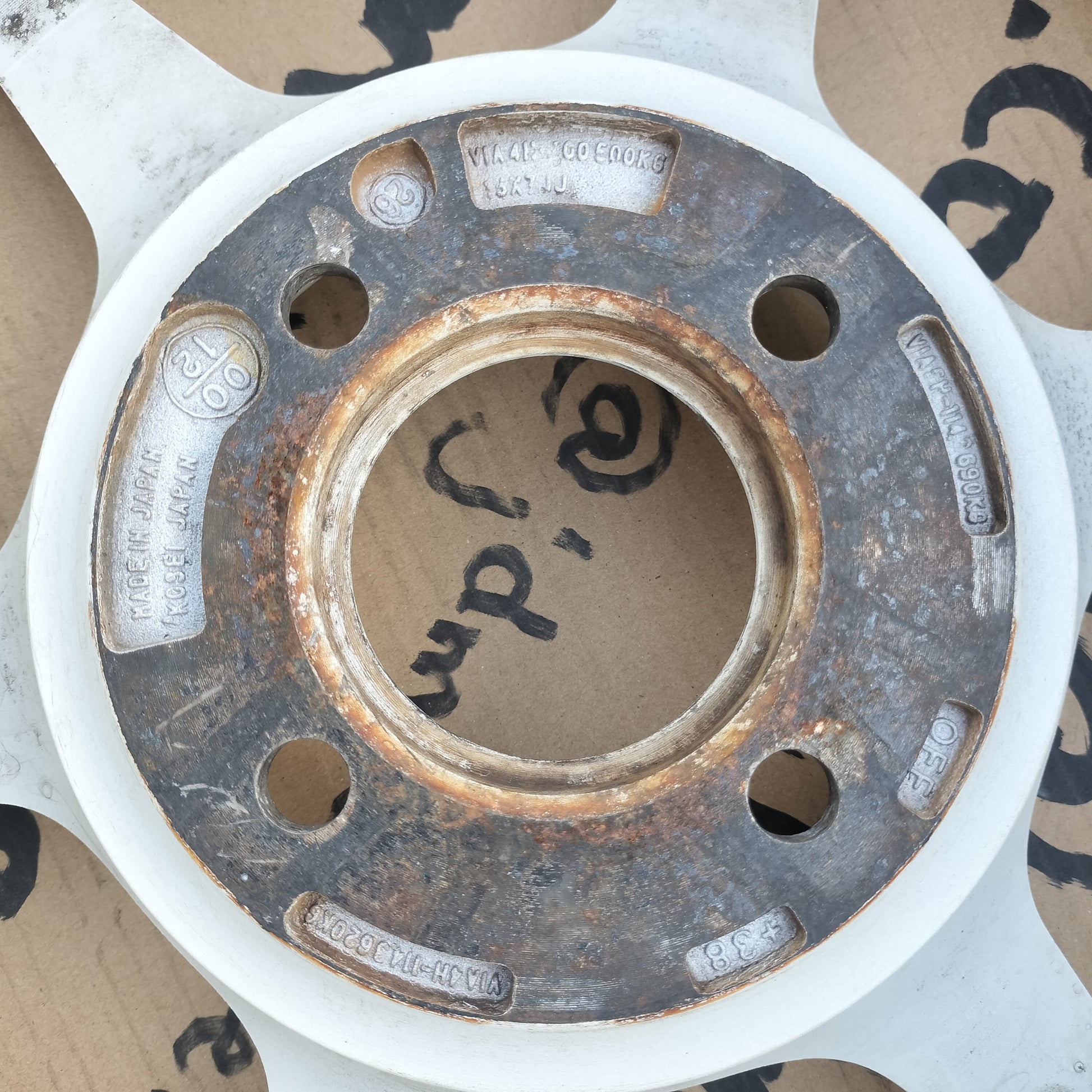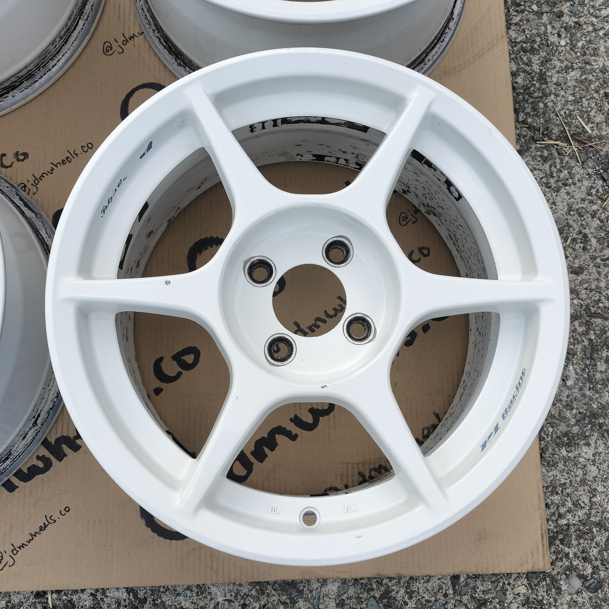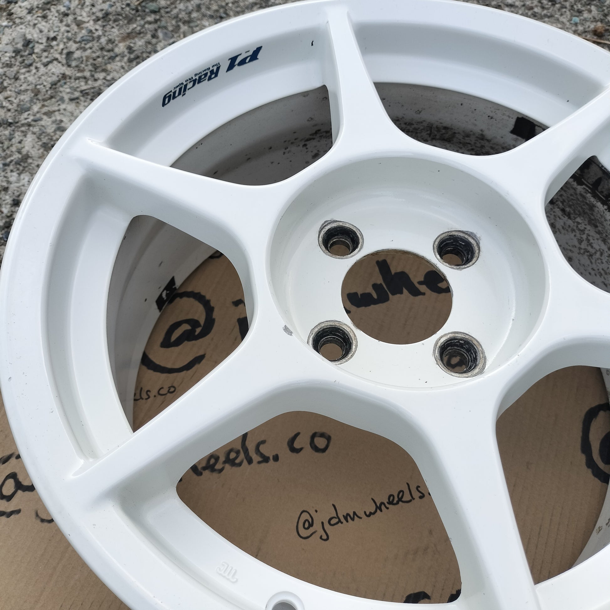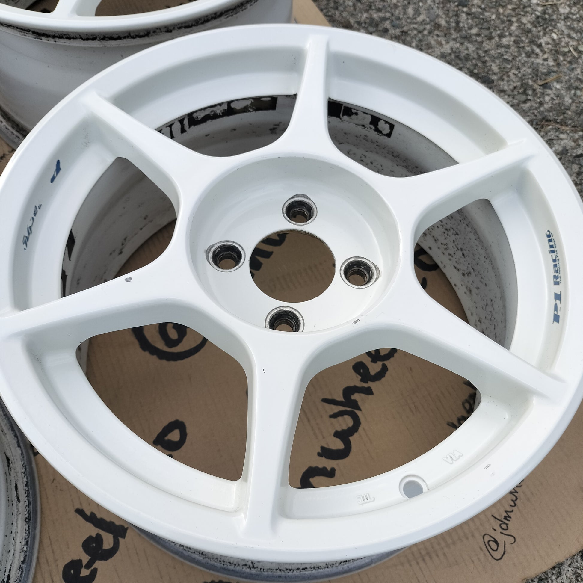 These look like they've seen race/circuit use based on the nicks and brake dust. The white finish is fairly glossy but please study the enlarged pictures carefully as white tends to hide some details in pictures.