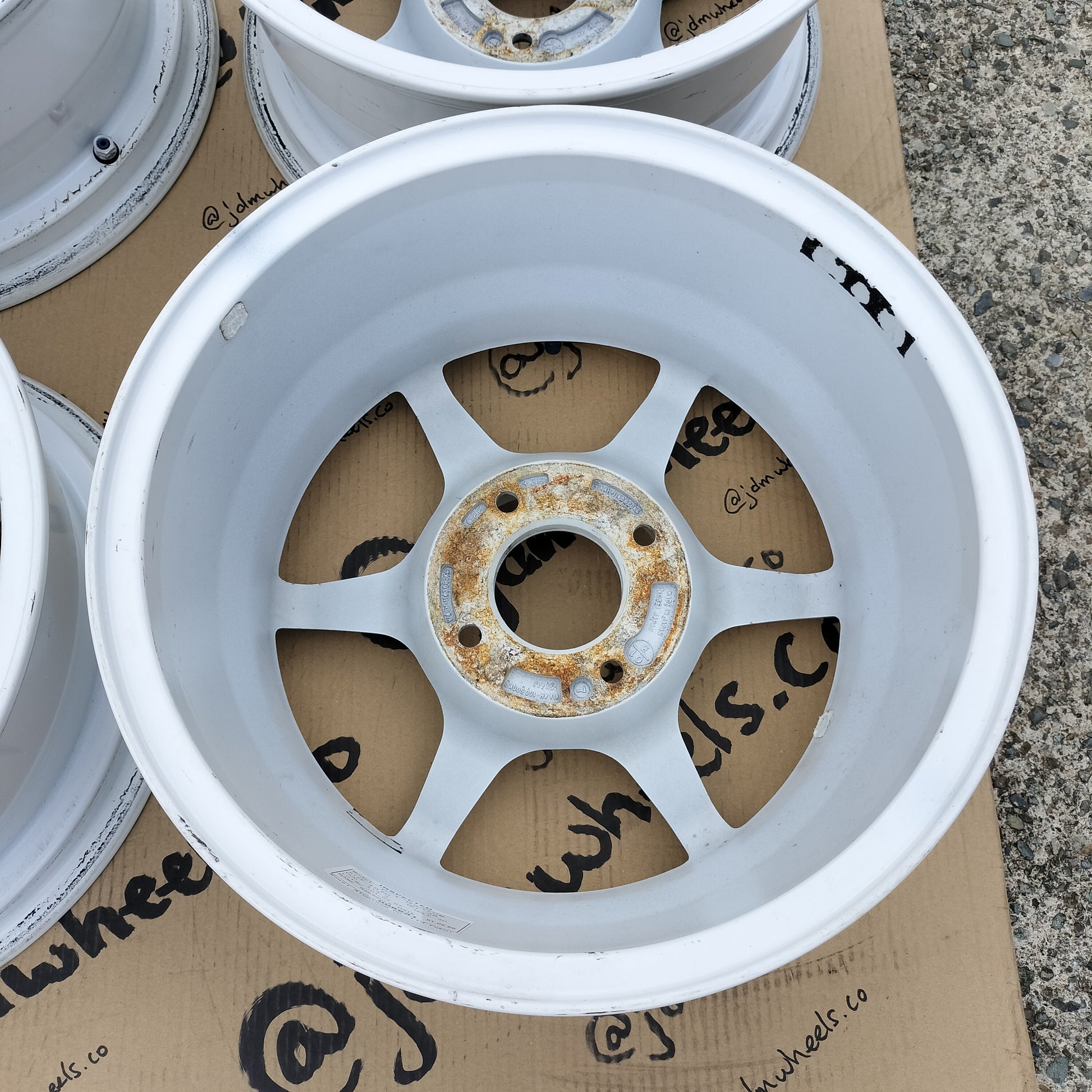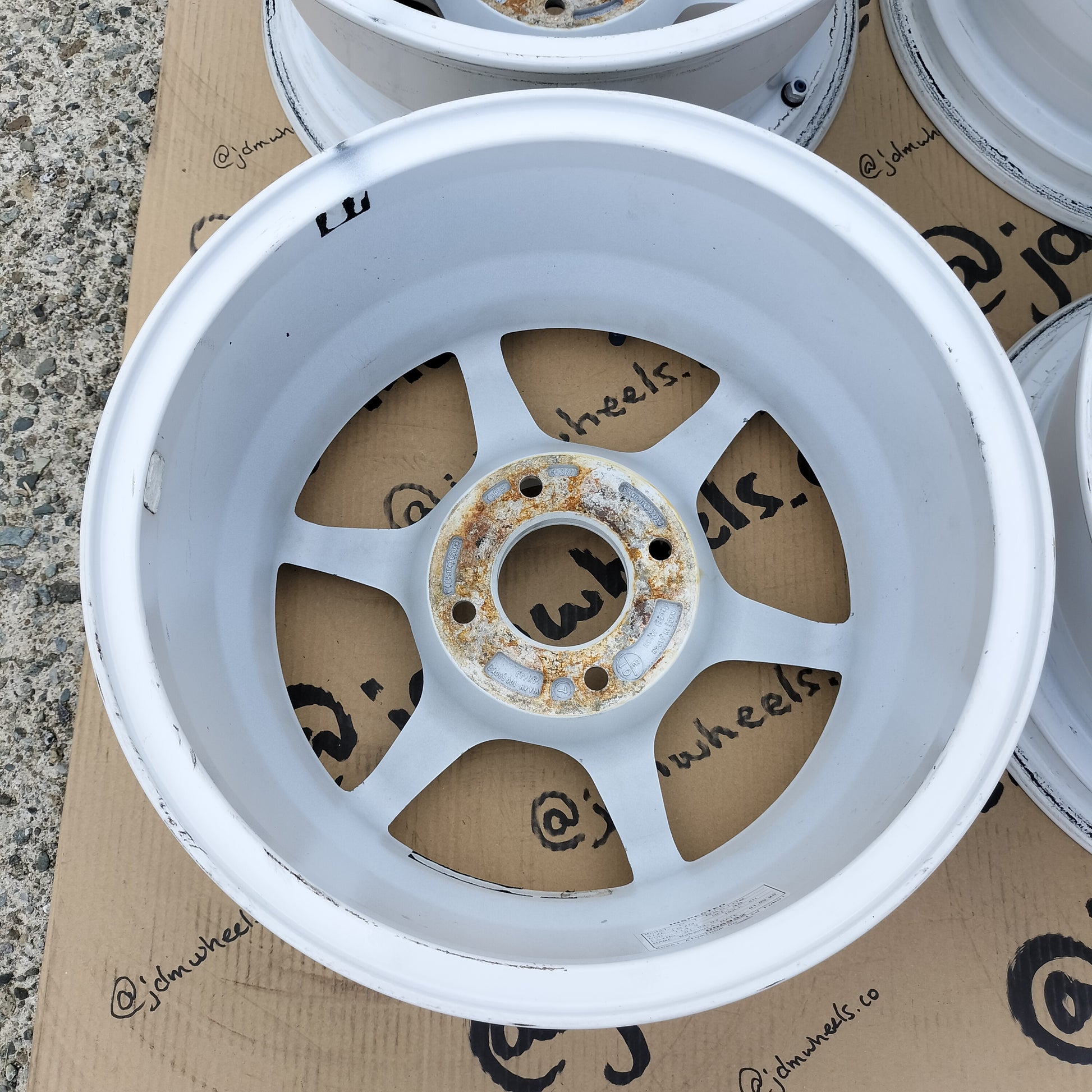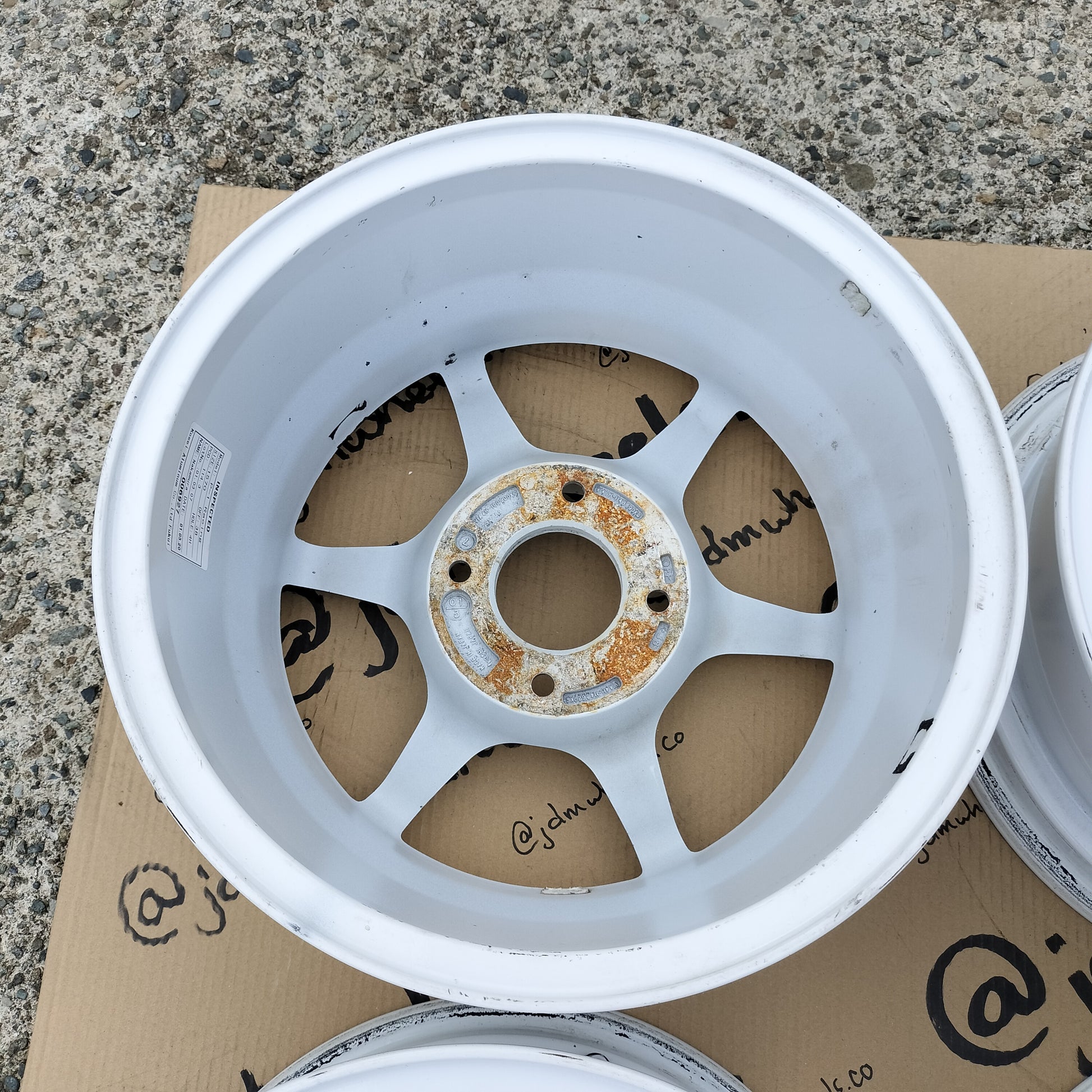Great condition with just one small rub on one. No rash. Rare 4x114.3 size in white. Perfect for Accord, Prelude, and 96 Spec Integra owners who want to channel those Osaka vibes!