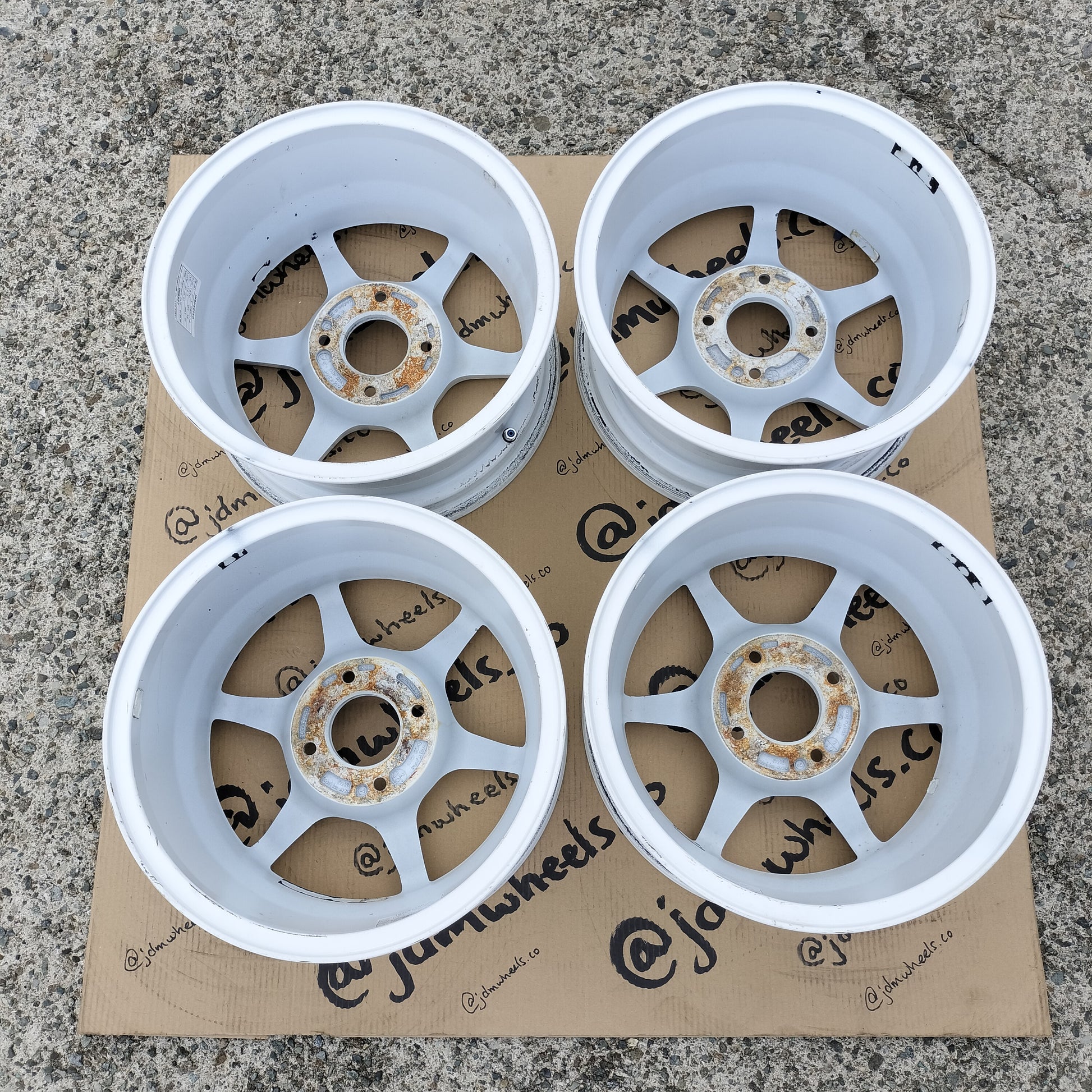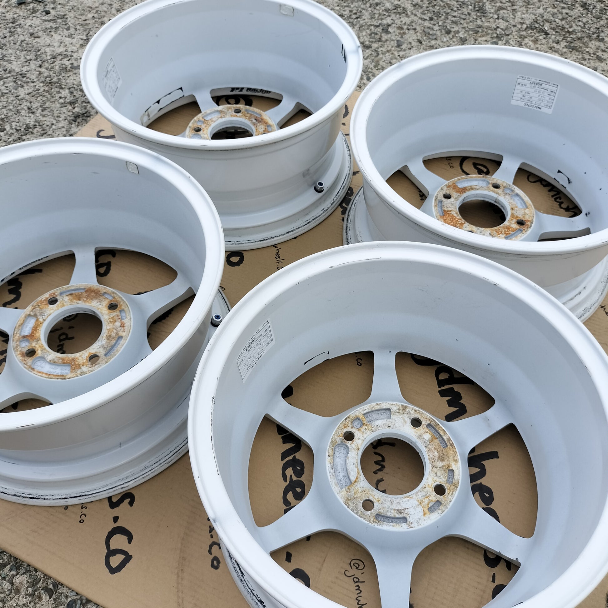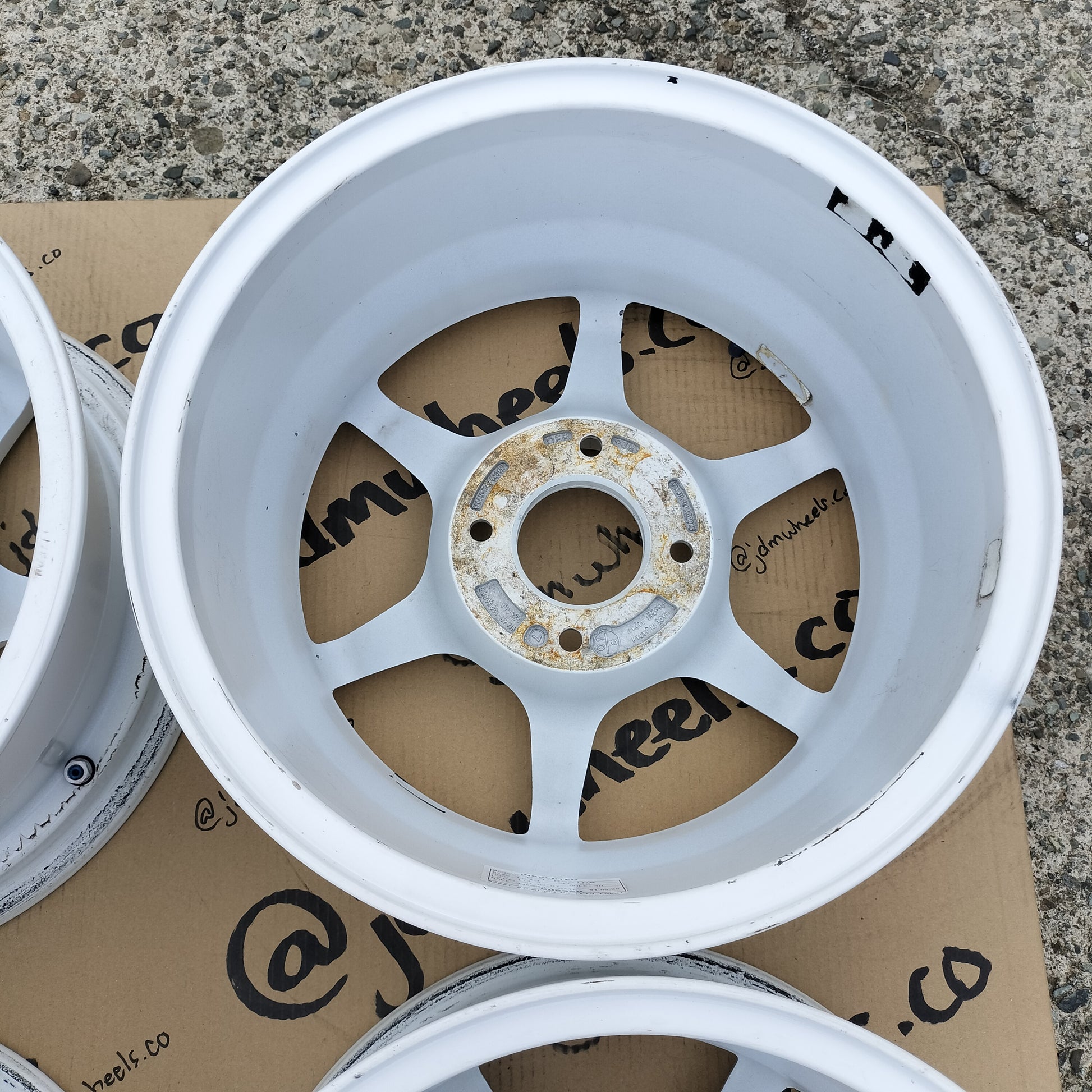 Great condition with just one small rub on one. No rash. Rare 4x114.3 size in white. Perfect for Accord, Prelude, and 96 Spec Integra owners who want to channel those Osaka vibes!