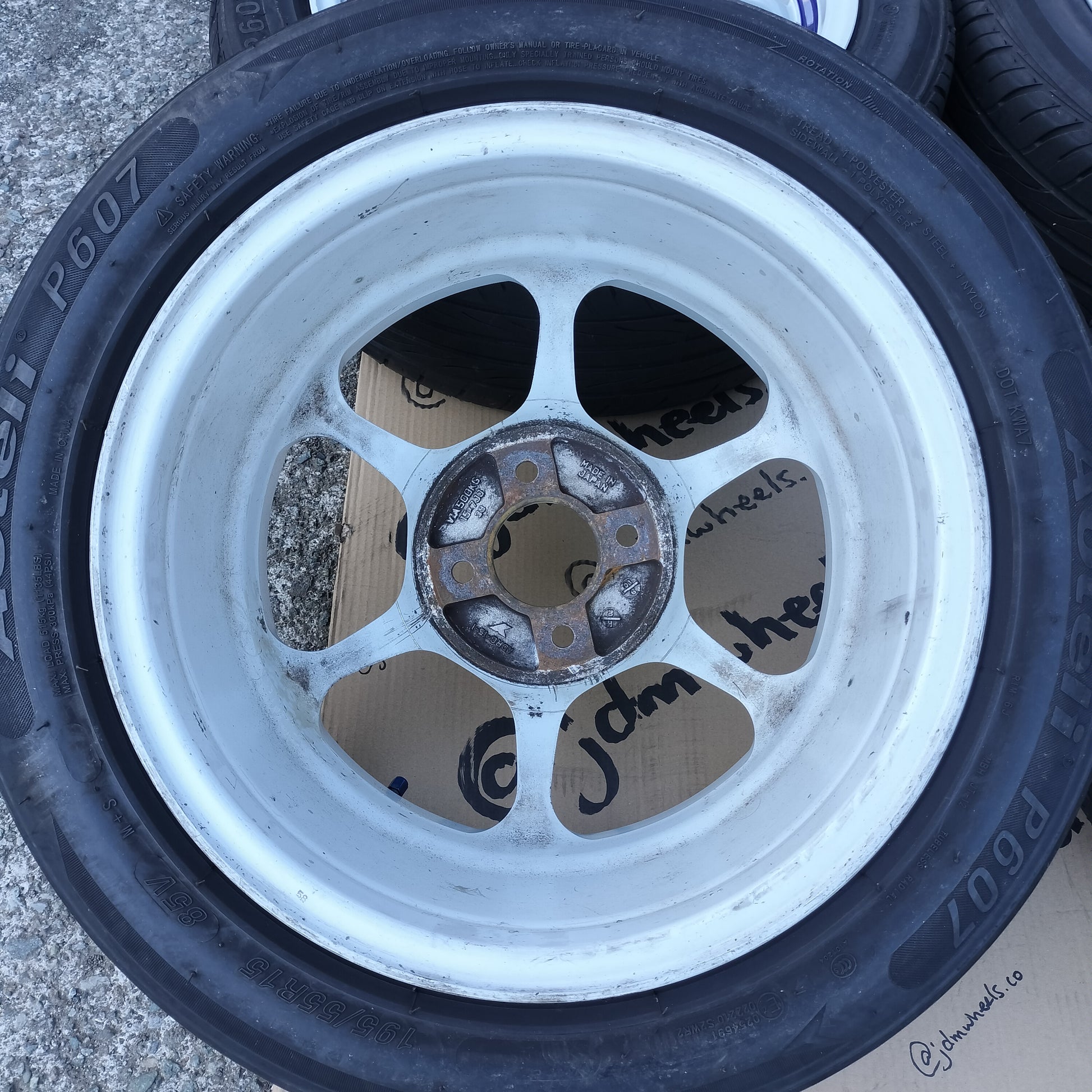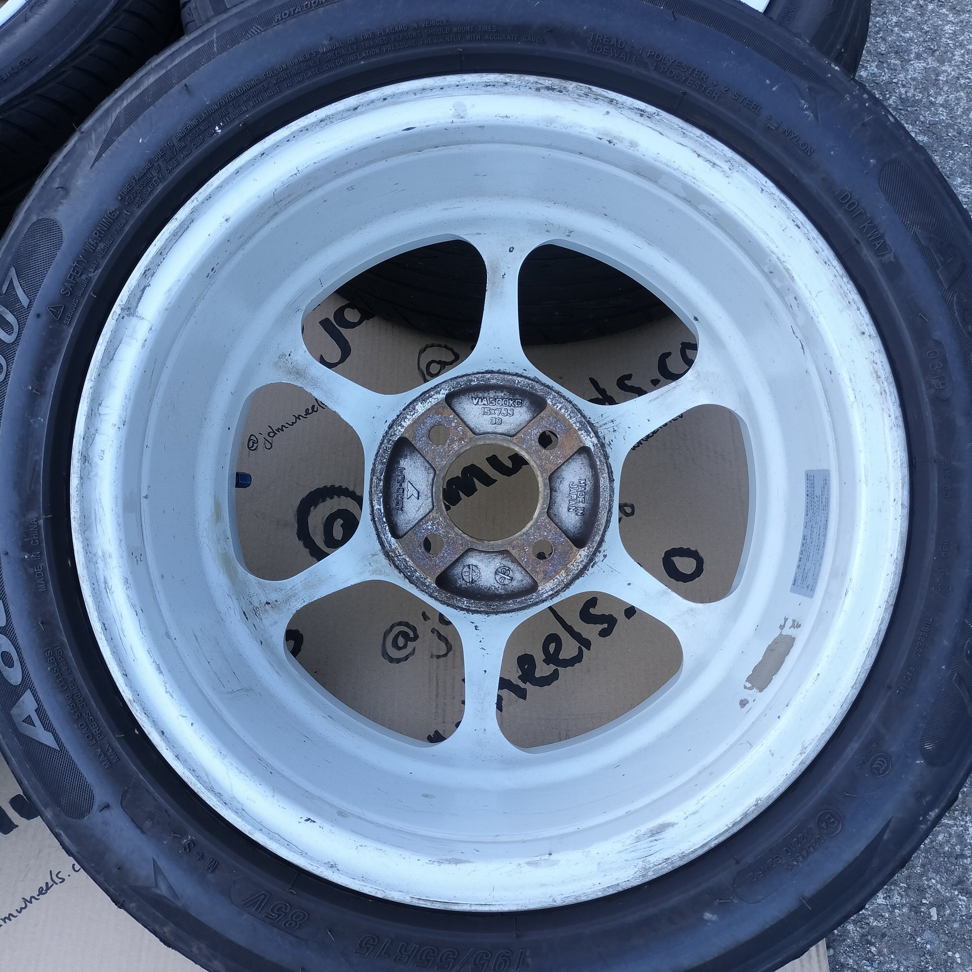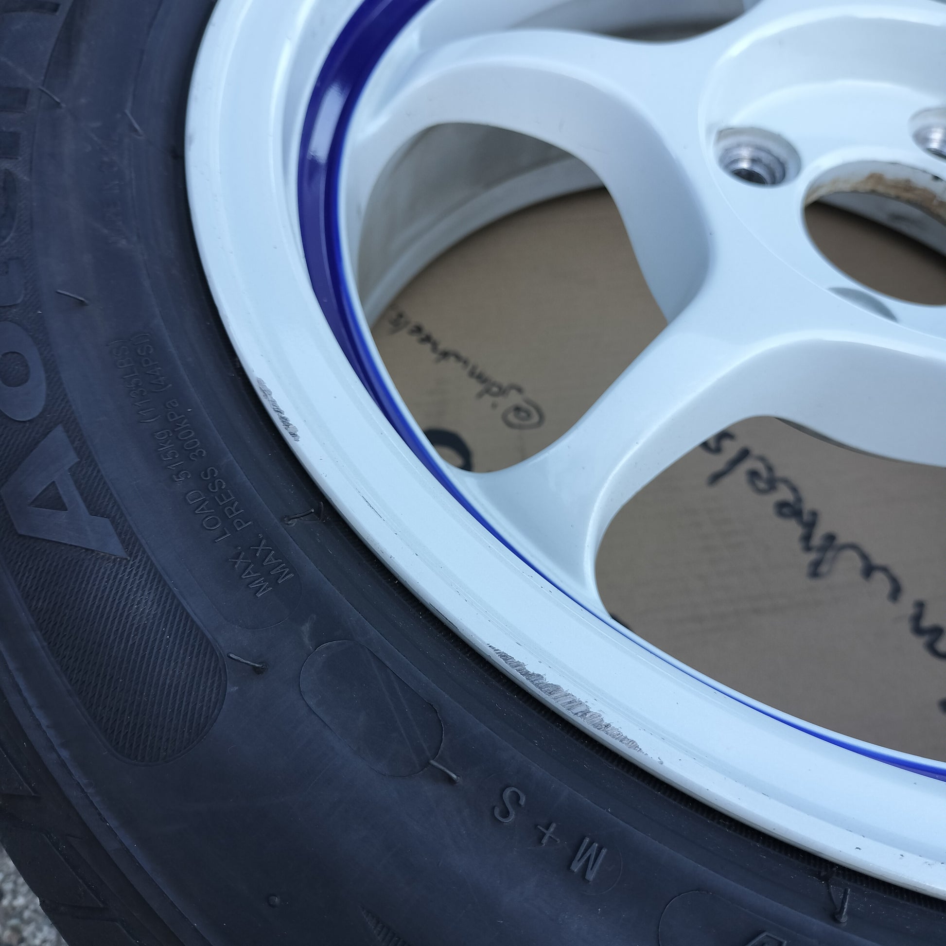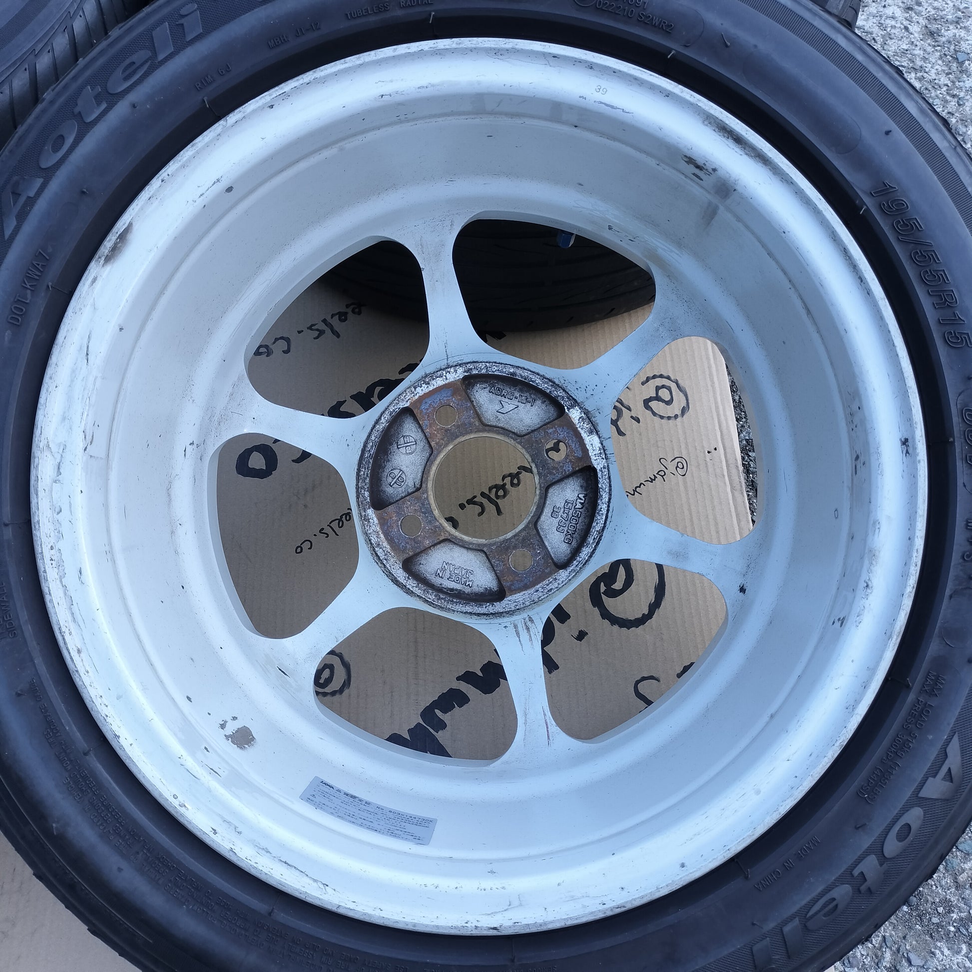 There are small rock chip type nicks around the faces as well as brake dust deposits heavier on two of them. There are a couple spots of light rash on one. Other scratches, nicks, and chips present.