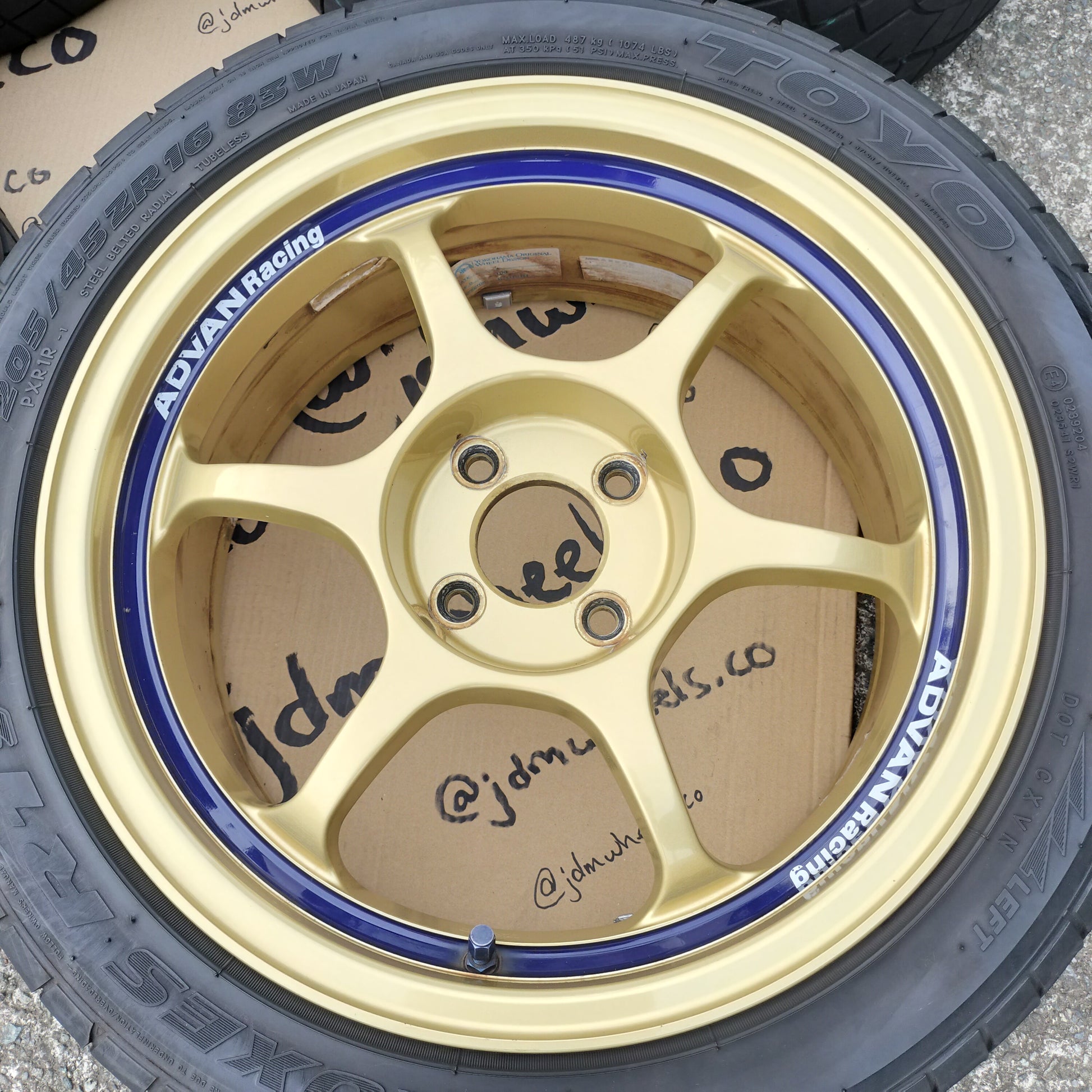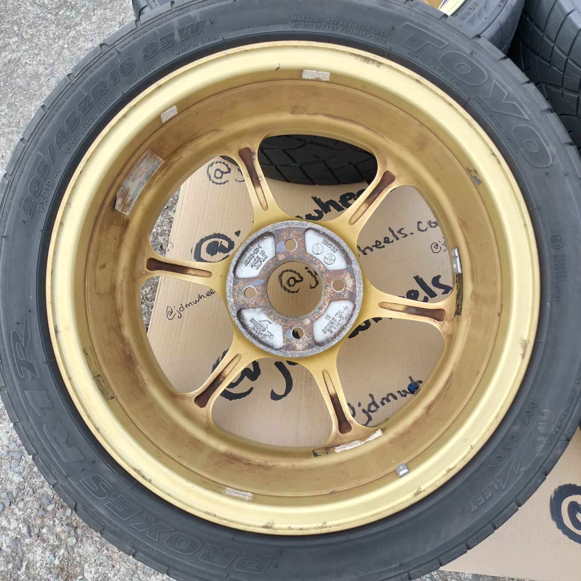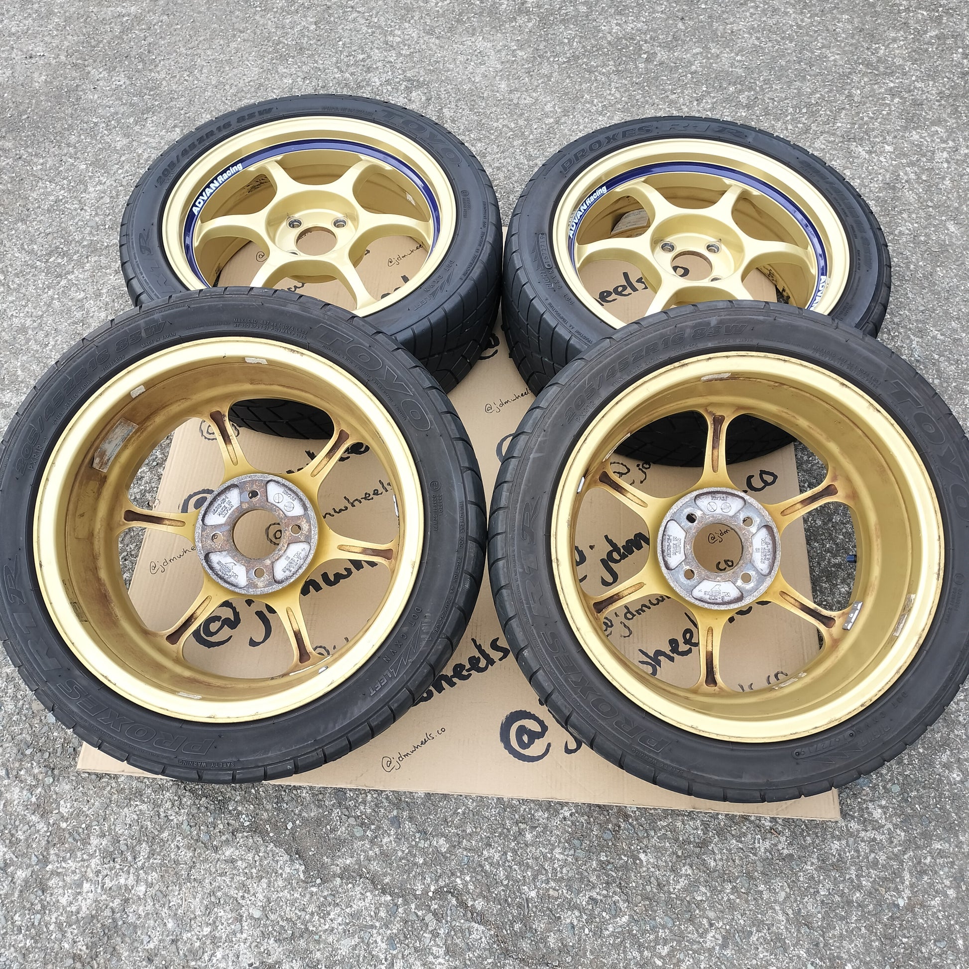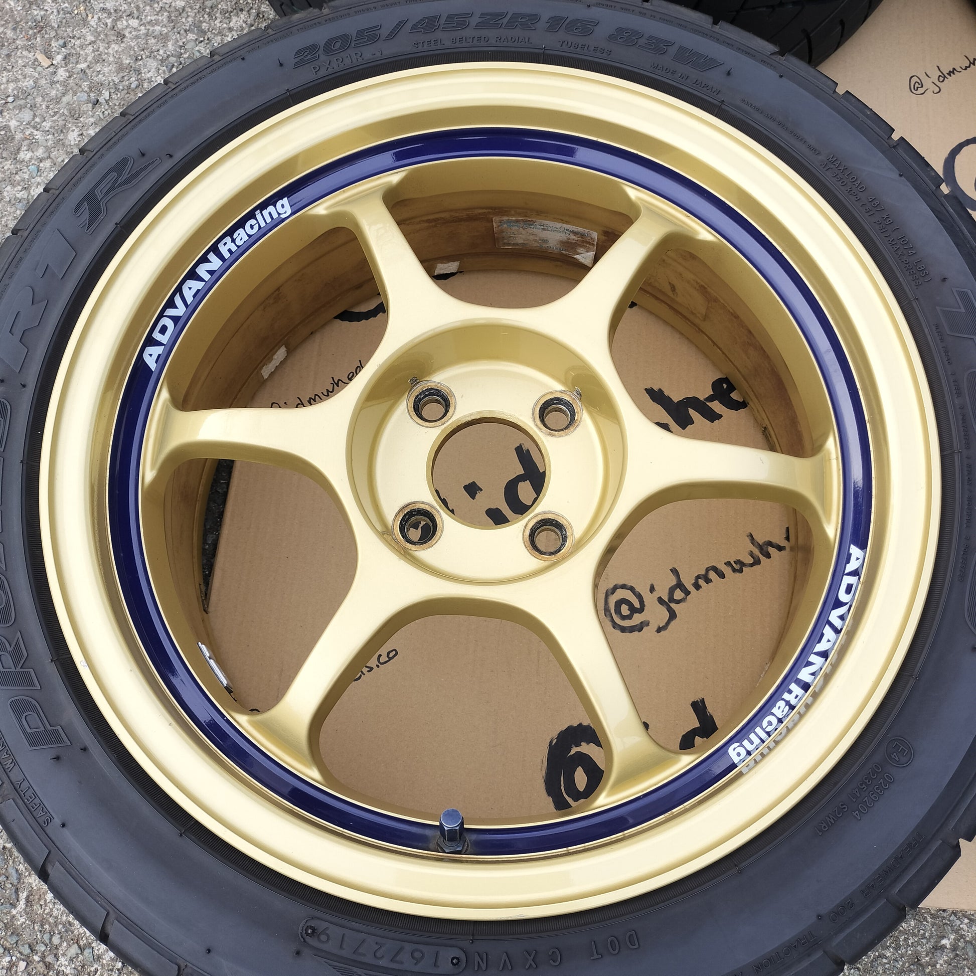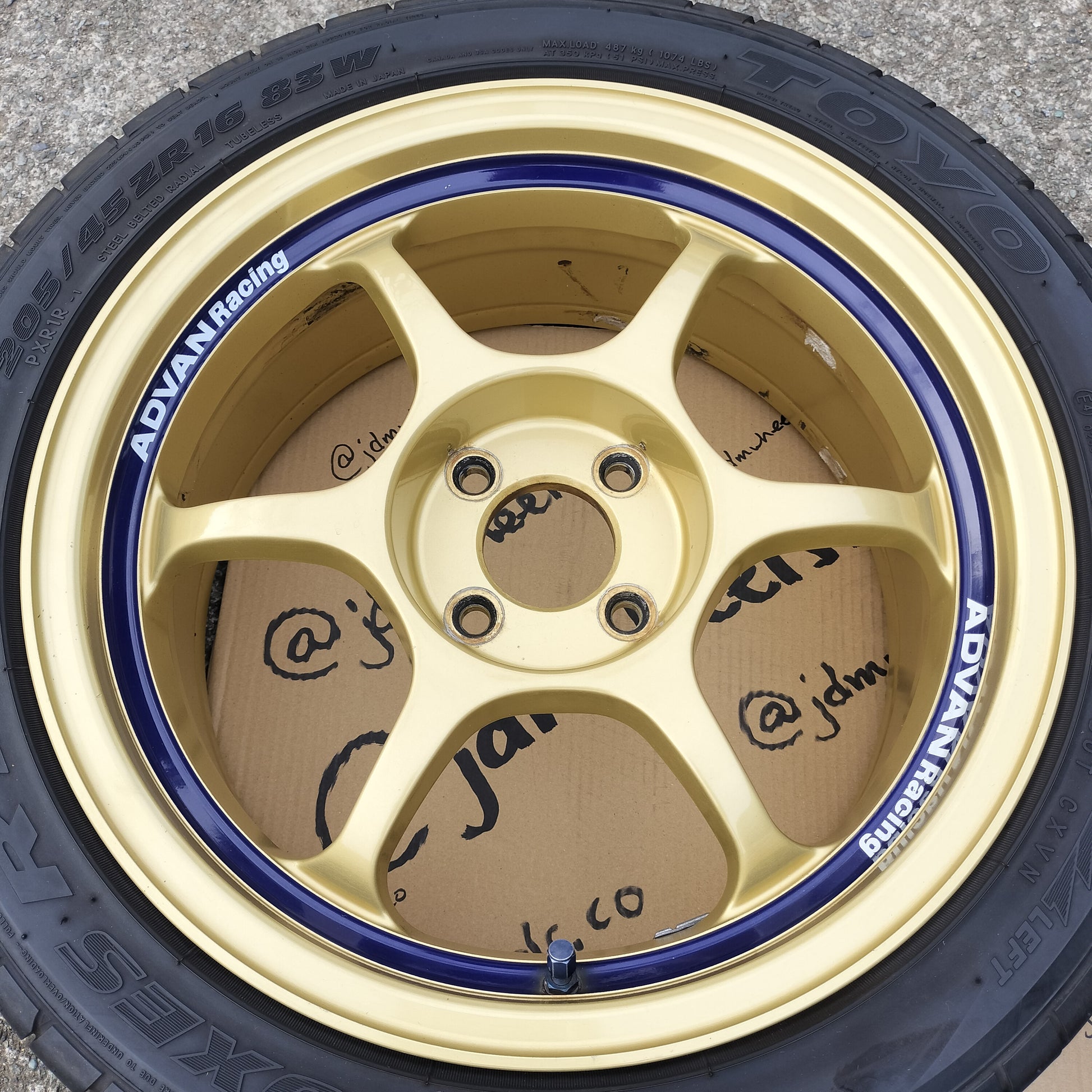 ZERO, ZERO, ZERO rash!! I'm super impressed with this set - the finish has good shine, the ADVAN RACING blue rings are in good shape, they're the best 16x7 offset, and there's zero rash. Did I mention there's zero rash? haha. Really neat to see a set that has survived in this condition all these years.