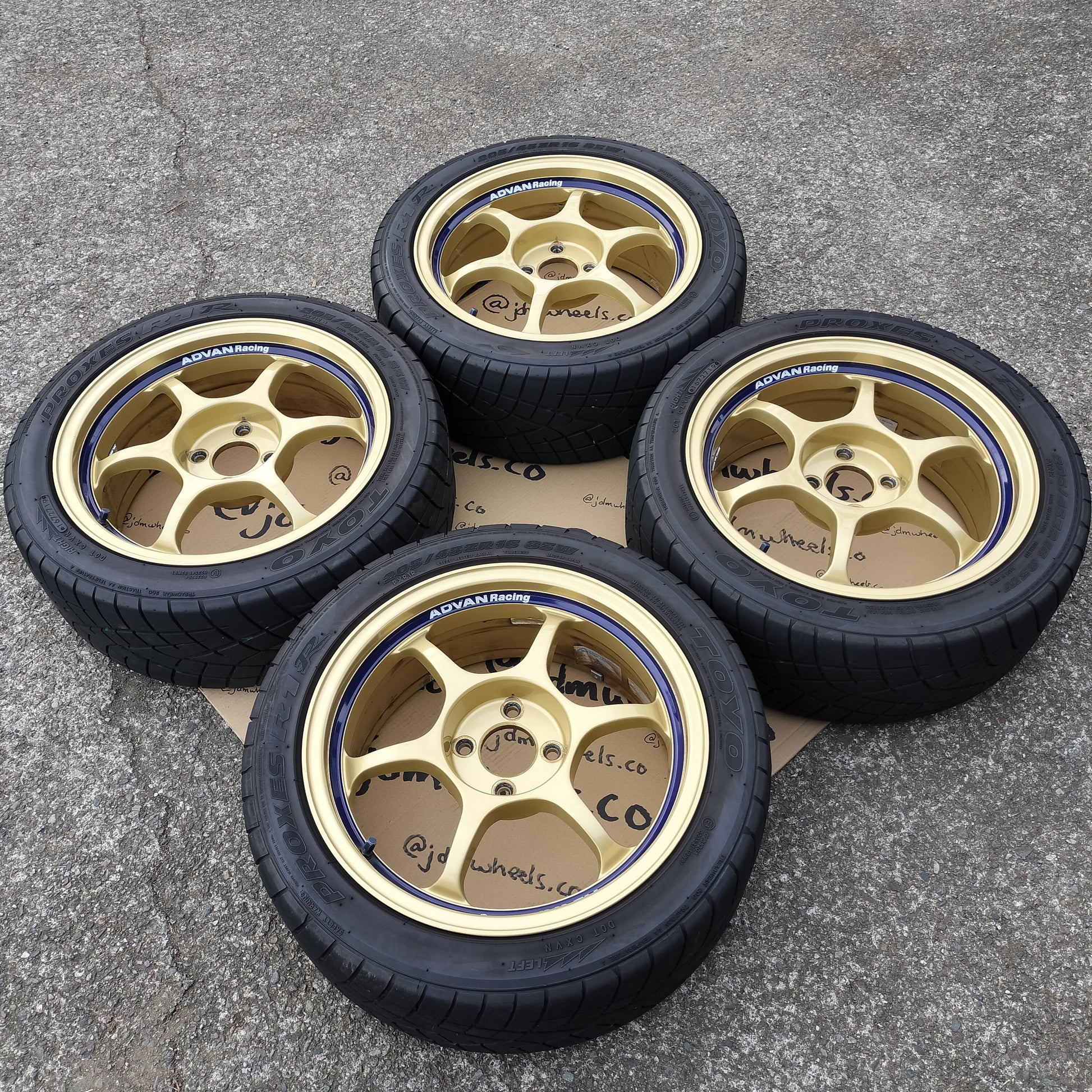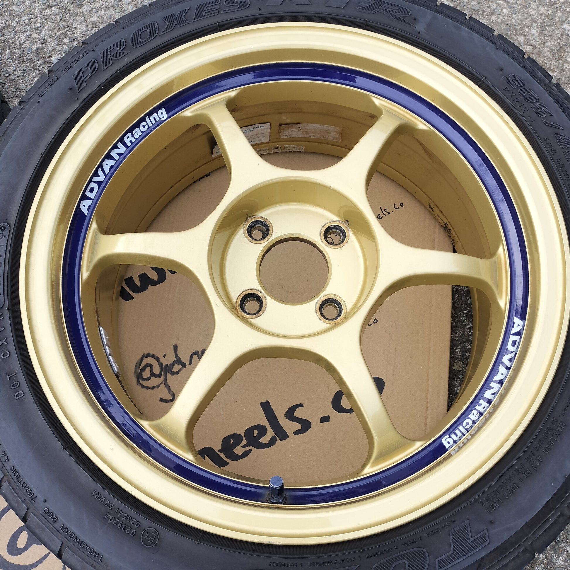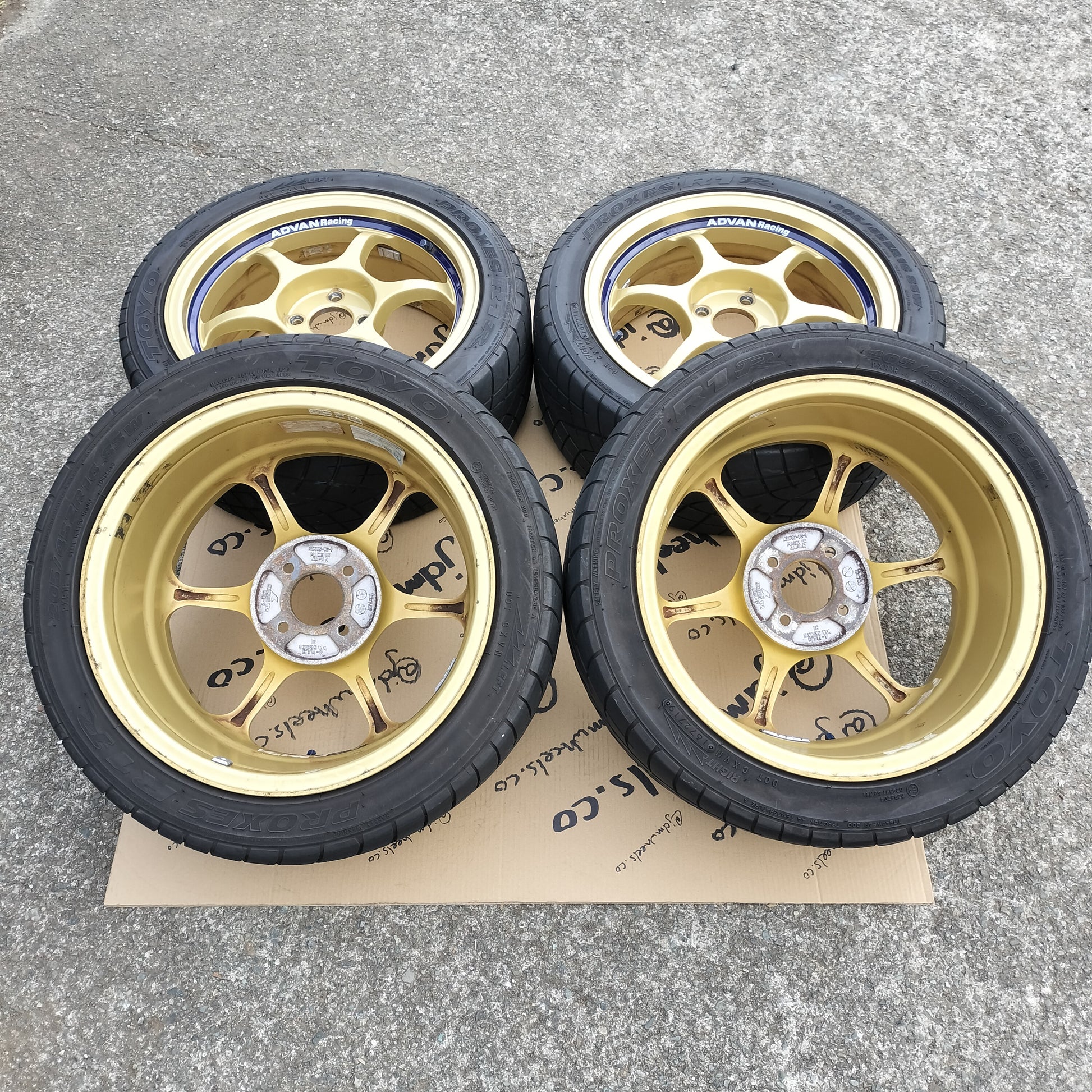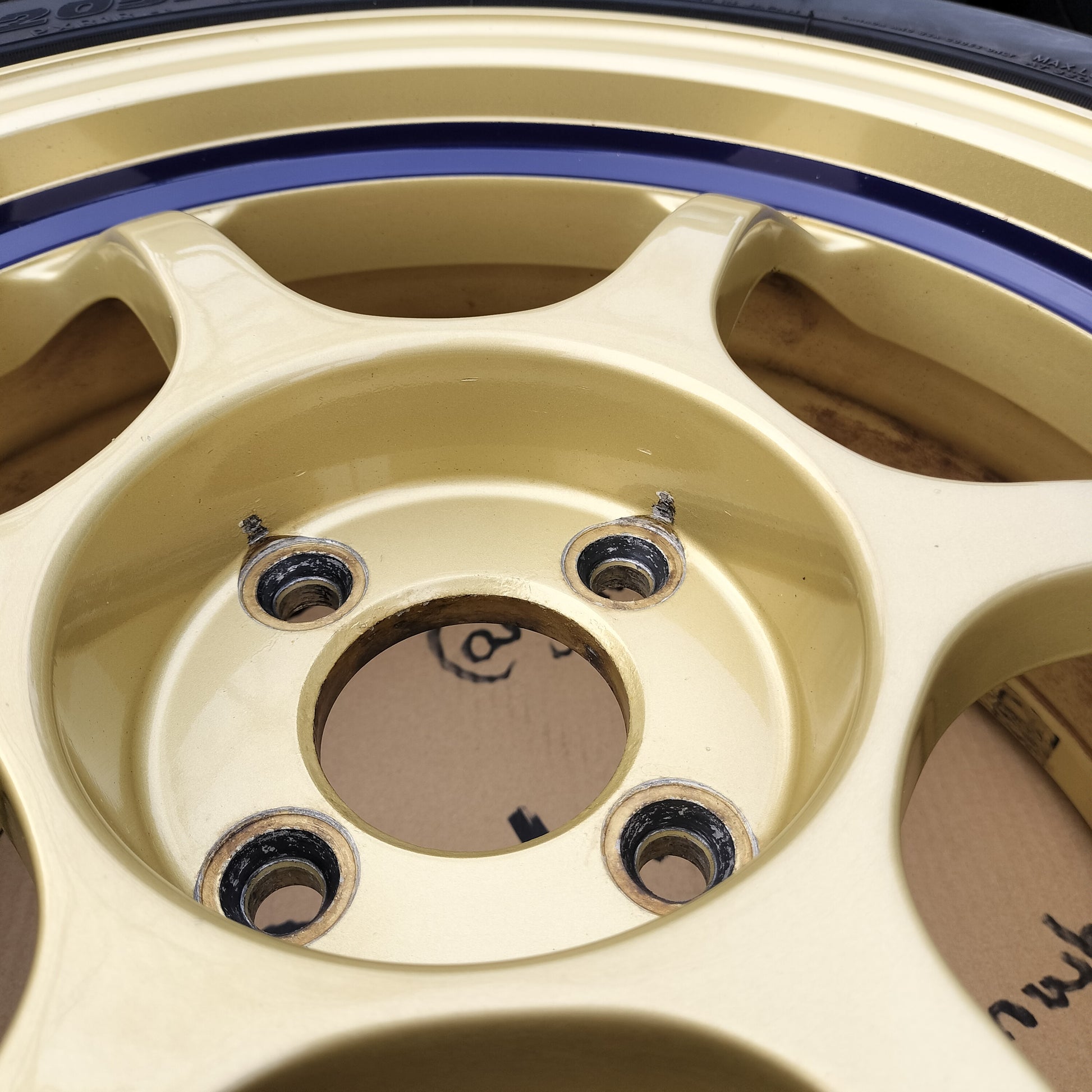 ZERO, ZERO, ZERO rash!! I'm super impressed with this set - the finish has good shine, the ADVAN RACING blue rings are in good shape, they're the best 16x7 offset, and there's zero rash. Did I mention there's zero rash? haha. Really neat to see a set that has survived in this condition all these years.