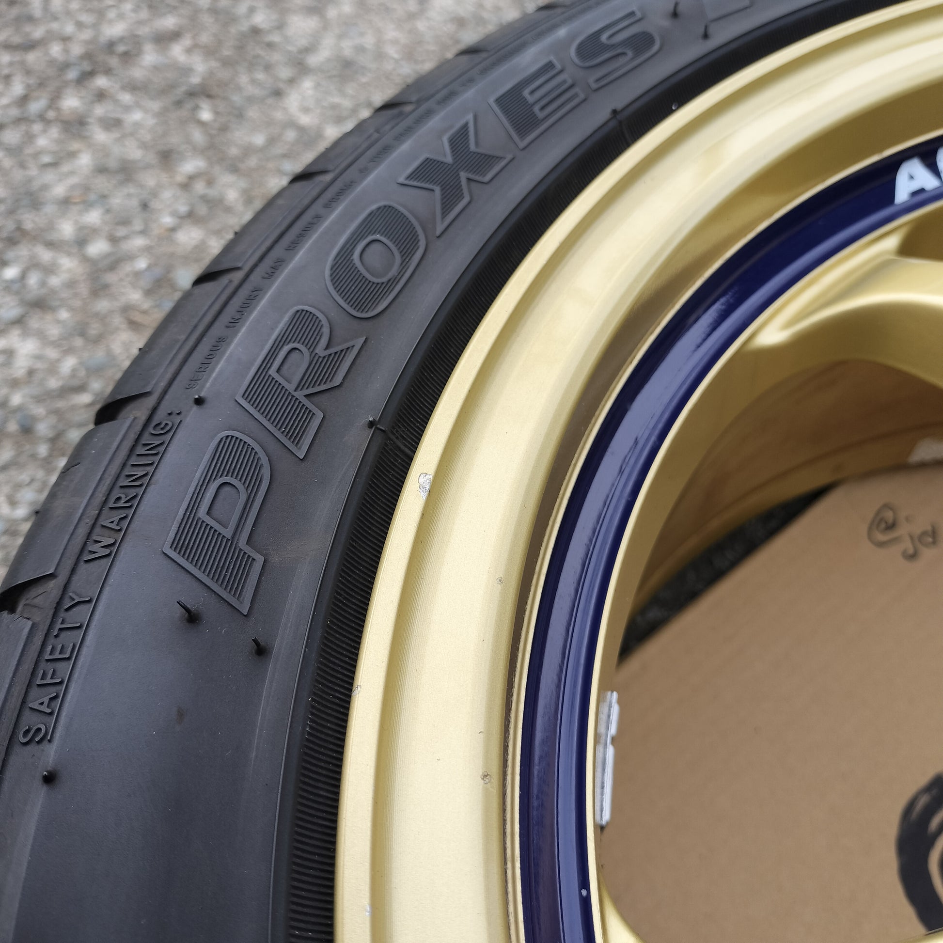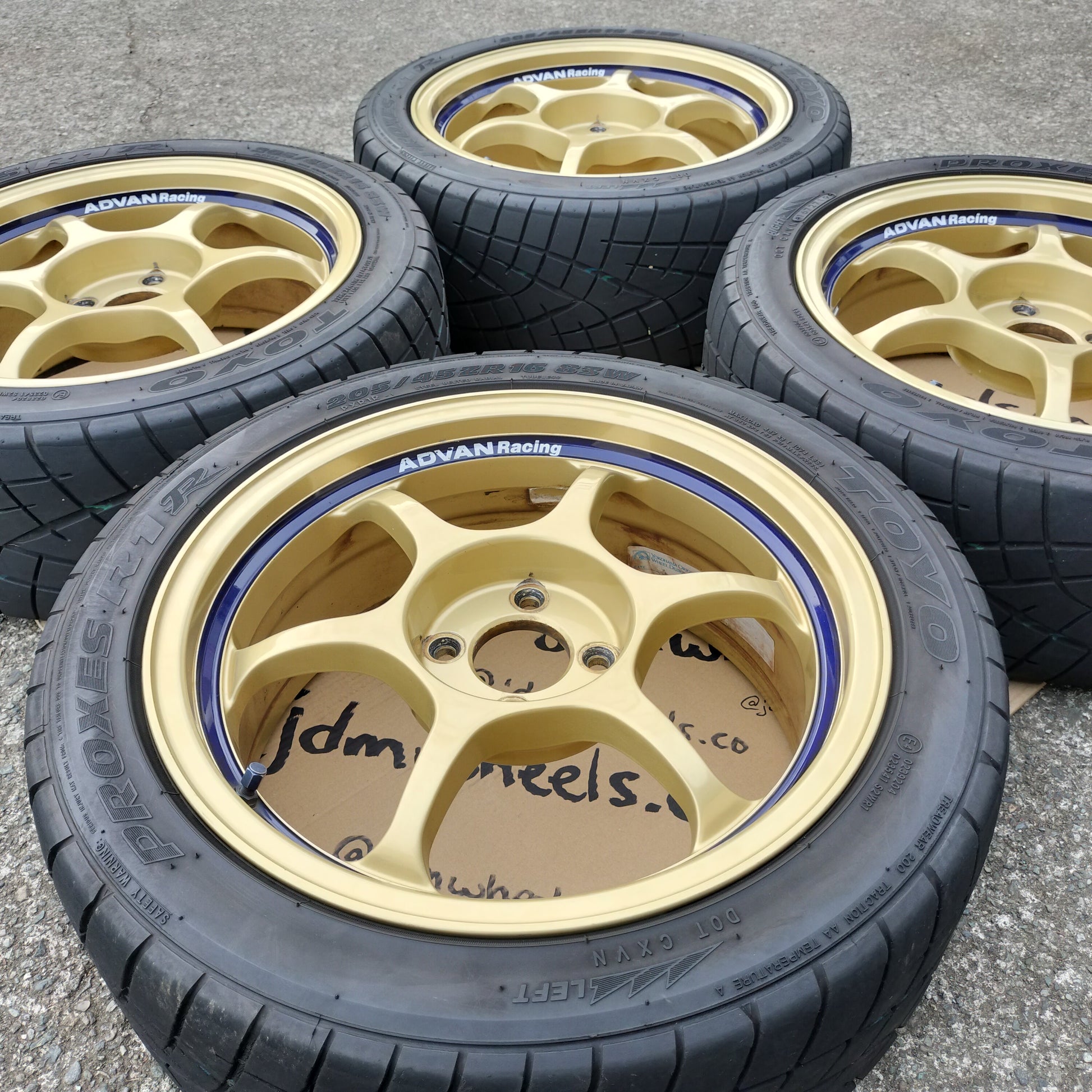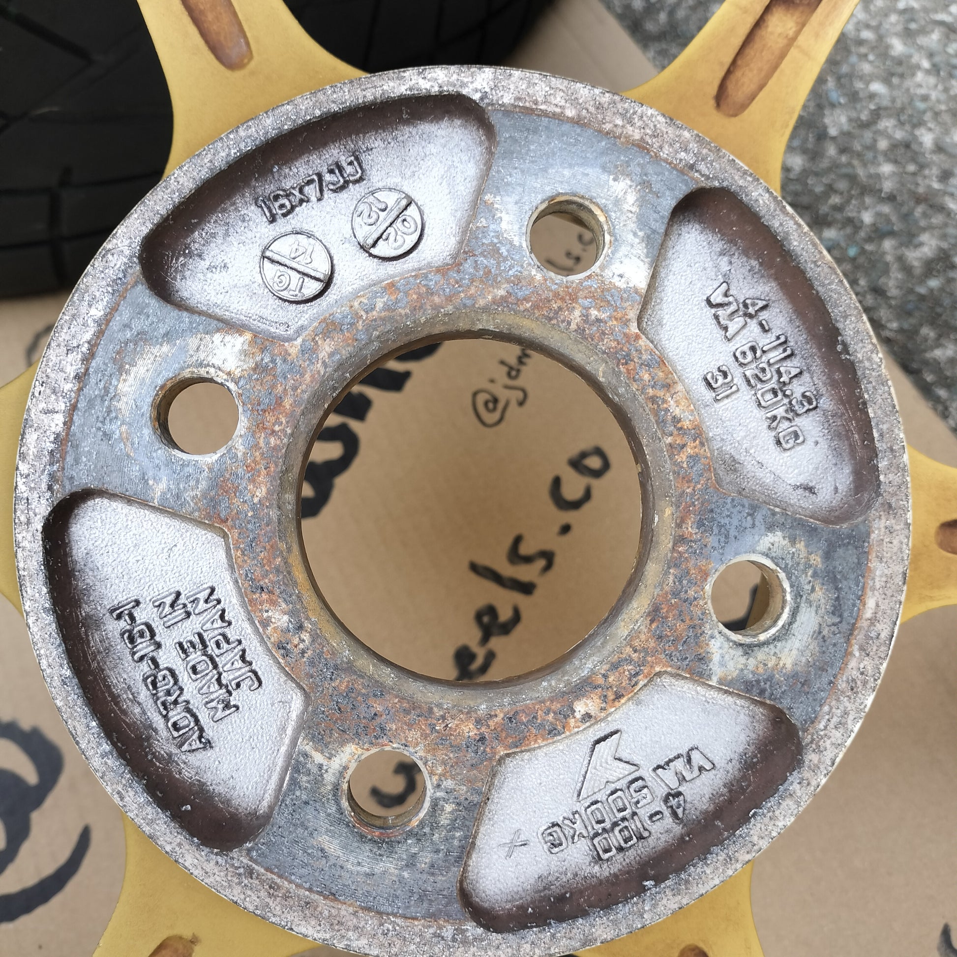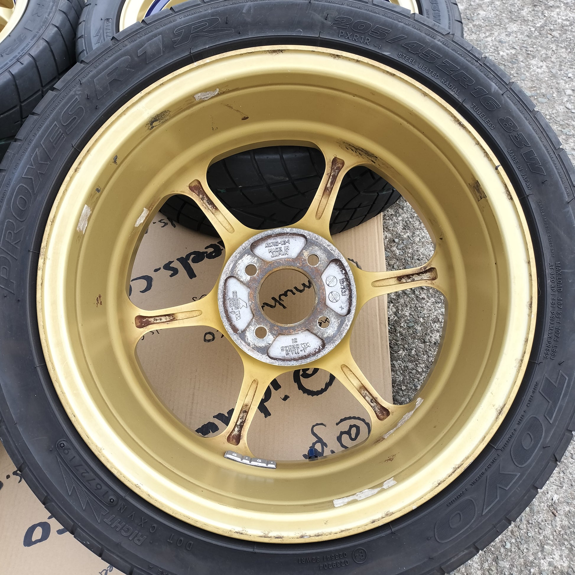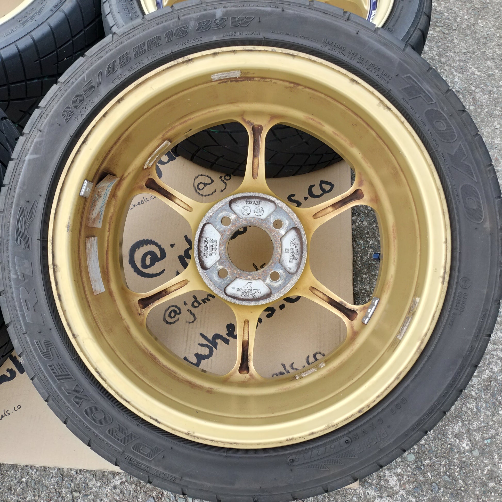 ZERO, ZERO, ZERO rash!! I'm super impressed with this set - the finish has good shine, the ADVAN RACING blue rings are in good shape, they're the best 16x7 offset, and there's zero rash. Did I mention there's zero rash? haha. Really neat to see a set that has survived in this condition all these years.