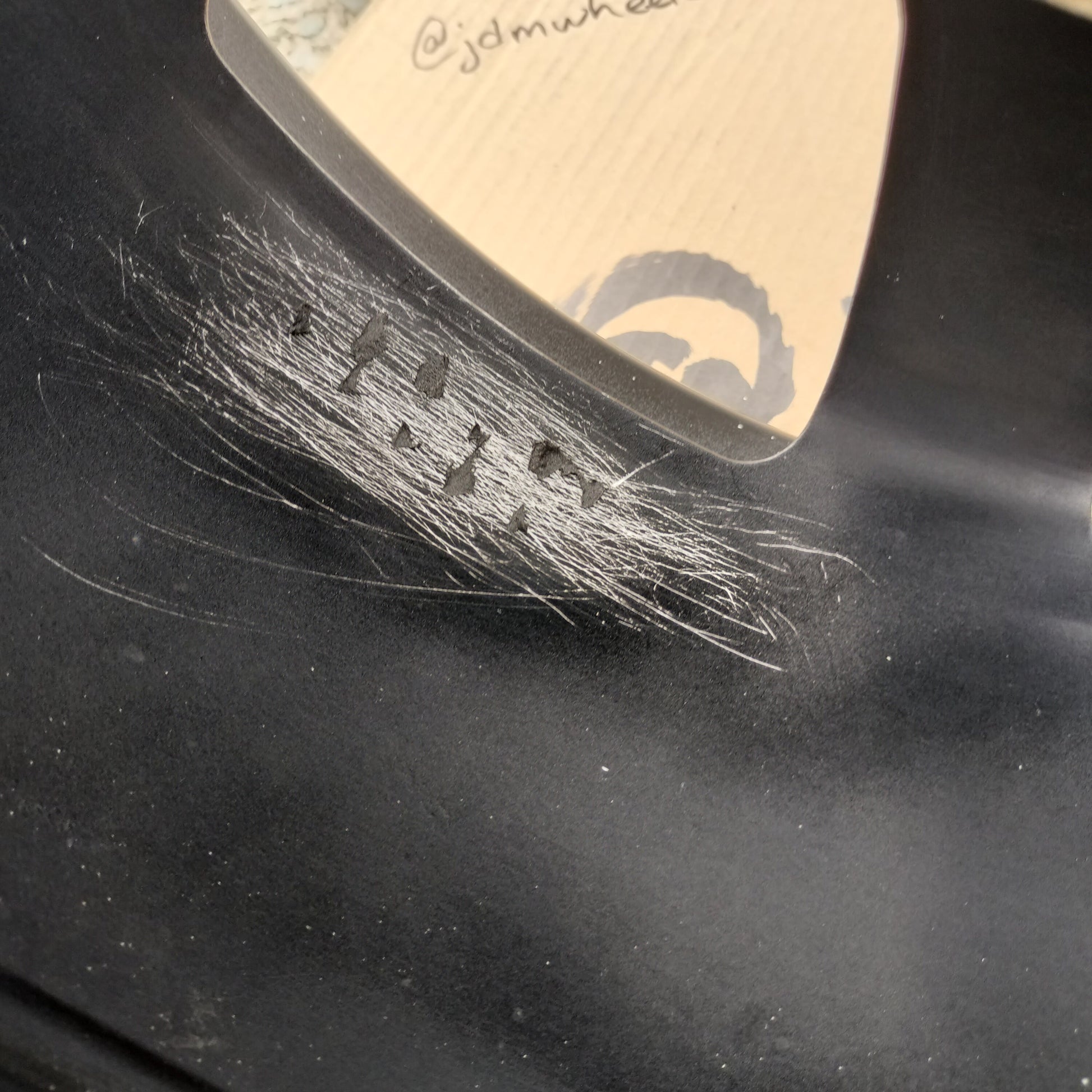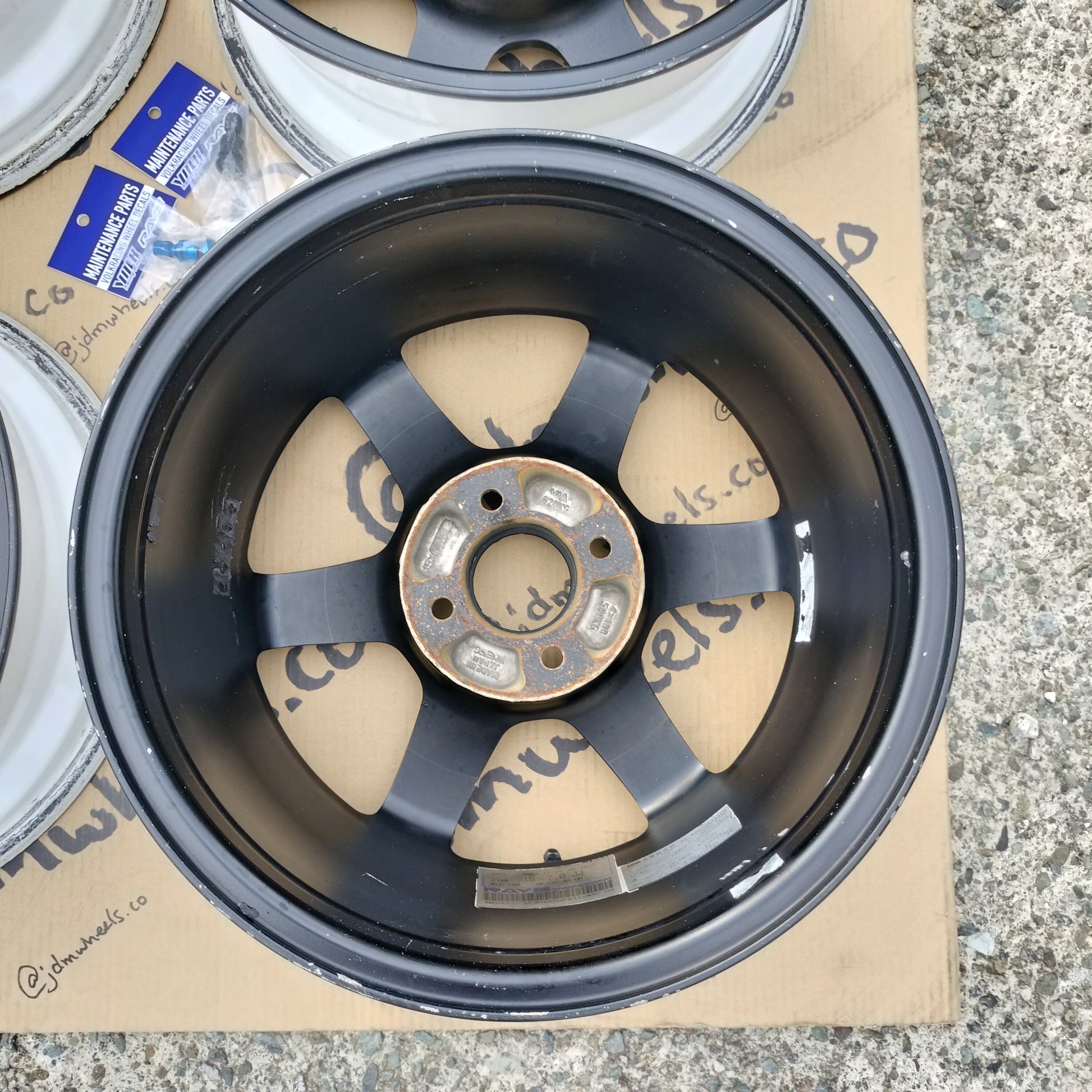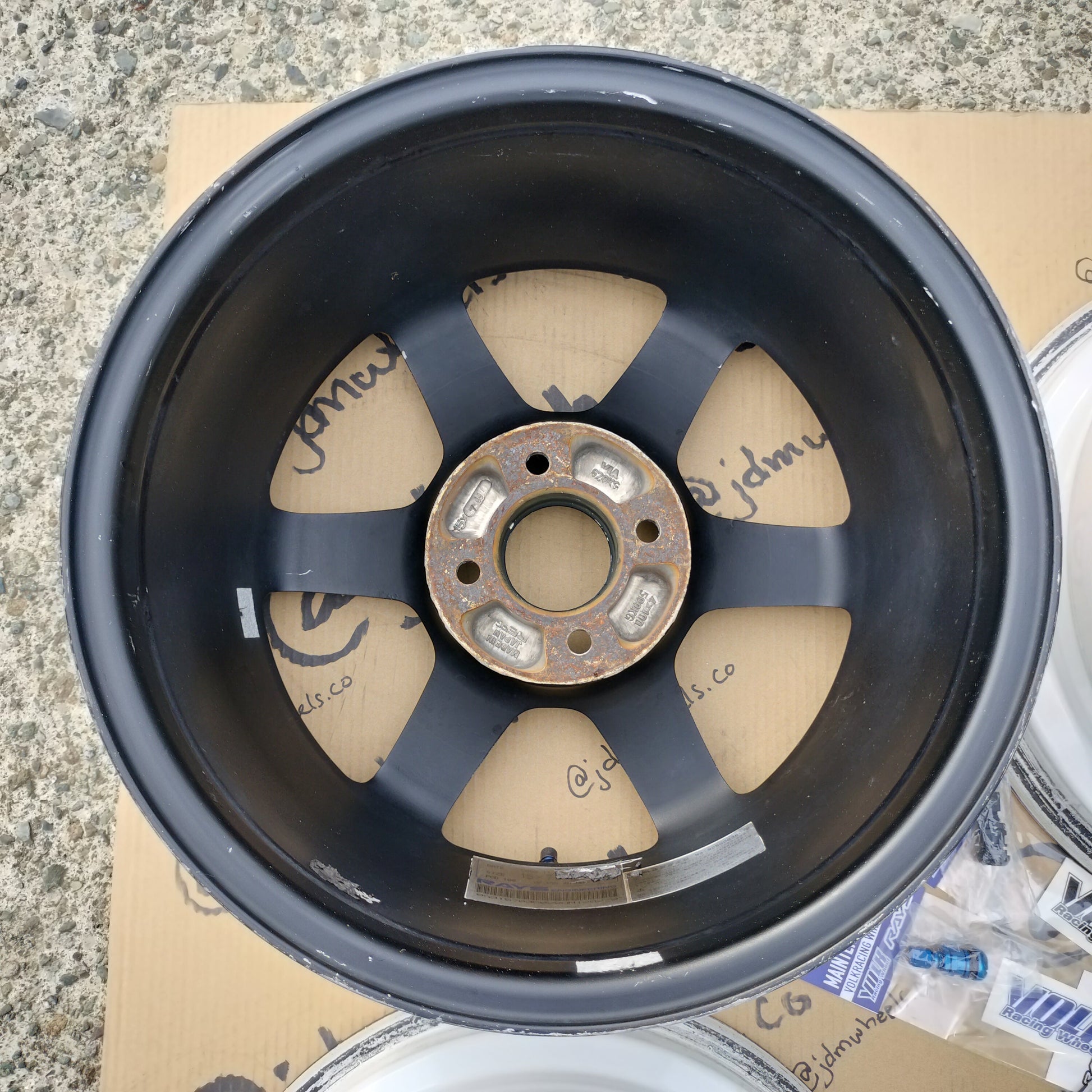 No rash on these babies! However, they've been repainted black (possibly spray paint). It looks decent in the pictures but it's not a high quality finish. You can see sanding scratches from paint prep and there is places where you can see the original finish is bubbling underneath. They just need to be refinished to look 100%.