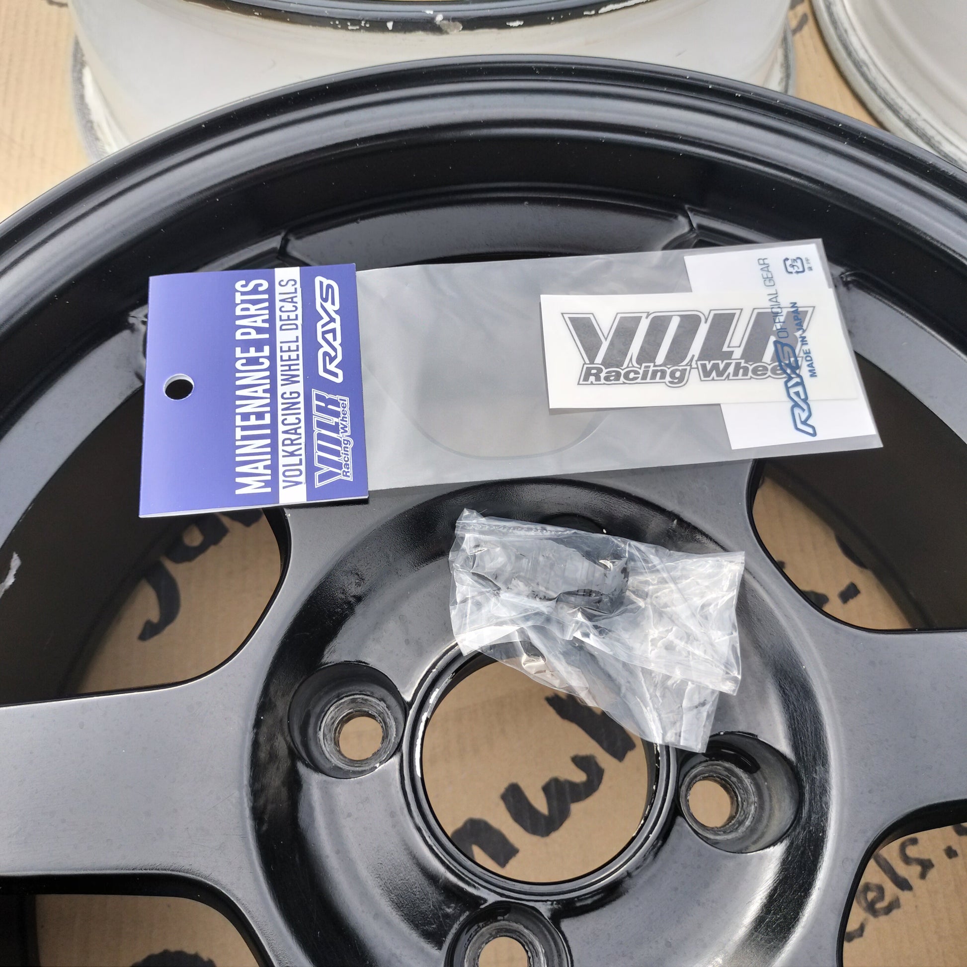I have new Rays blue or black valves stems and/or stickers are in stock (mocked up in the pics). Please let me know if you'd like to add a set of either/both and what color after purchasing and I'll invoice separately.