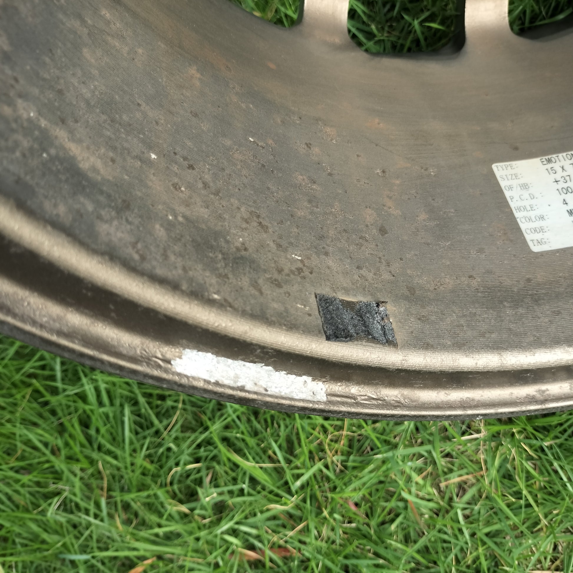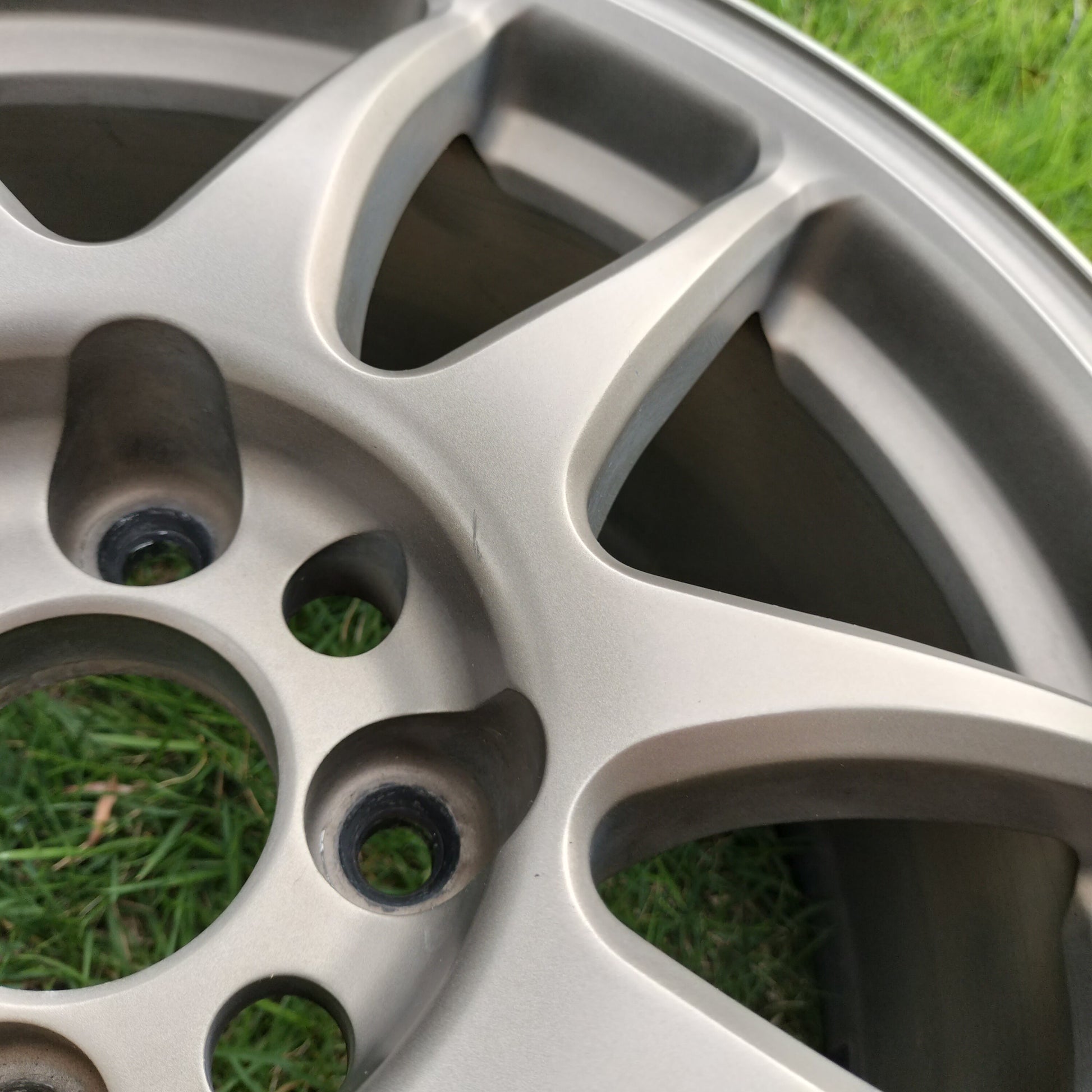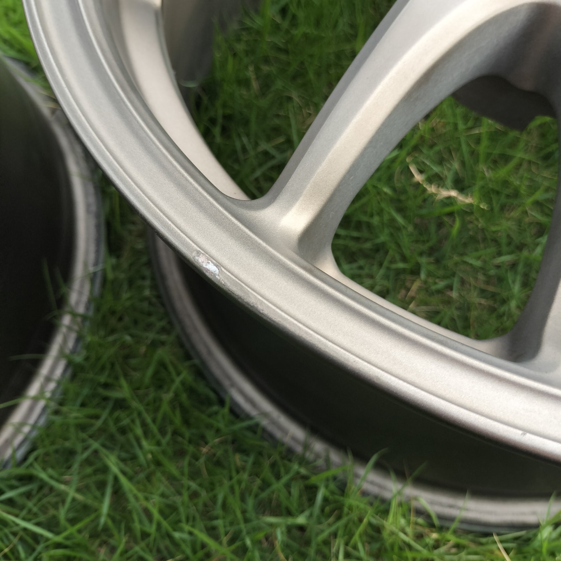 These are in GREAT shape with zero rash! Just a few small rubs/smudges/scratches as pictured and that's really the extent of it. The inner edge of one wheel has a small spot of corrosion.