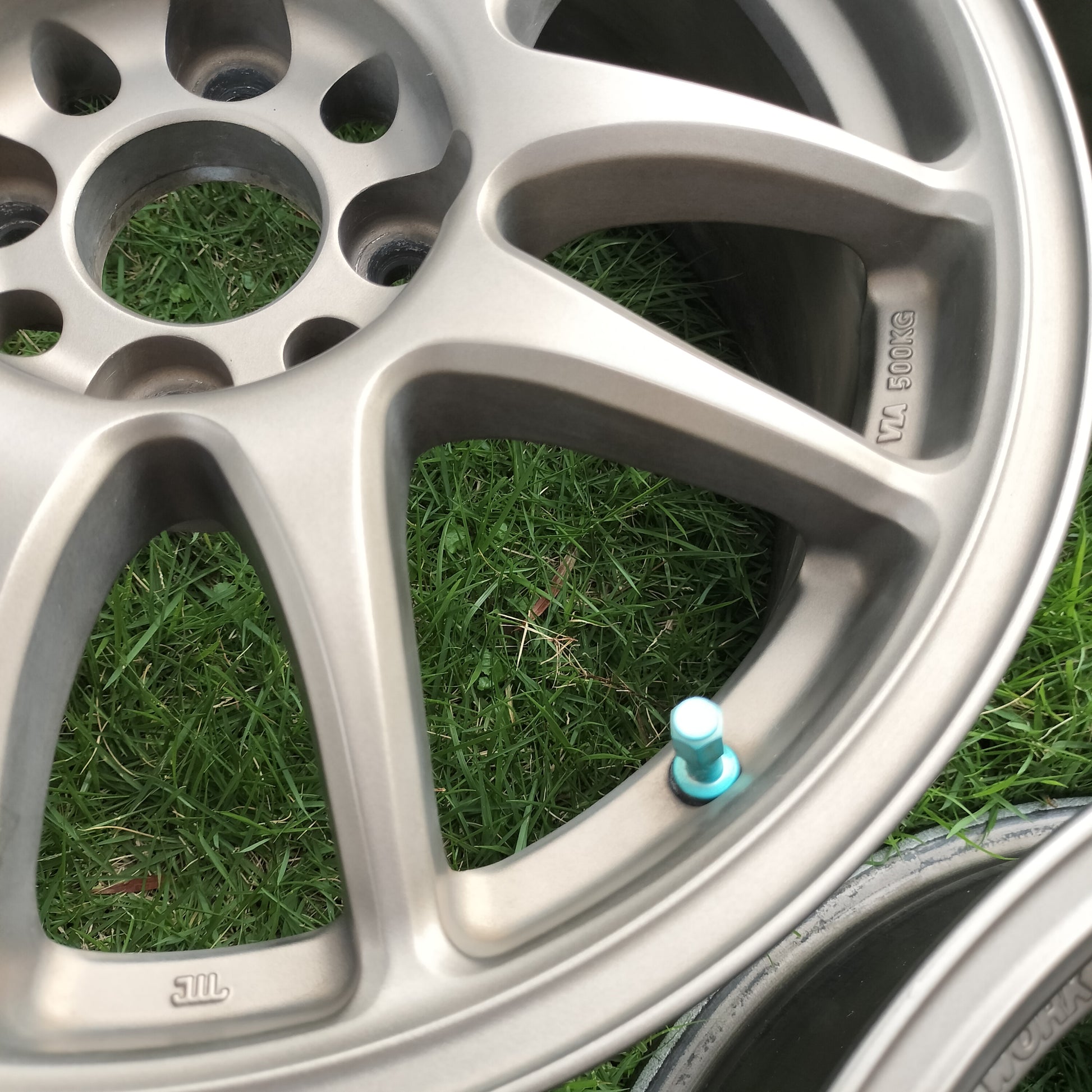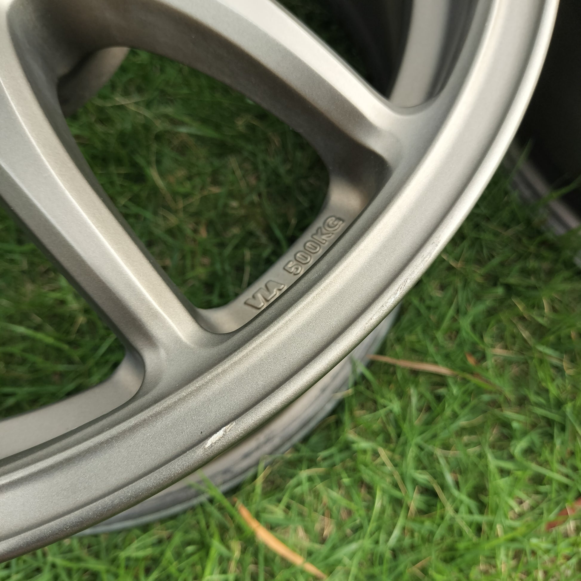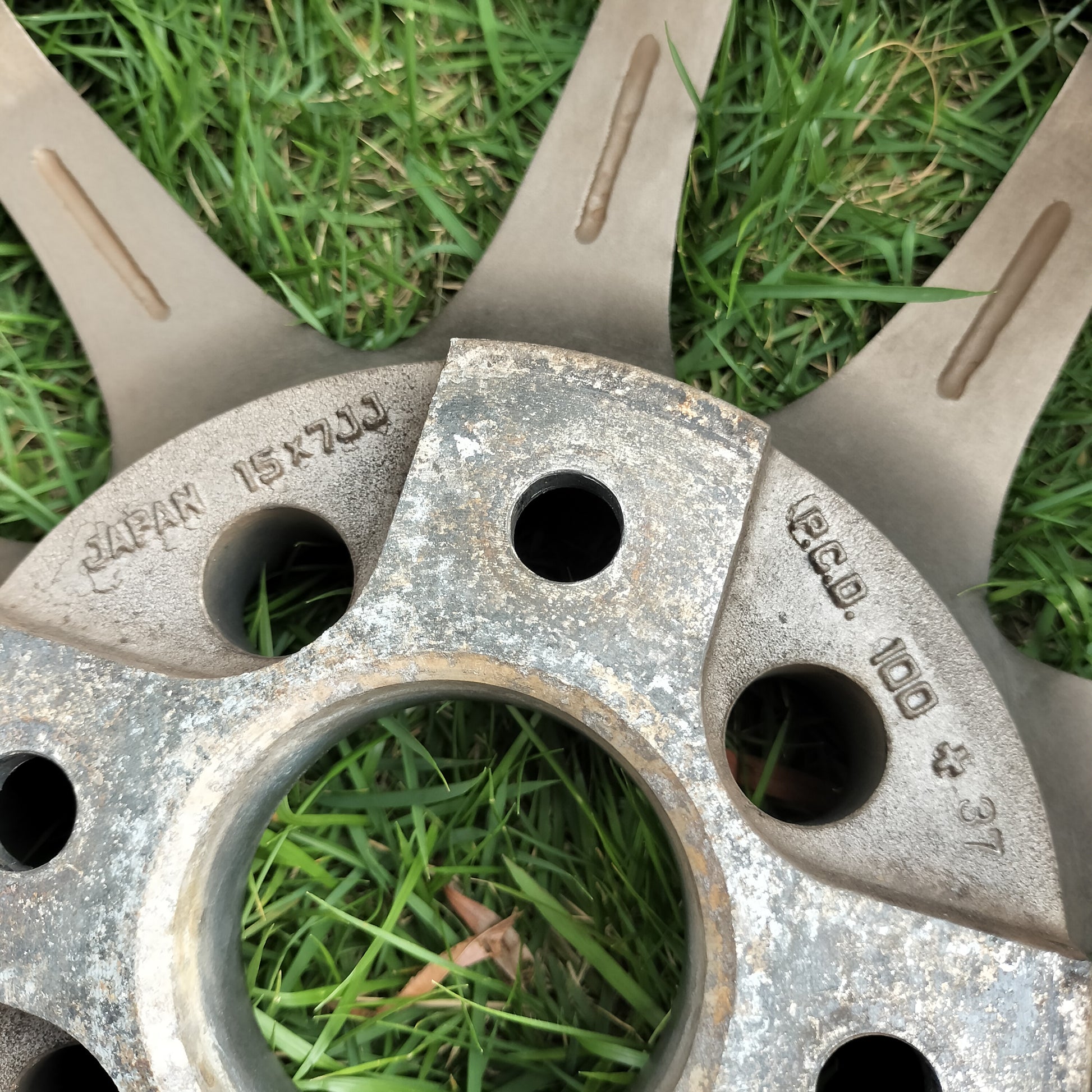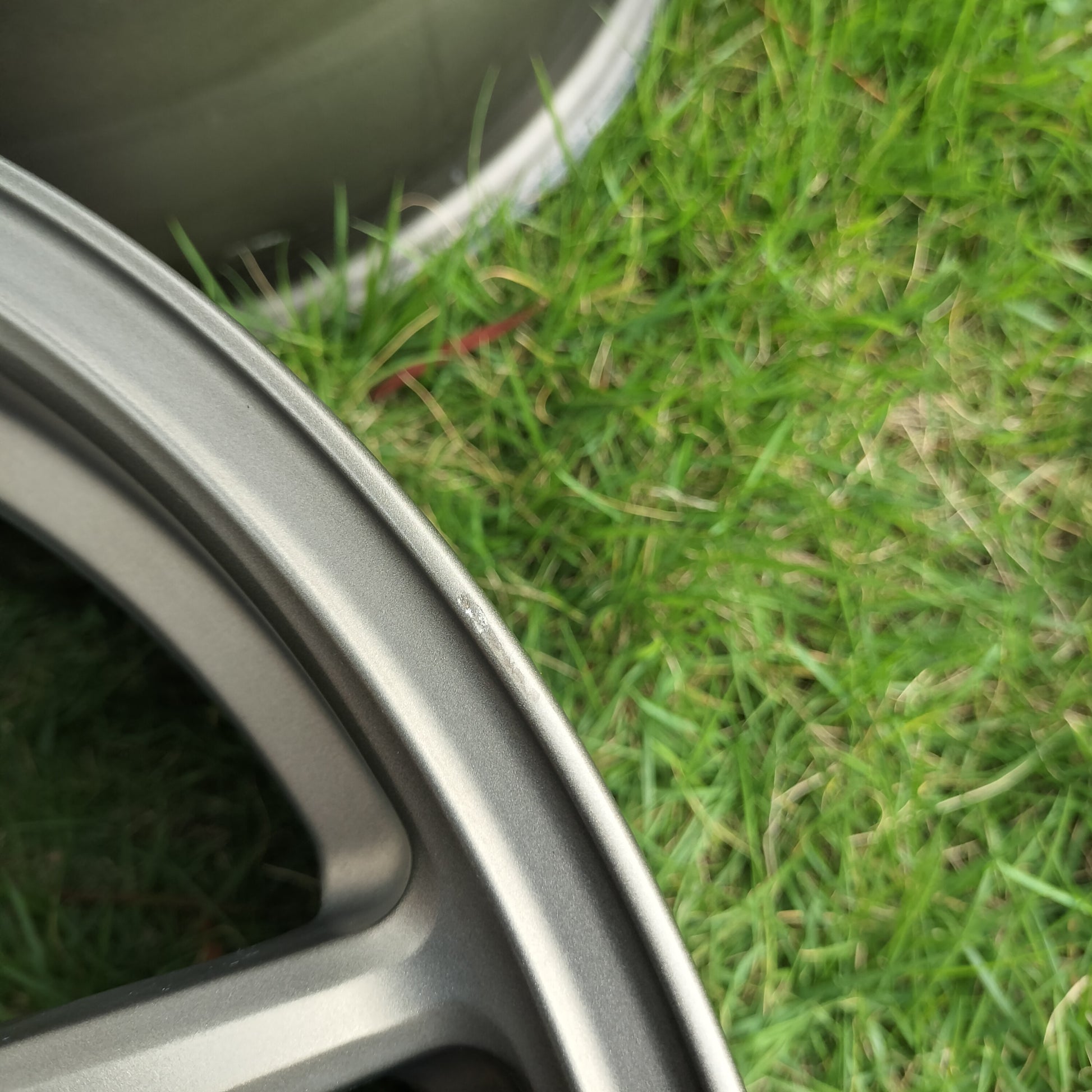 These are in GREAT shape with zero rash! Just a few small rubs/smudges/scratches as pictured and that's really the extent of it. The inner edge of one wheel has a small spot of corrosion.