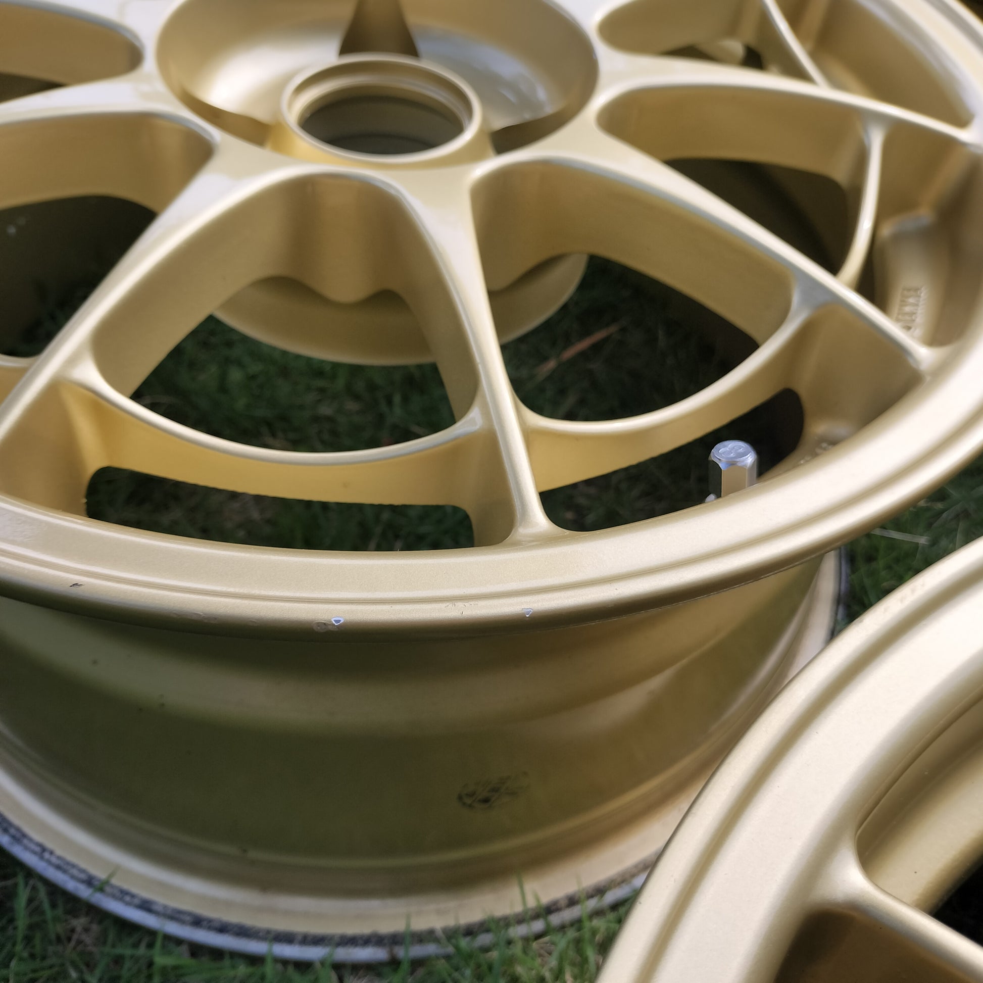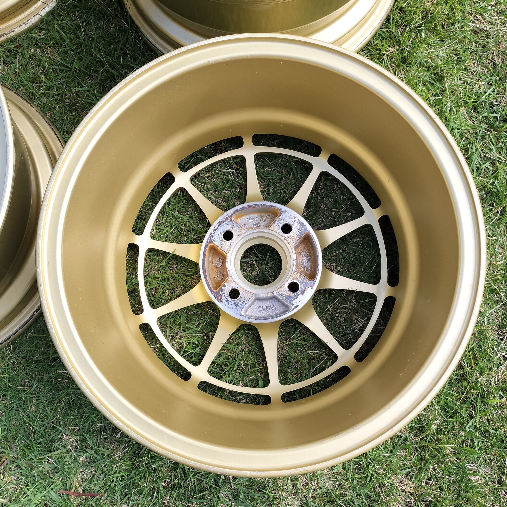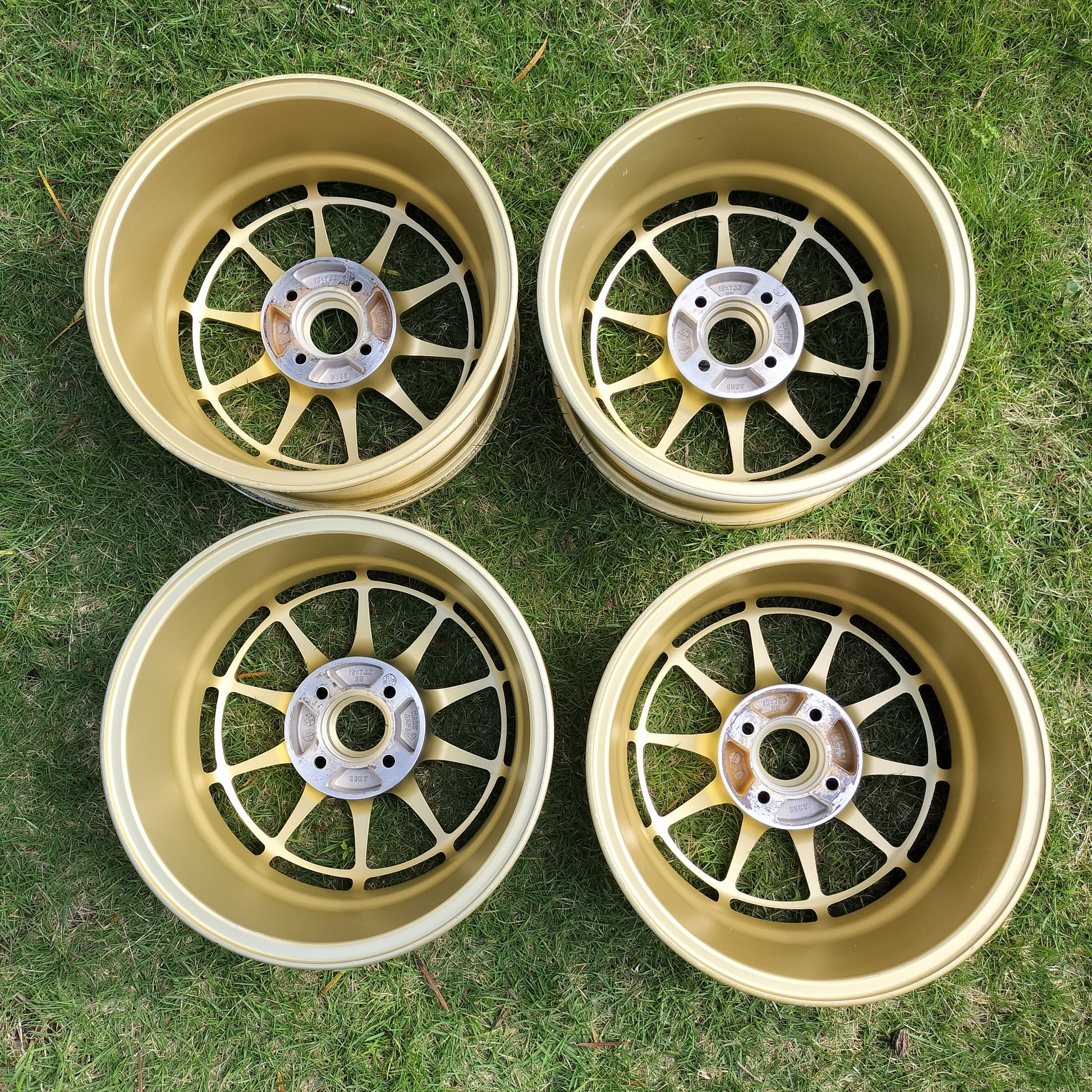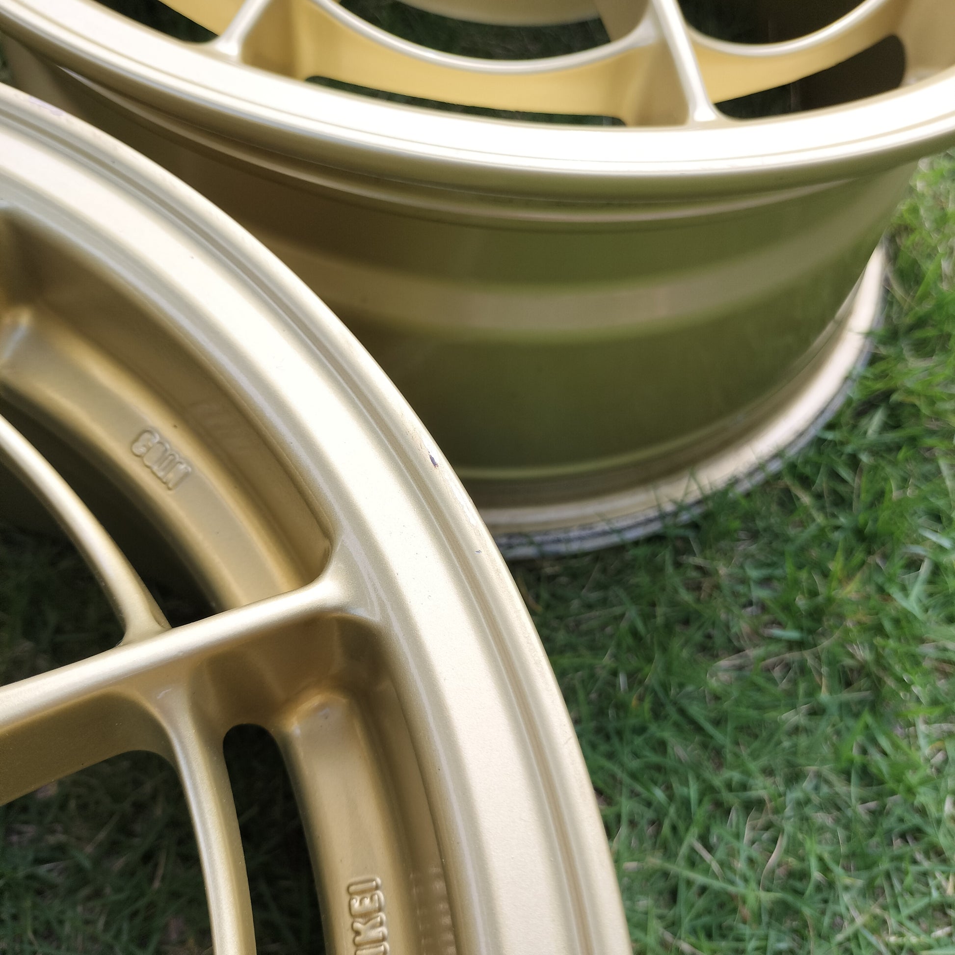NT03's are having a moment right now and for good reason - they're awesome! These are in really good condition. A few rubs, scratches, and chips, but there is NO curb rash. They look to have been well taken care of (look at the inside of the barrels!). Just normal use type marks - a couple of the spots/chips have touchup paint on them just to seal them up. The finish is in great shape. The clear coat still shines nicely and no bubbling or flaking. True survivor set considering the 12/18/2001 production date!