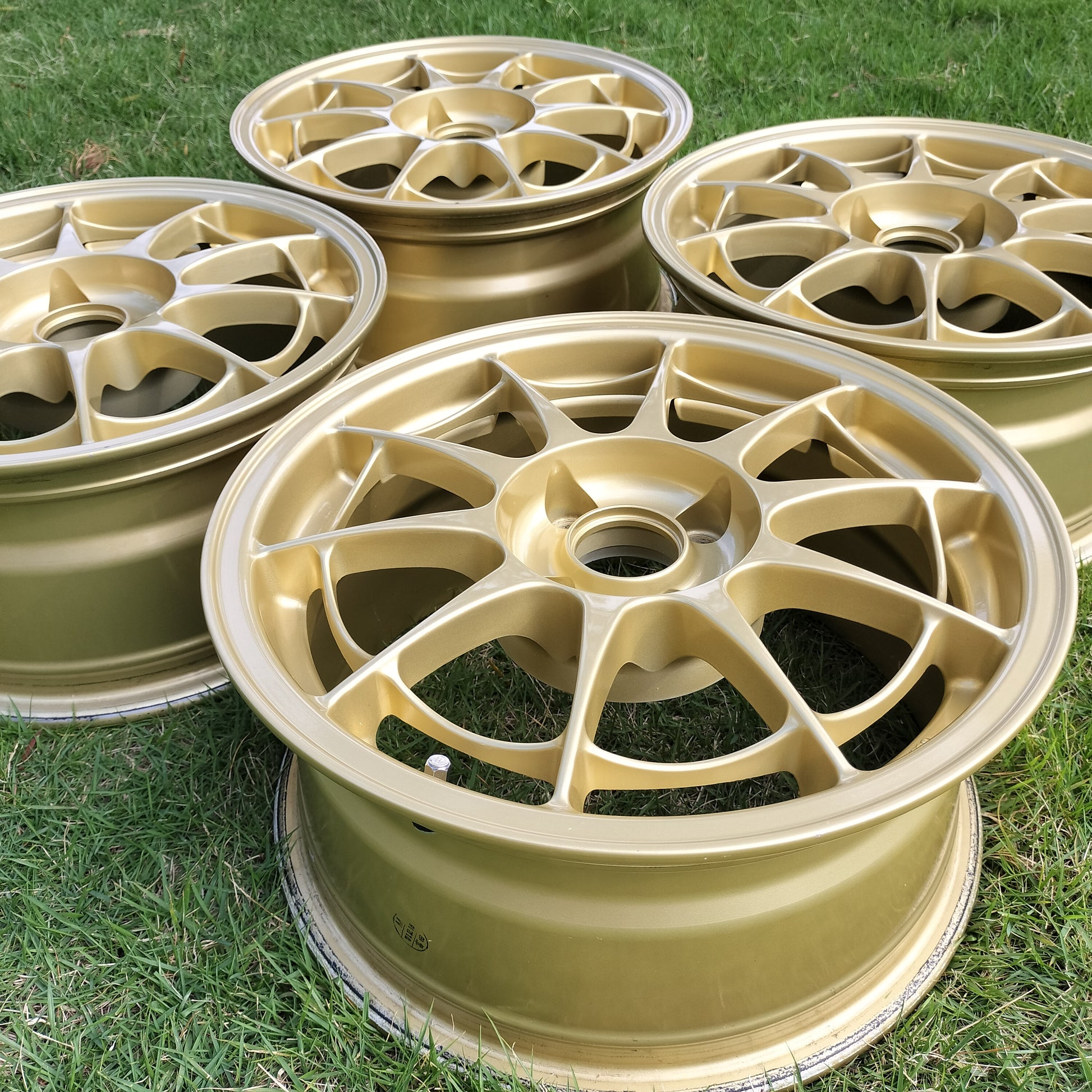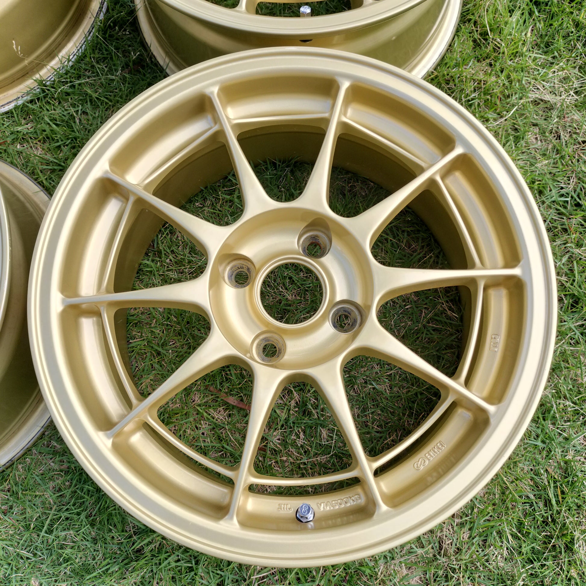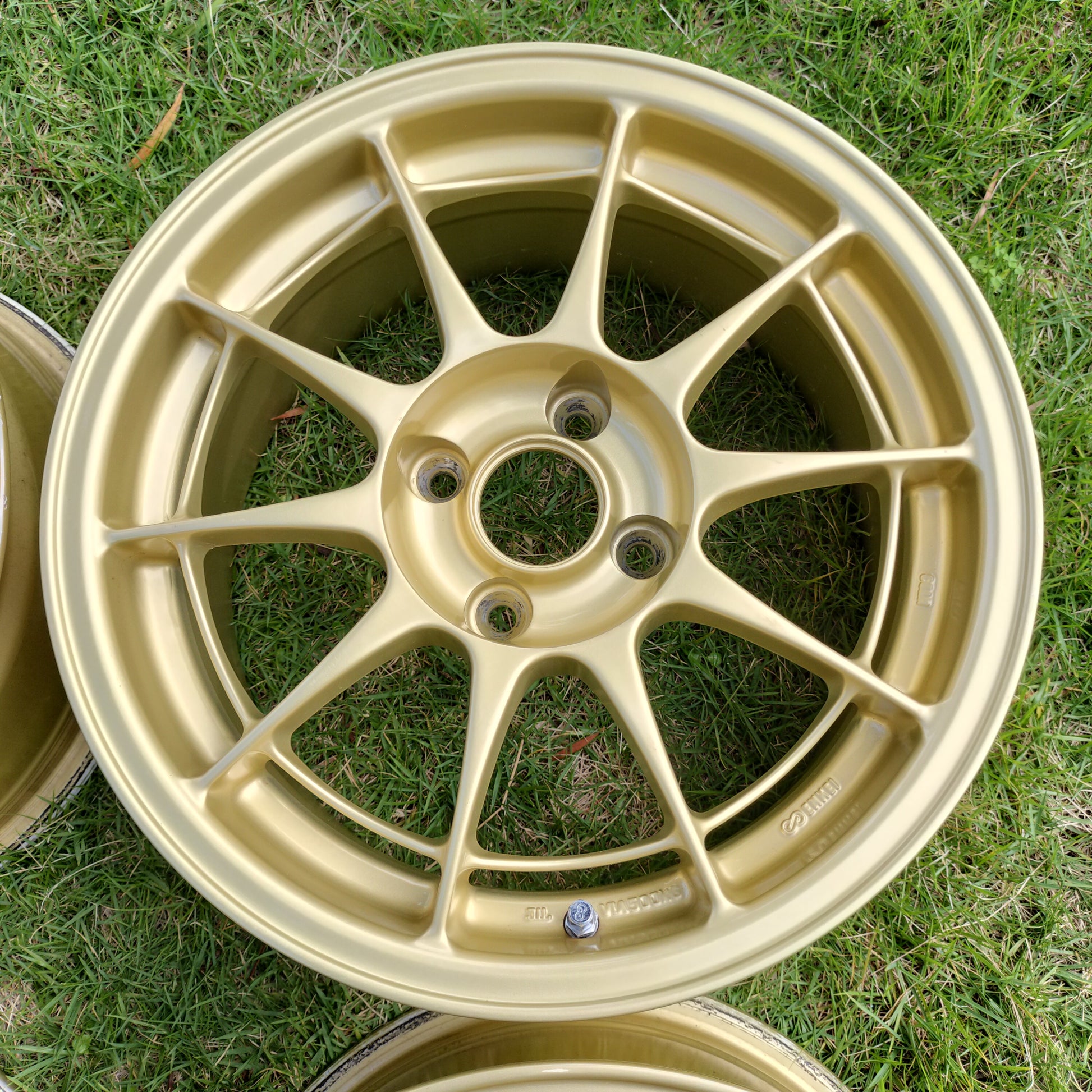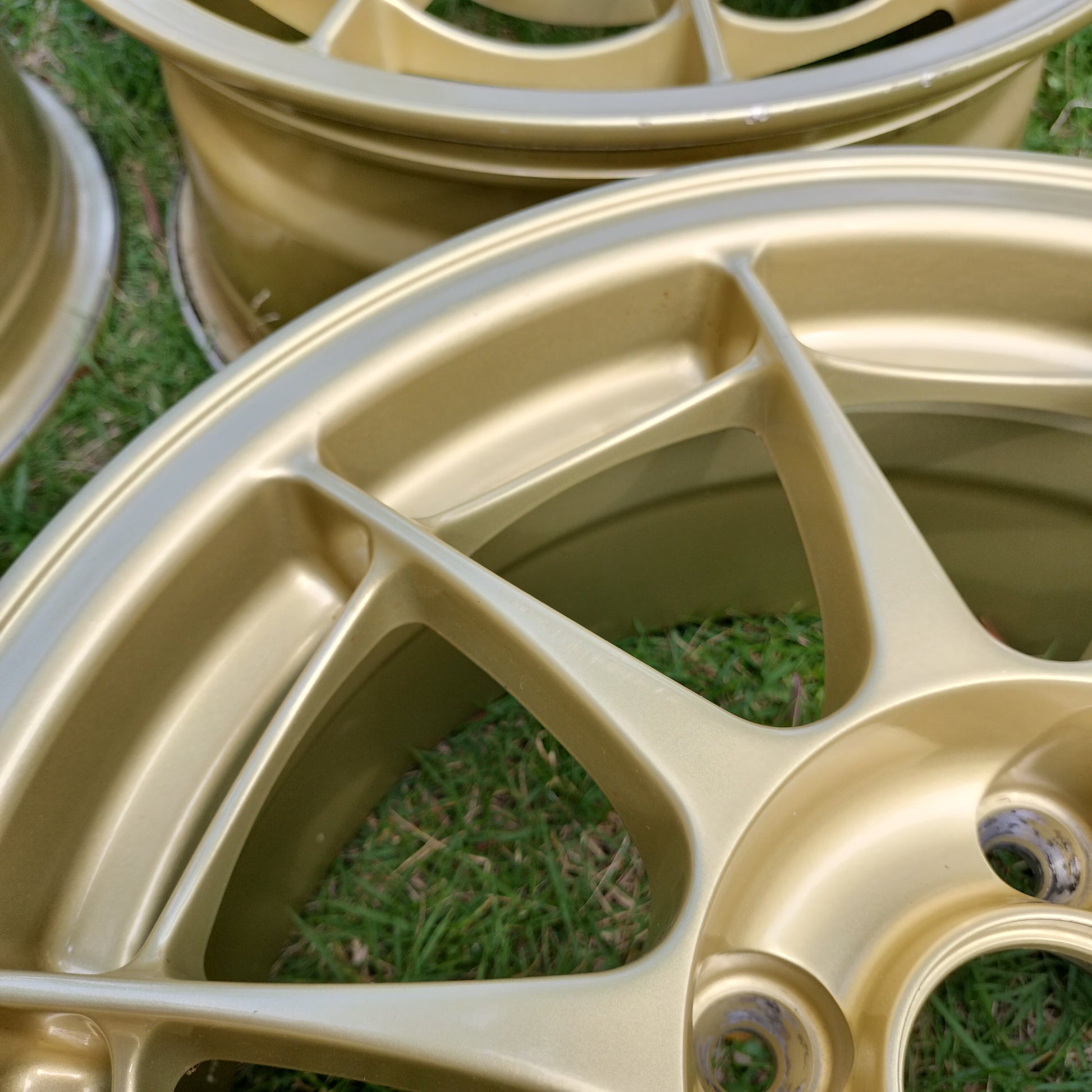 NT03's are having a moment right now and for good reason - they're awesome! These are in really good condition. A few rubs, scratches, and chips, but there is NO curb rash. They look to have been well taken care of (look at the inside of the barrels!). Just normal use type marks - a couple of the spots/chips have touchup paint on them just to seal them up. The finish is in great shape. The clear coat still shines nicely and no bubbling or flaking. True survivor set considering the 12/18/2001 production date!