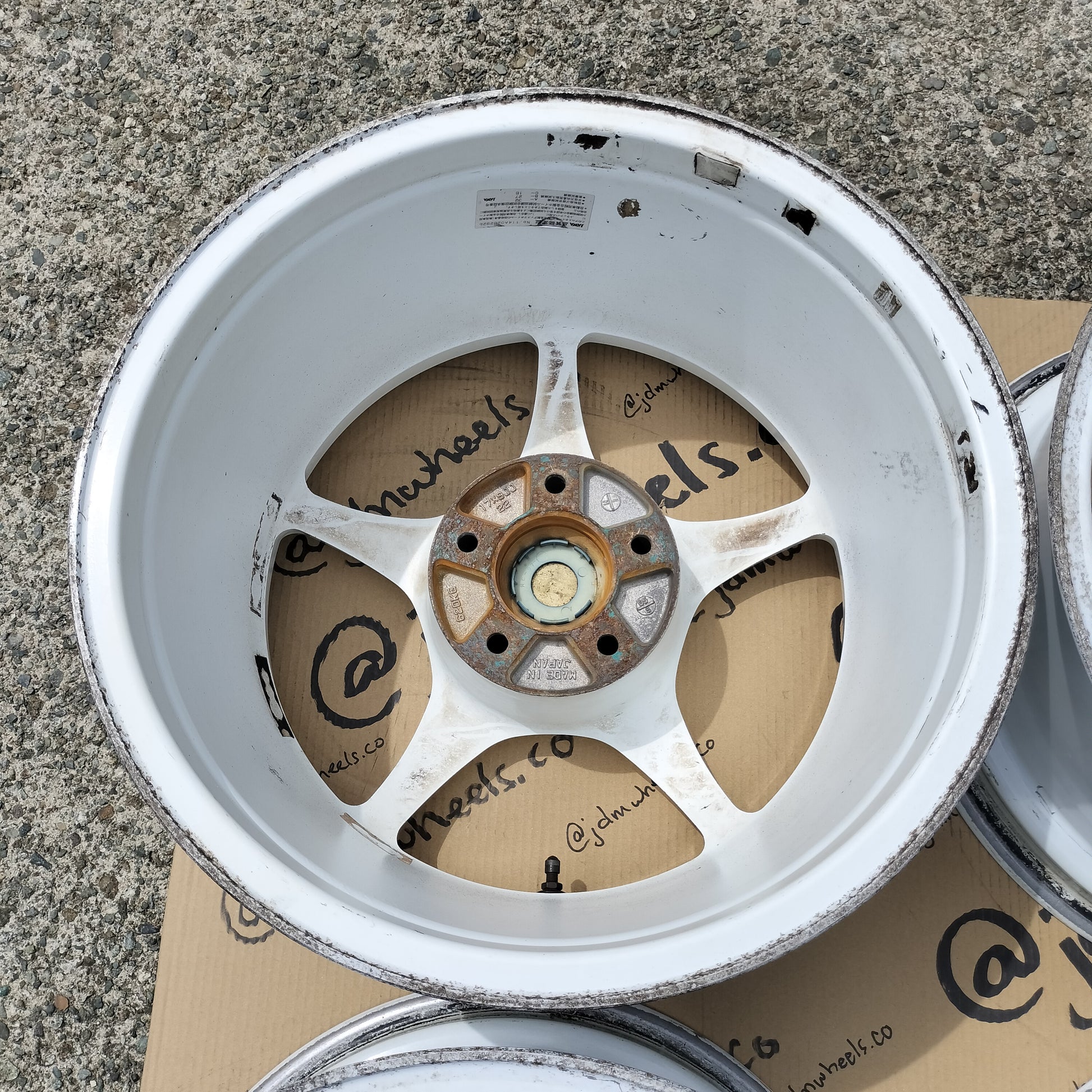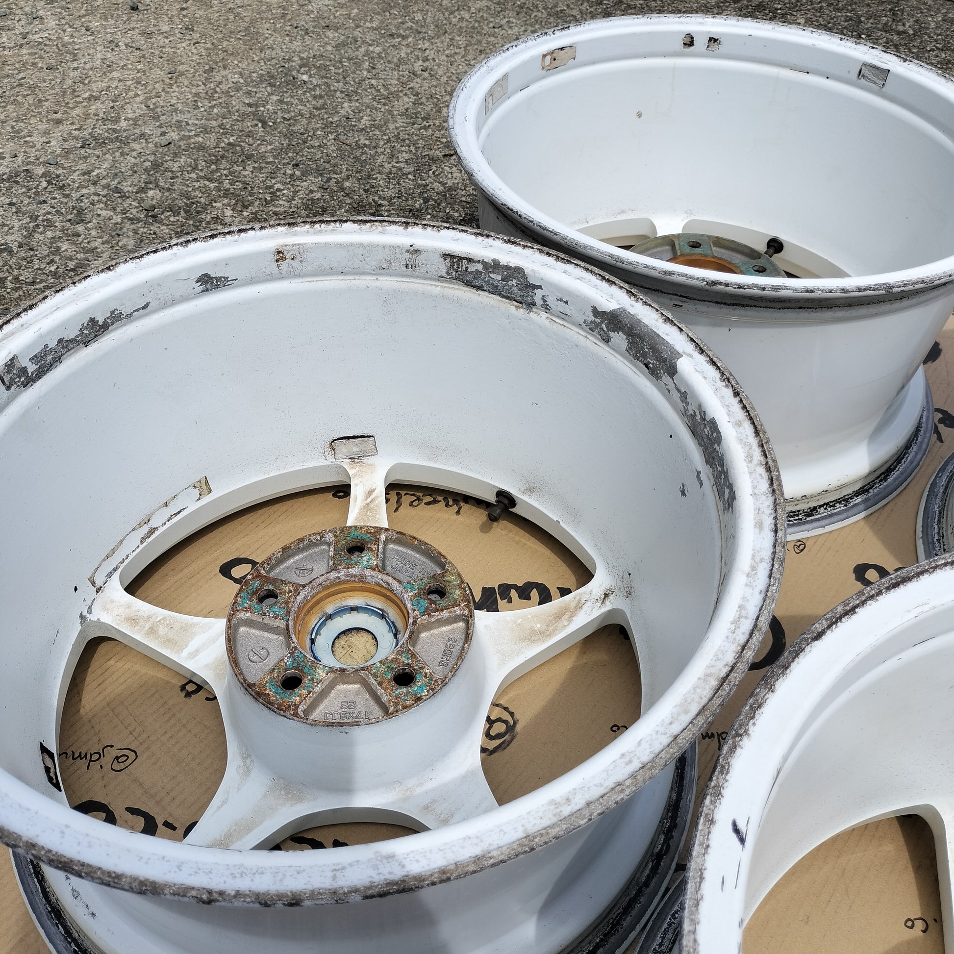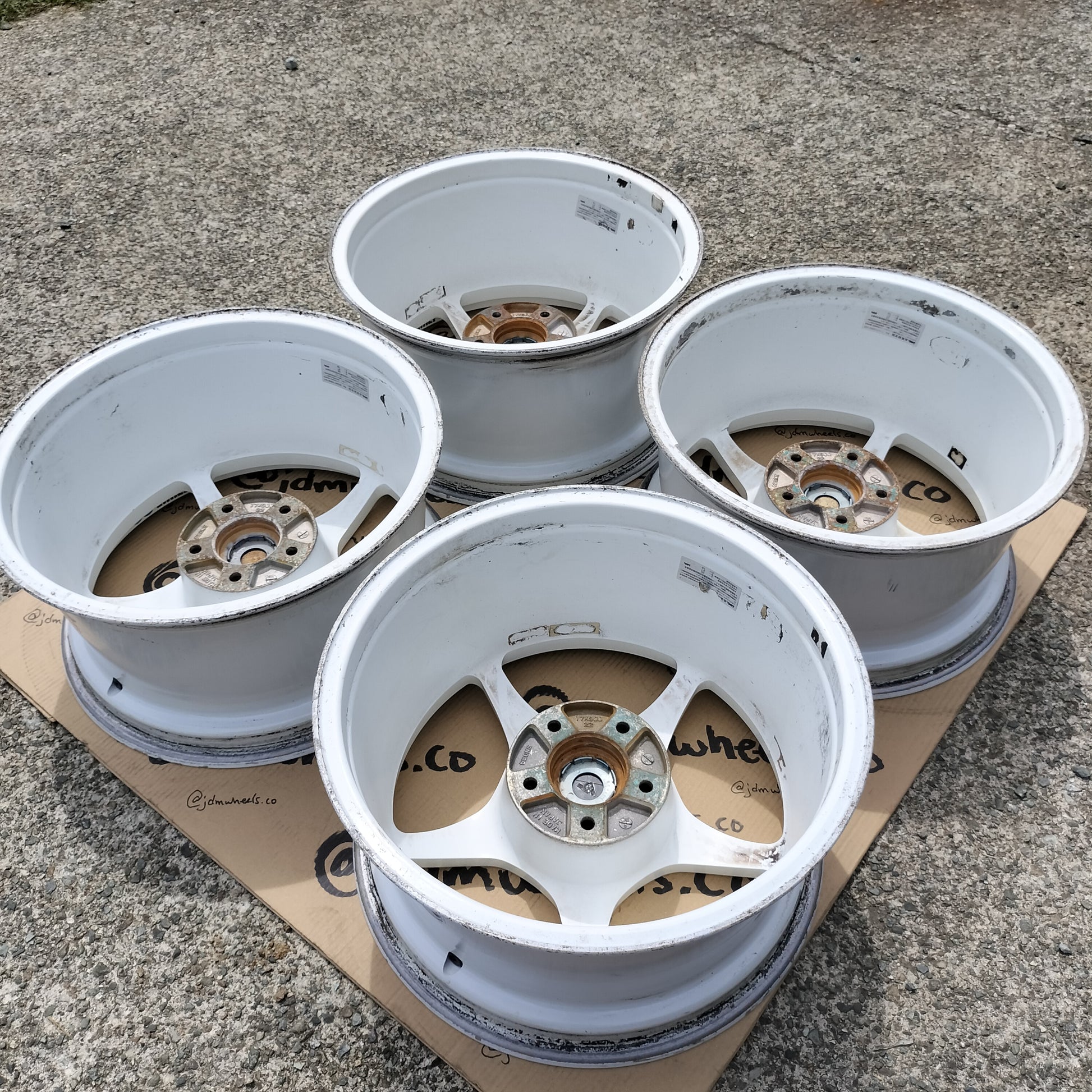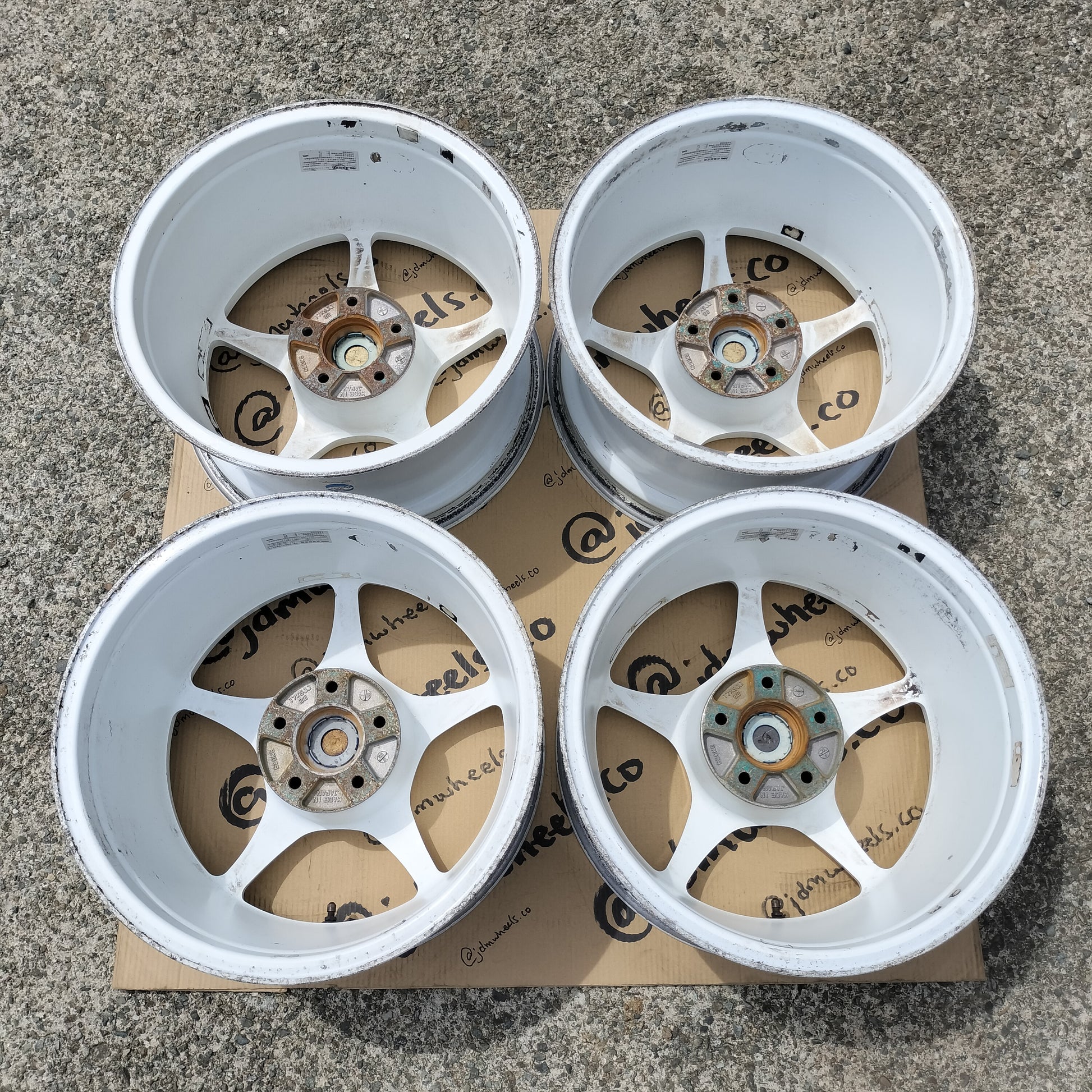 A very clean example of these early era classics in great s-chassis, RX-7, or BNR32 specs! A little fading in the finish, nicks and chips, and some heavy flaking on the inside of one but no heavy rash. Center caps included as well. Great condition to enjoy as is or refinish with minimal work needed. Gotta love the super deep mounting hub on these!