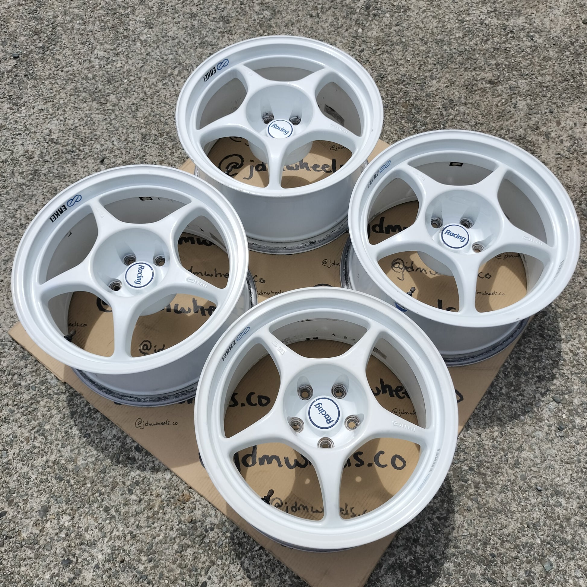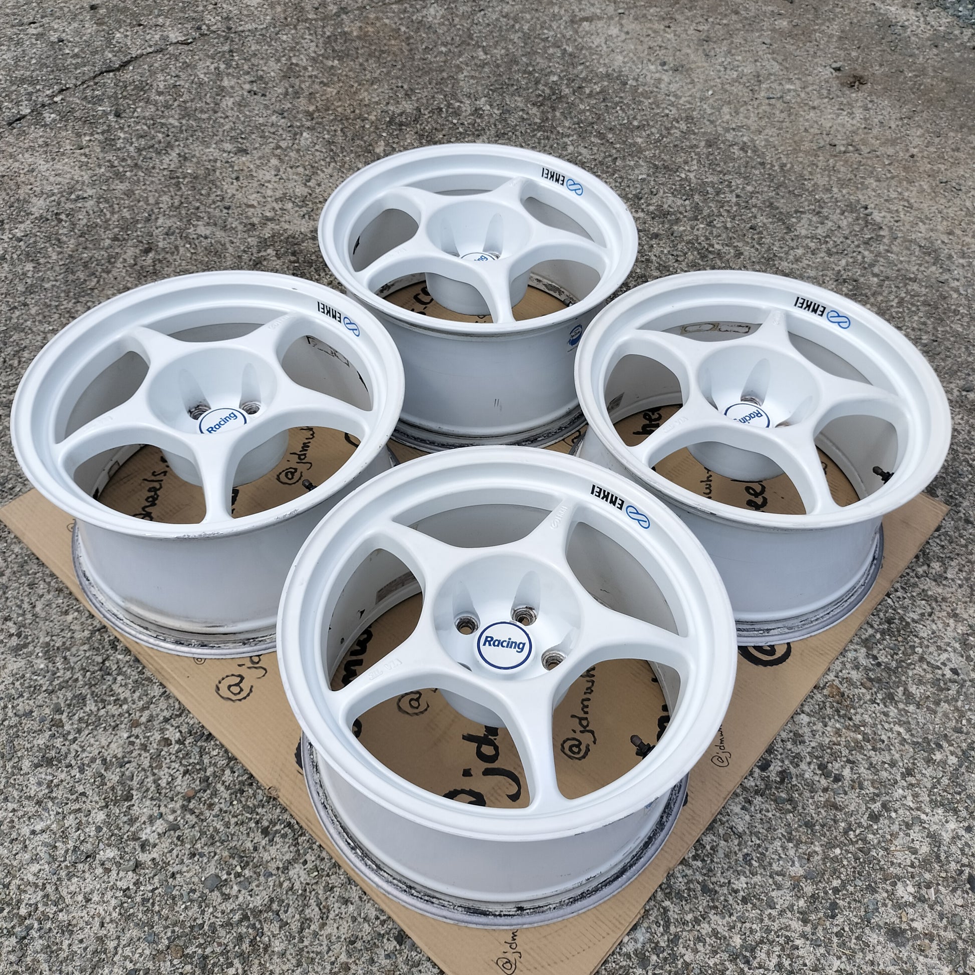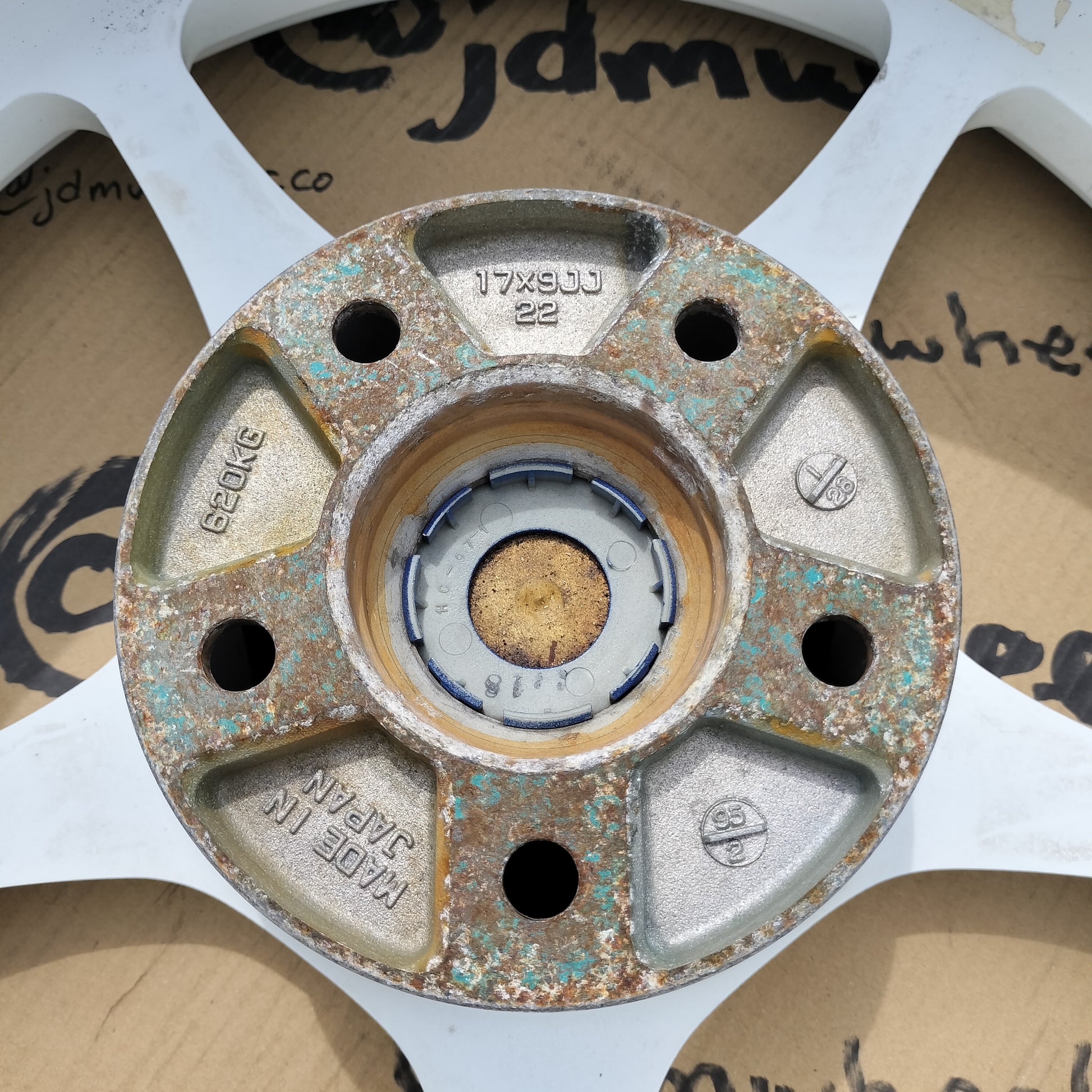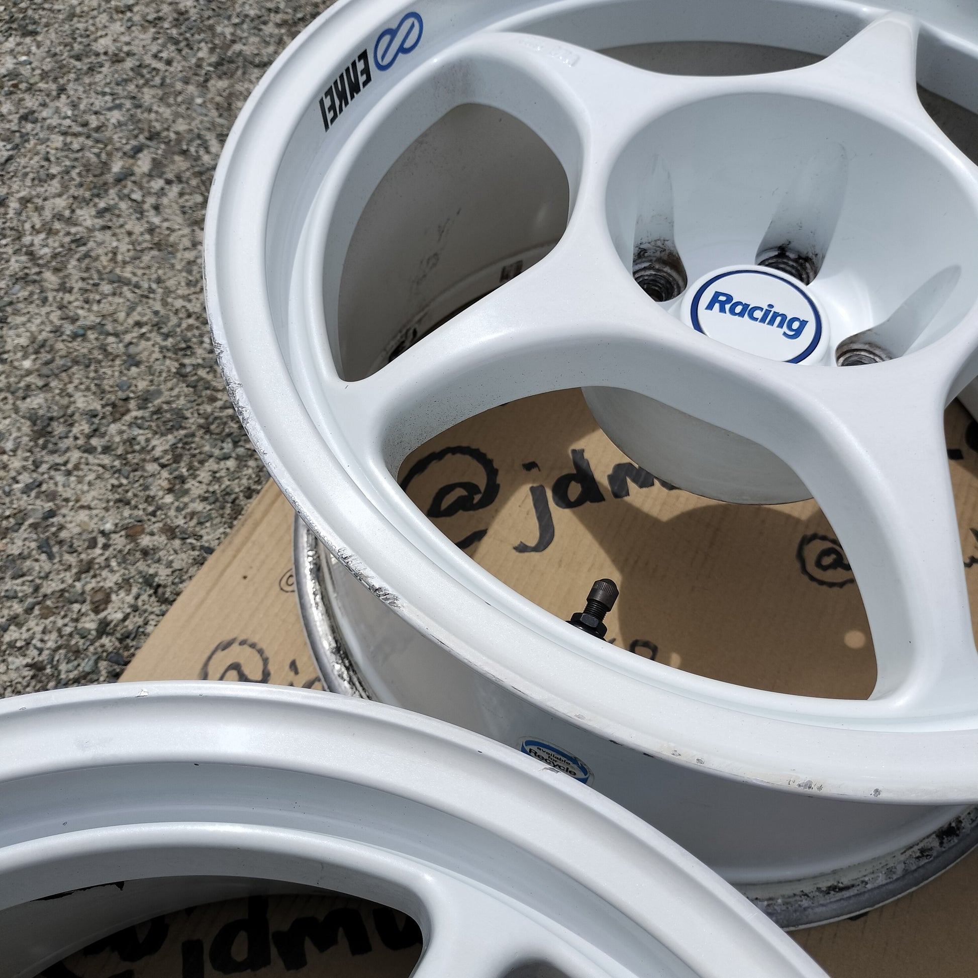 A very clean example of these early era classics in great s-chassis, RX-7, or BNR32 specs! A little fading in the finish, nicks and chips, and some heavy flaking on the inside of one but no heavy rash. Center caps included as well. Great condition to enjoy as is or refinish with minimal work needed. Gotta love the super deep mounting hub on these!