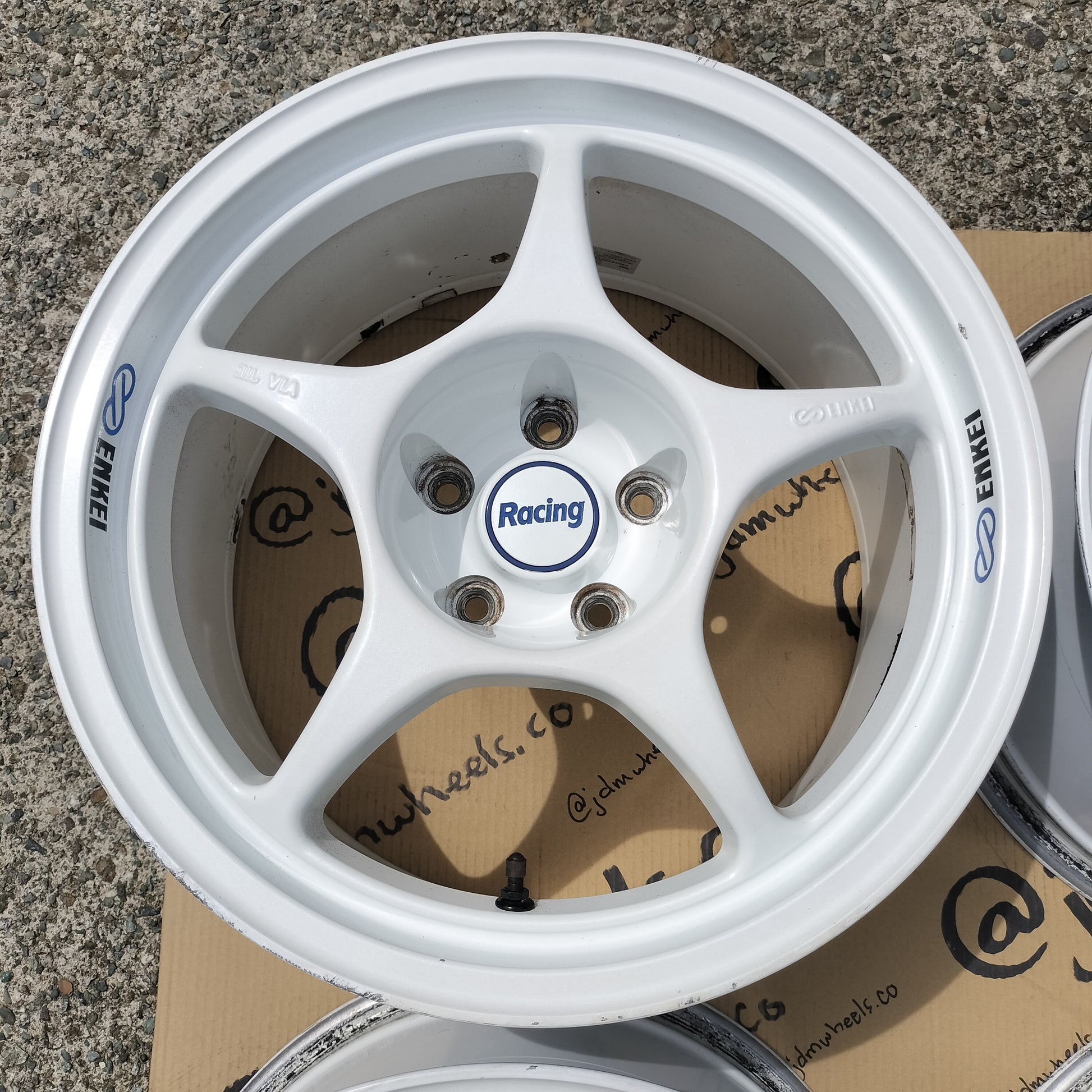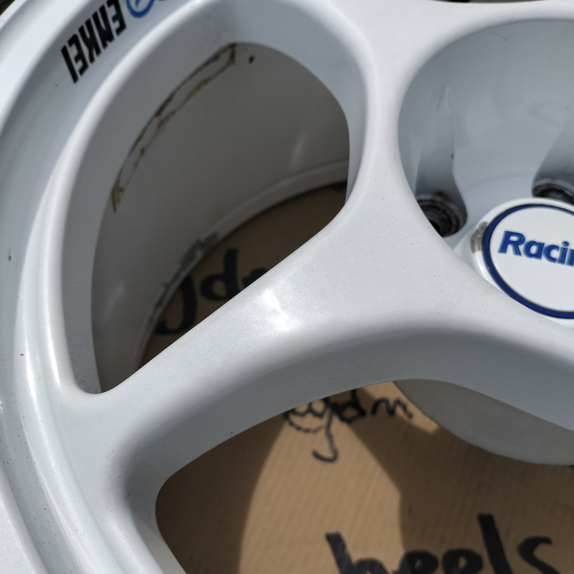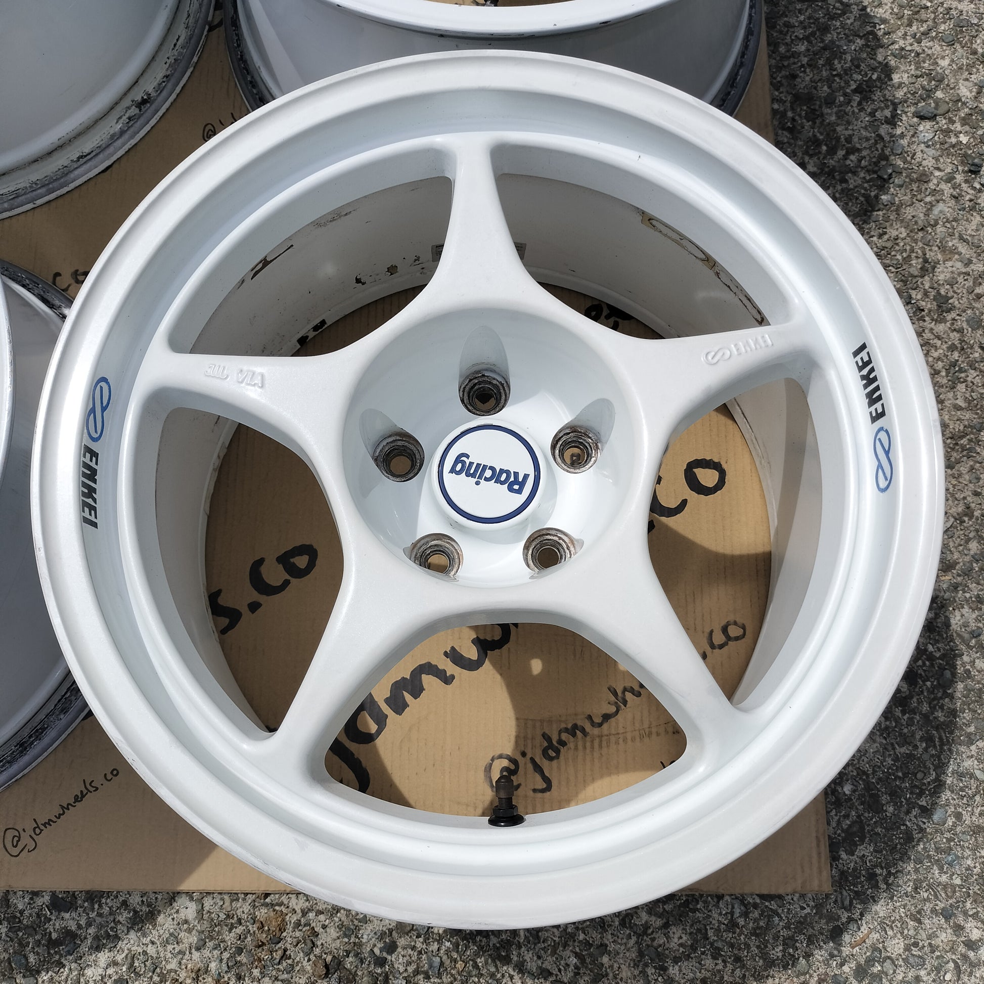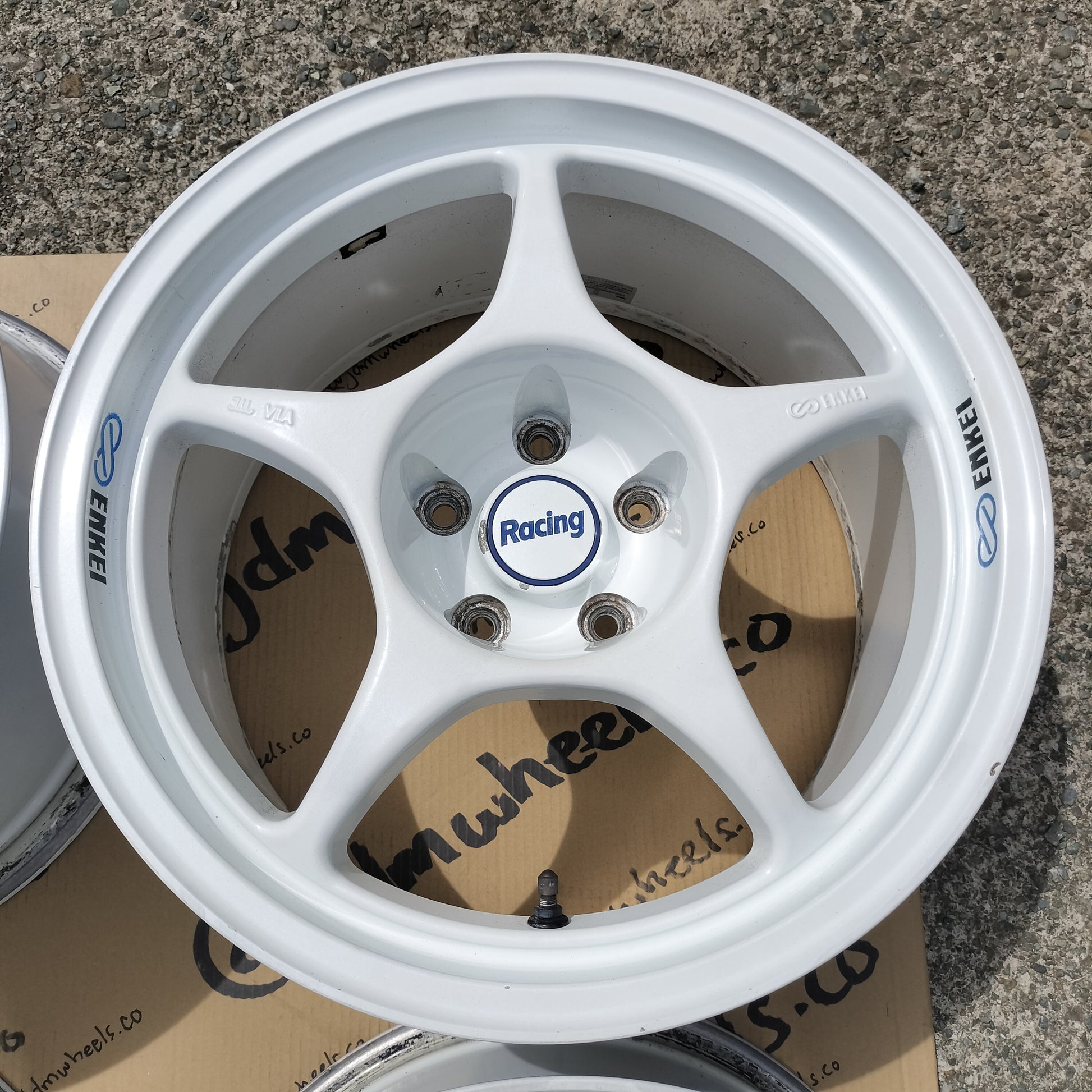 A very clean example of these early era classics in great s-chassis, RX-7, or BNR32 specs! A little fading in the finish, nicks and chips, and some heavy flaking on the inside of one but no heavy rash. Center caps included as well. Great condition to enjoy as is or refinish with minimal work needed. Gotta love the super deep mounting hub on these!