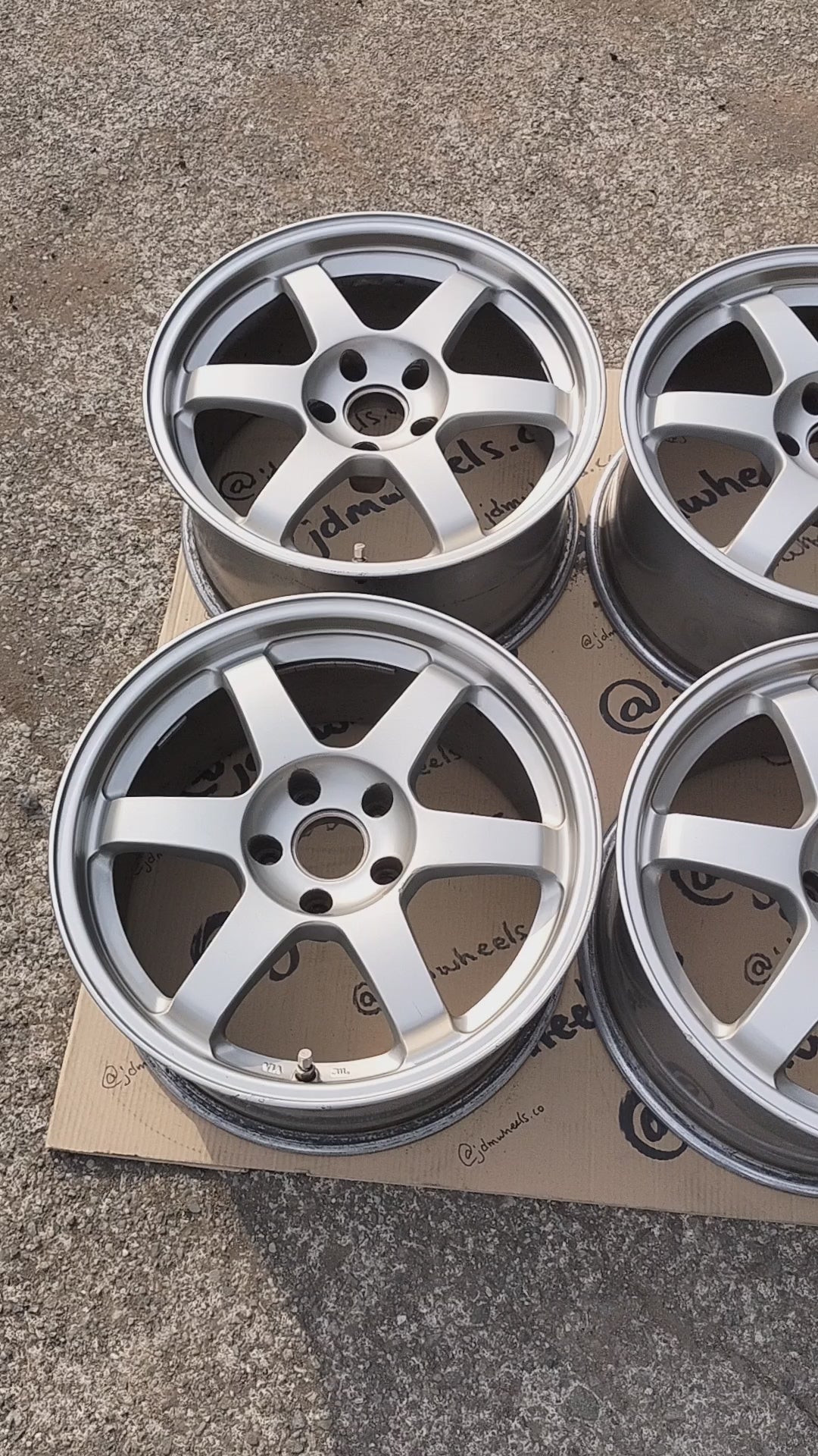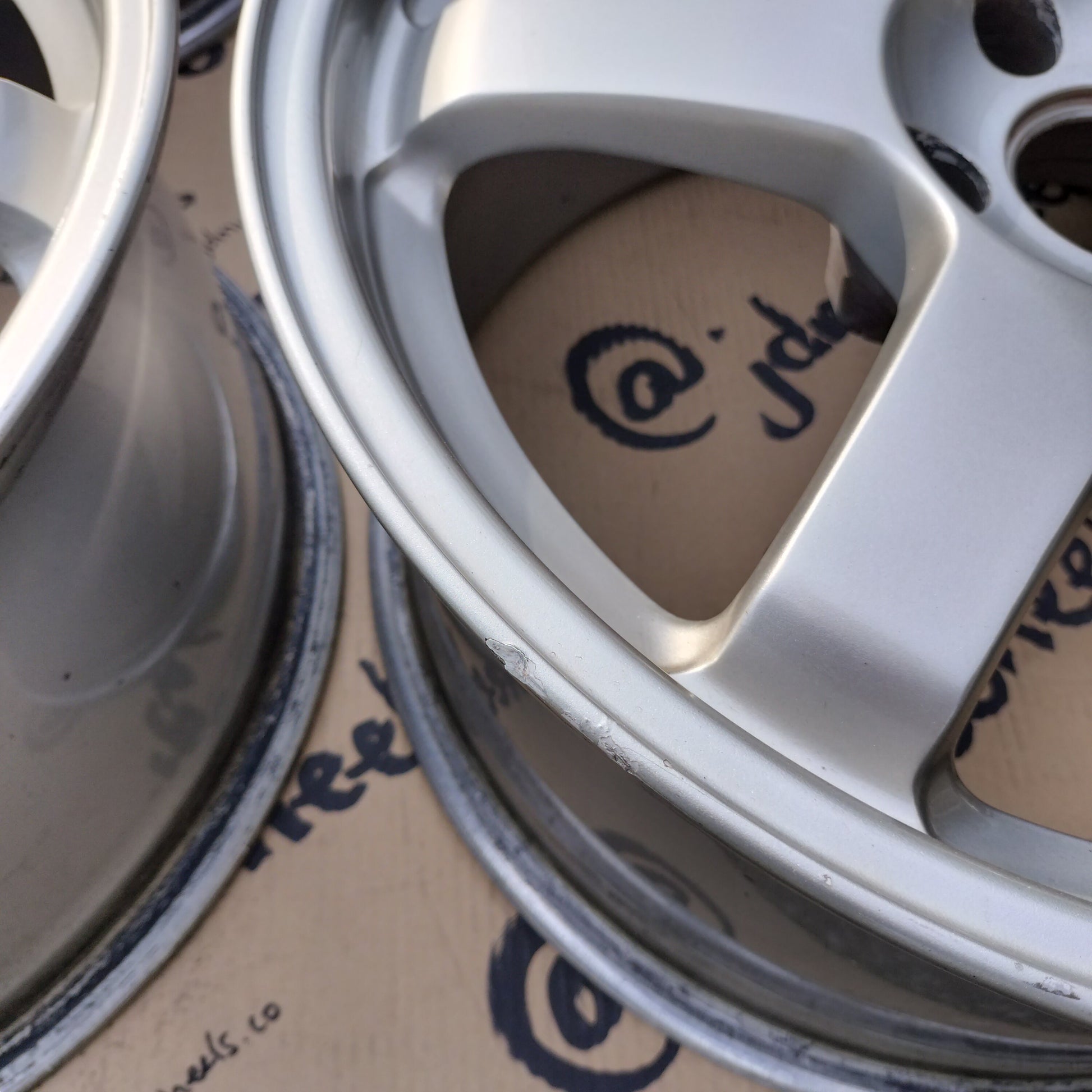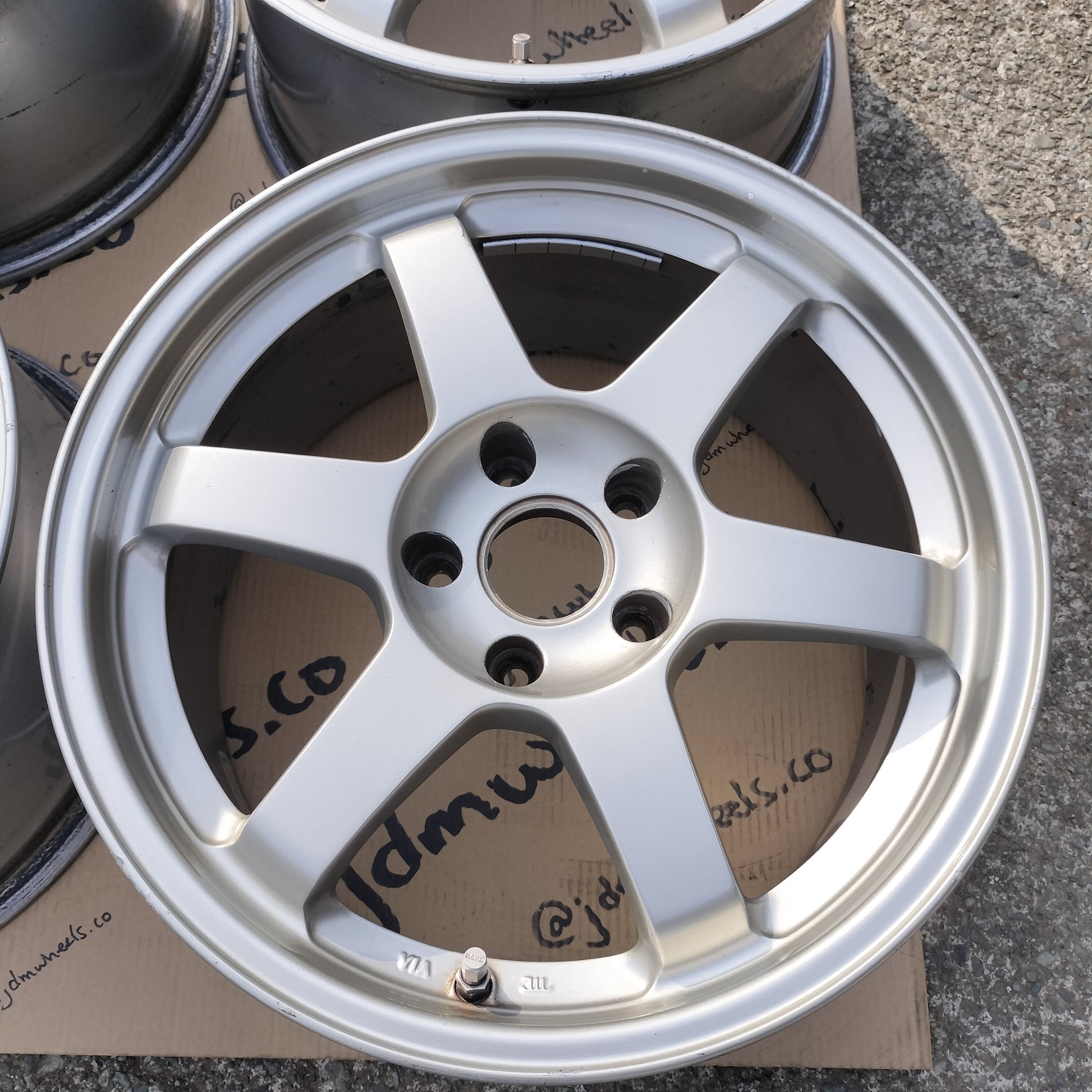 These are technically Rays Volk LE37T which are the same in design and forged construction as TE37's but had a different color variation (dark silver with polished lip). The faces on these have been painted a very similar silver to TE37 silver so they're more or less silver TE's now. Just want to be clear about that.