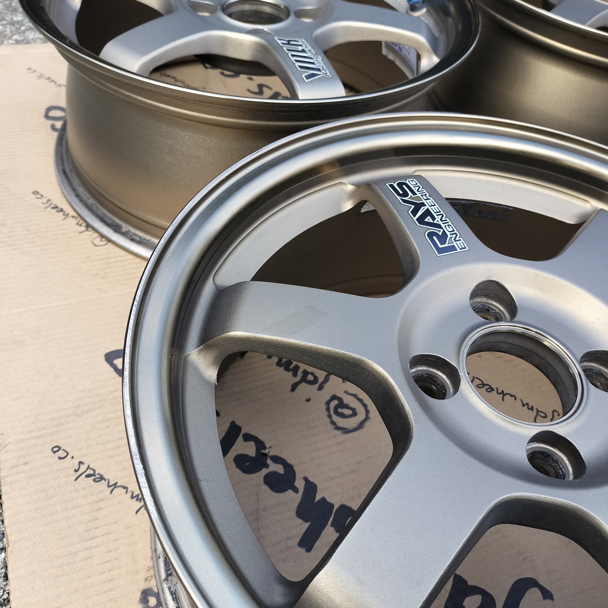 All four have OG blue valve stems with OG RAYS logo valve caps. The caps in good condition - let alone being present - are rarity these days.