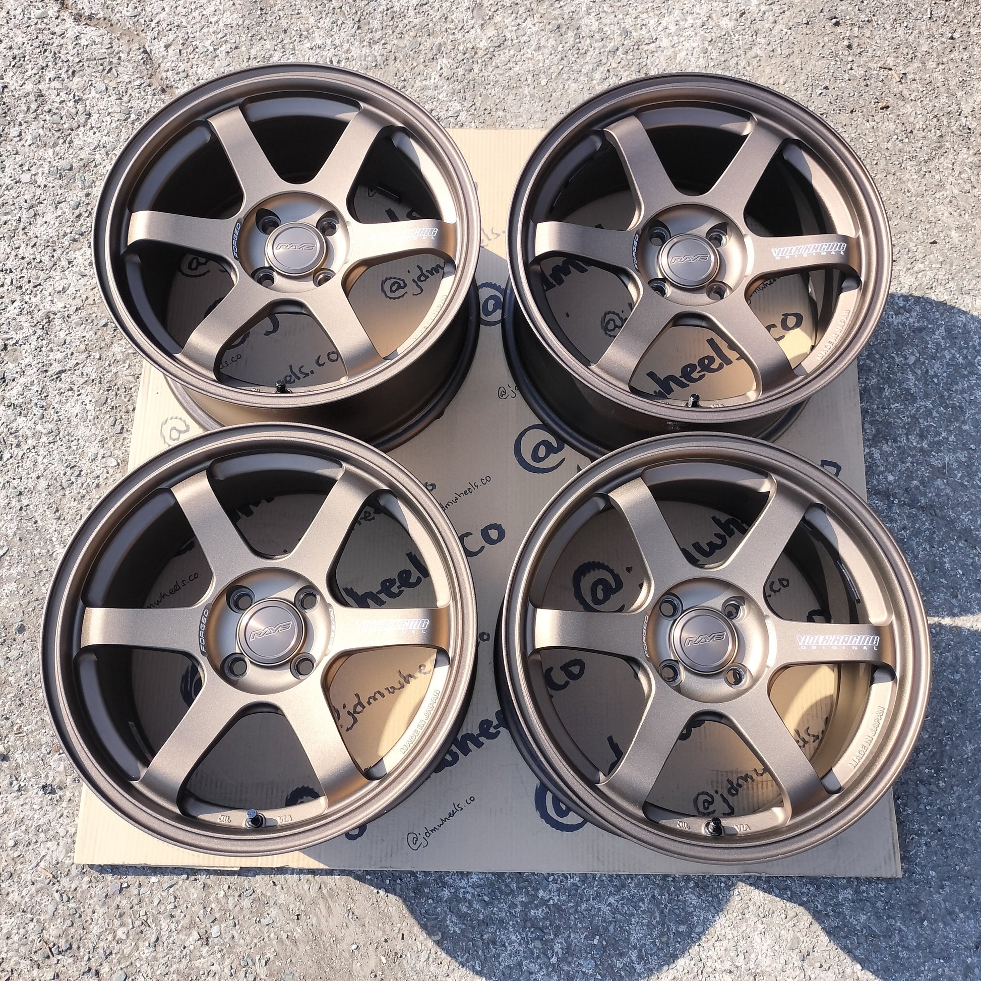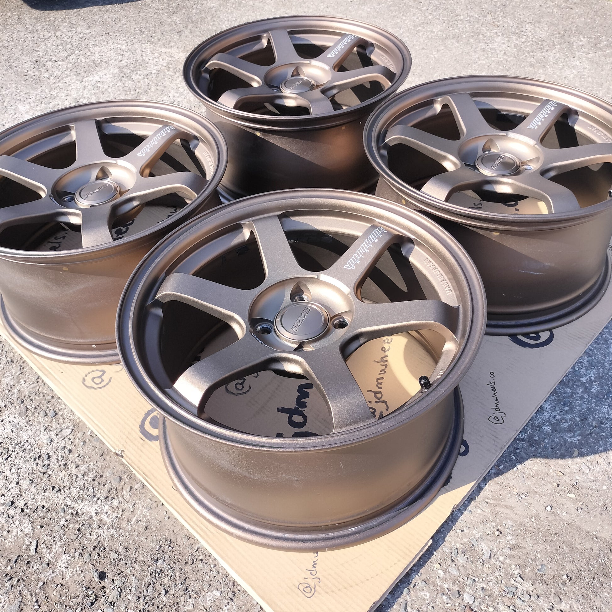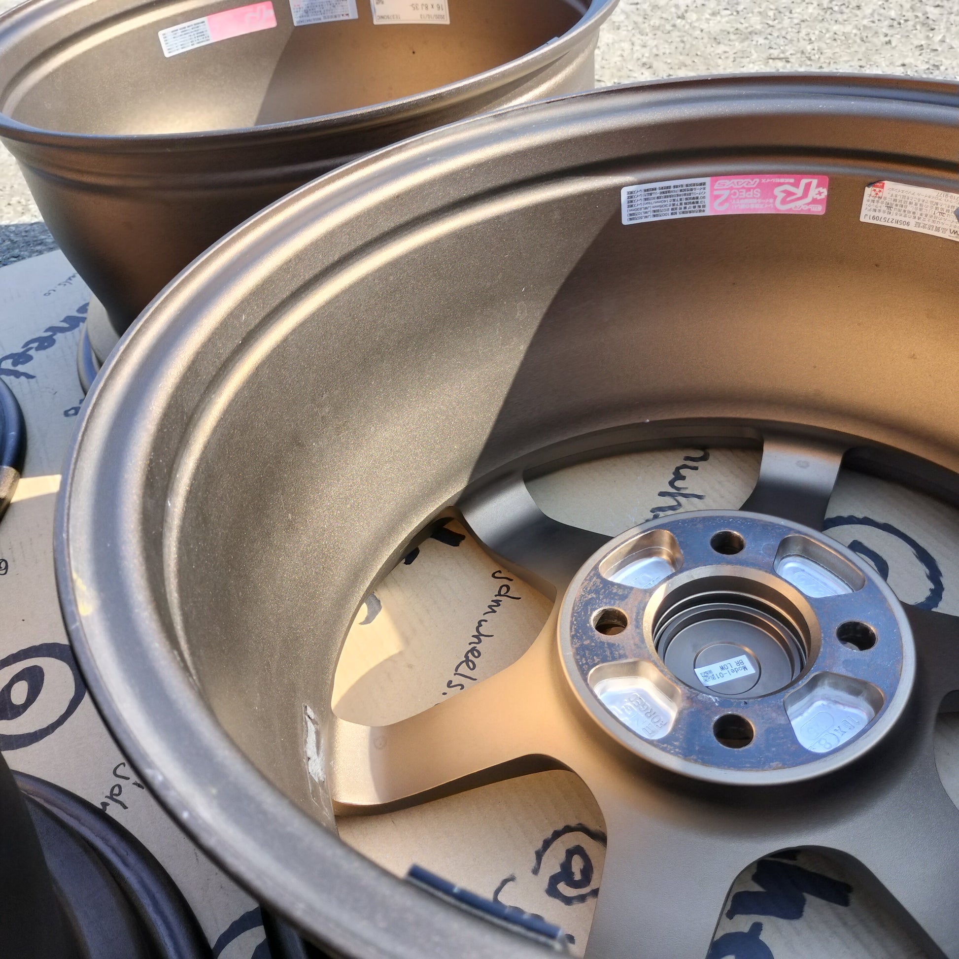 ZERO rash!! Someone took good care of these and it shows. RAYS center caps included - these were a ¥28,600 option! When sets are this mint, there's less talk about but, to be really nit-picky, there are some discolored spots on the inner barrels (see pictures). Otherwise normal signs of use as they're a couple years old.