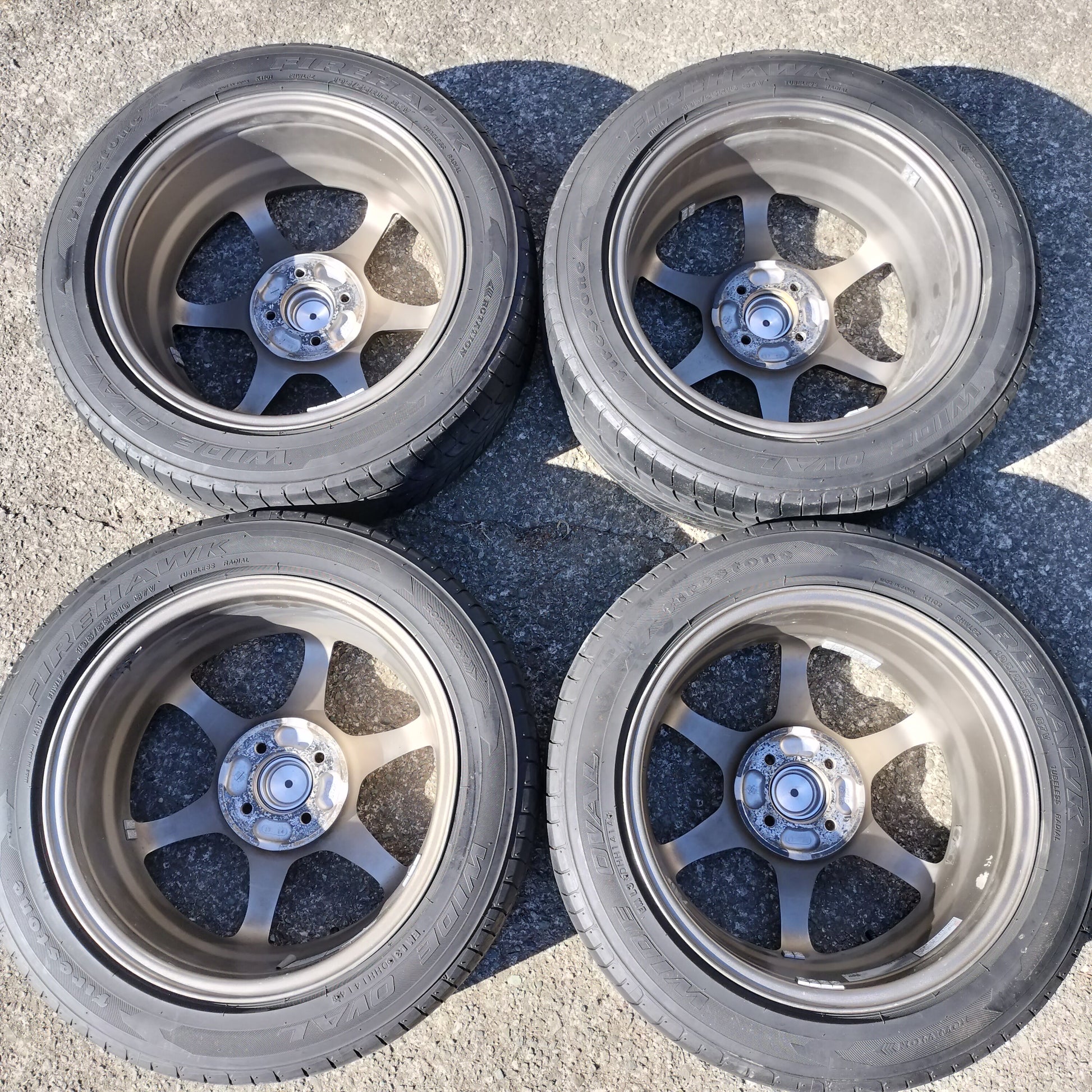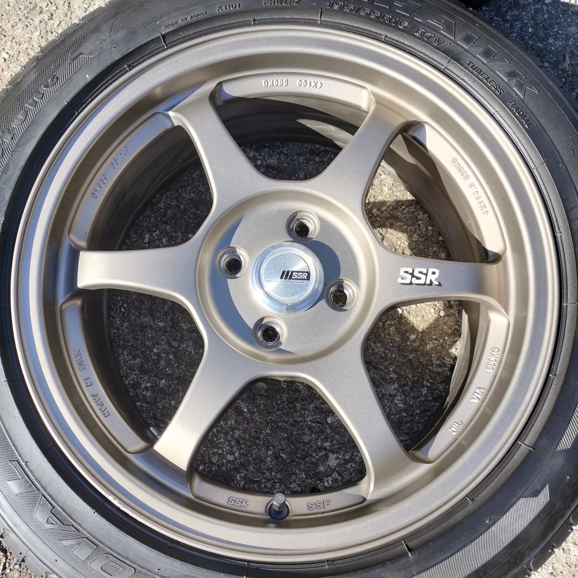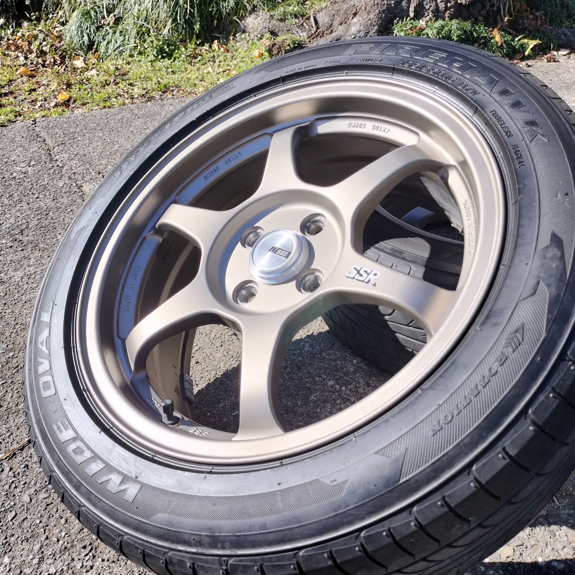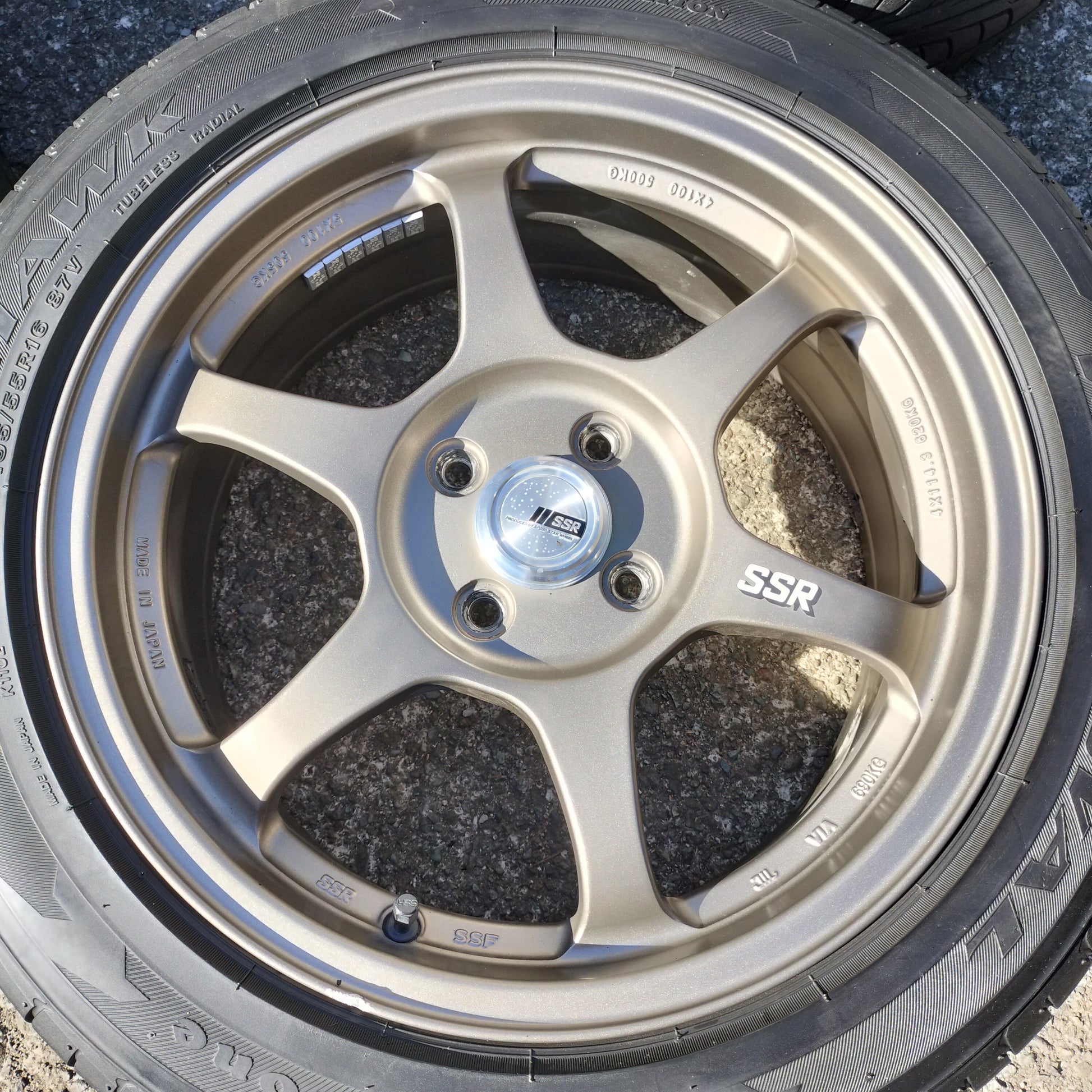 You have to handle these to believe how light they are! Totally impressed with this set of Type C's in terms of weight, quality, and looks. The bronze is classy and they're in quite good condition overall. There are a couple small dings pictured and a couple areas where it looks like a tire changer has rubbed the lips lightly. Center caps are included (which is a bit of a rarity for these) and the finish is in great shape!