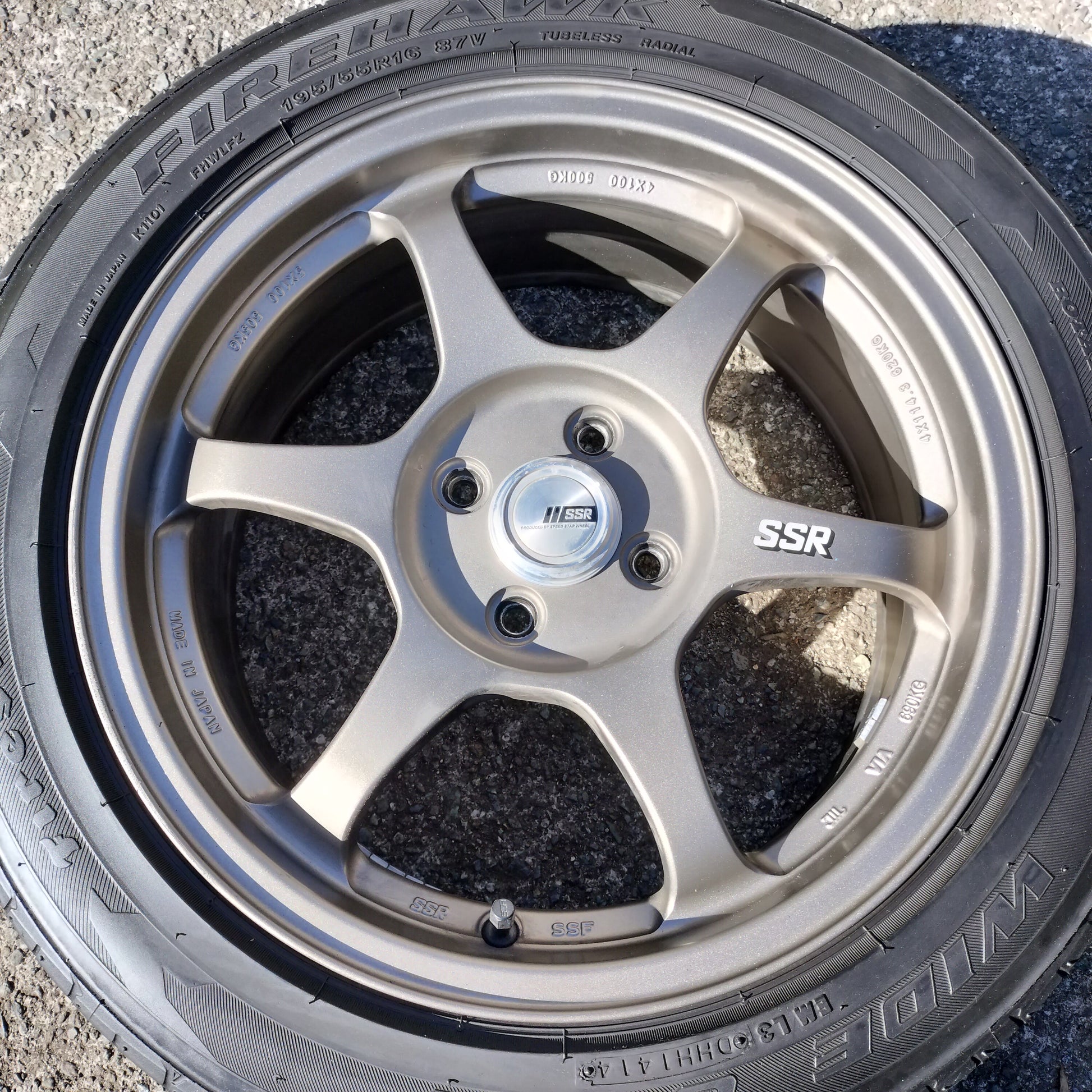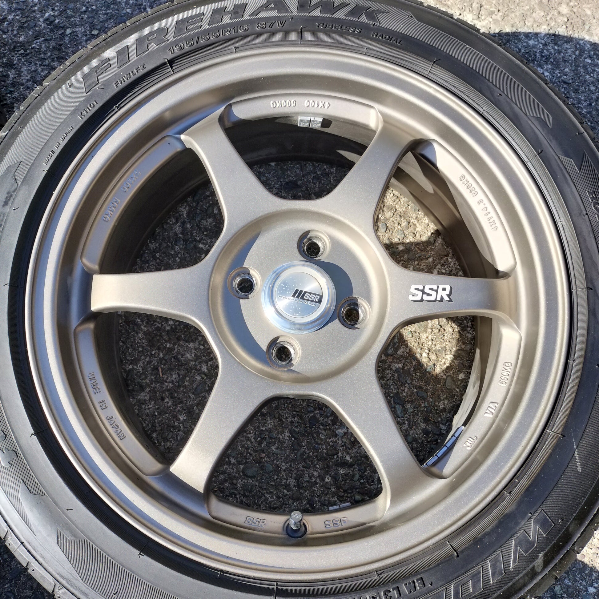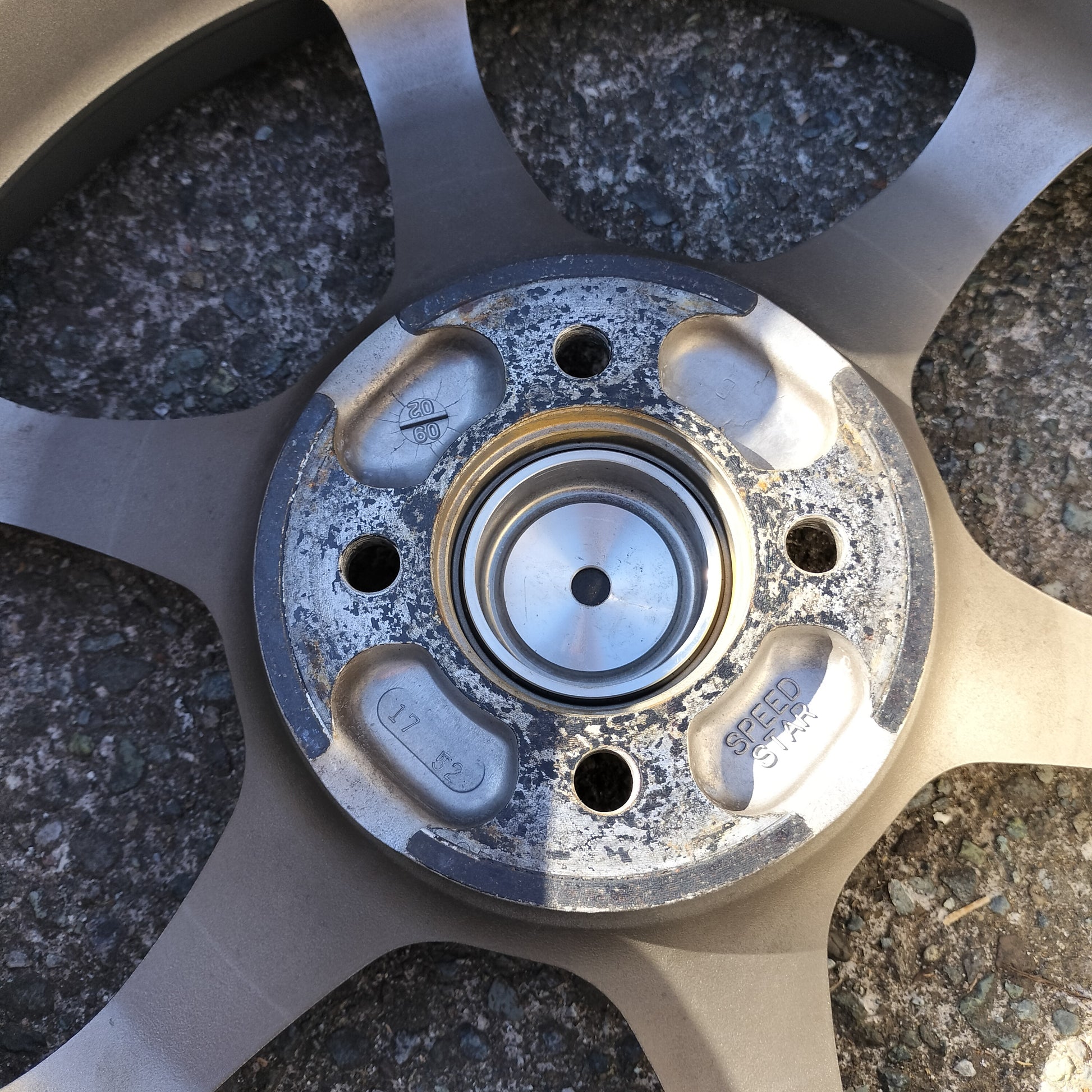 You have to handle these to believe how light they are! Totally impressed with this set of Type C's in terms of weight, quality, and looks. The bronze is classy and they're in quite good condition overall. There are a couple small dings pictured and a couple areas where it looks like a tire changer has rubbed the lips lightly. Center caps are included (which is a bit of a rarity for these) and the finish is in great shape!