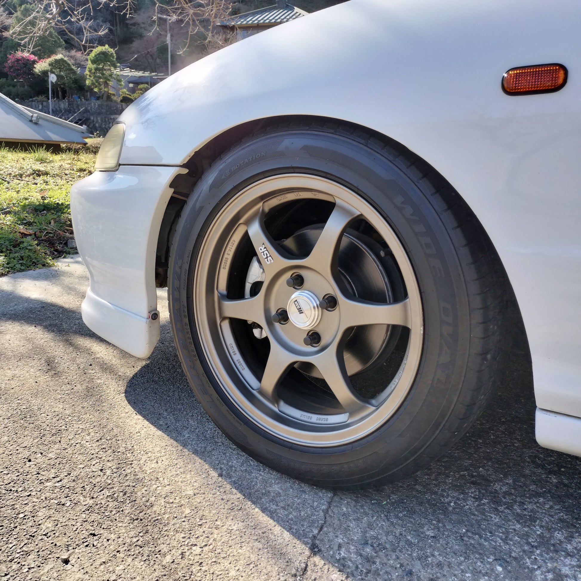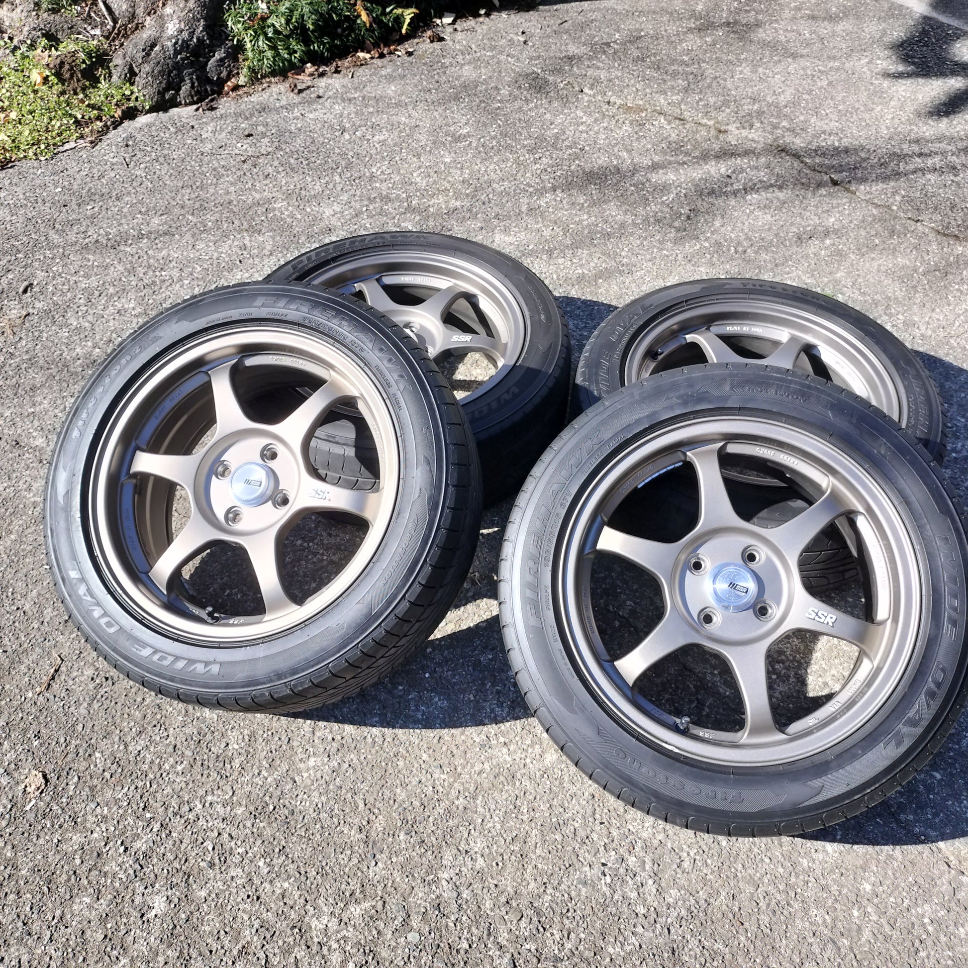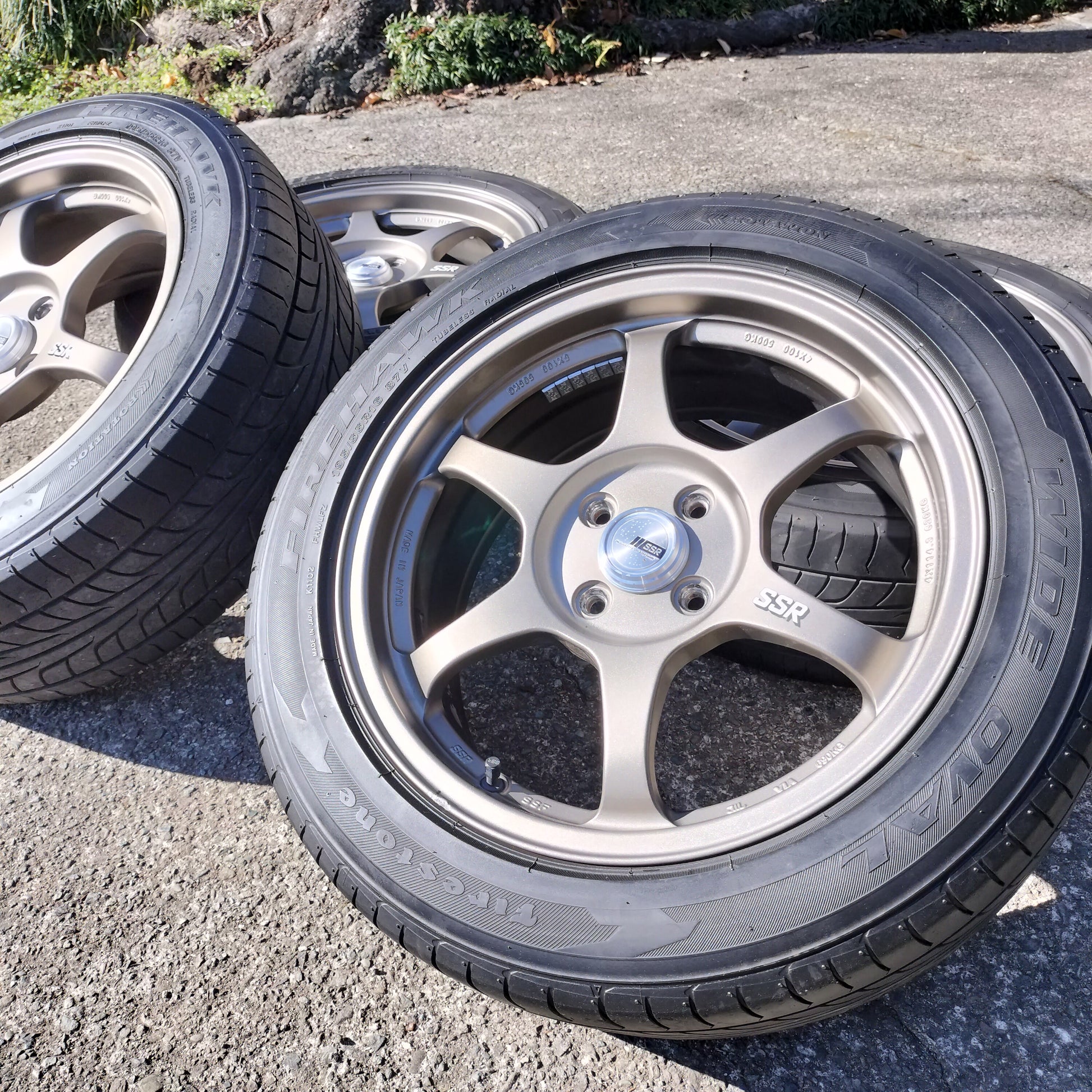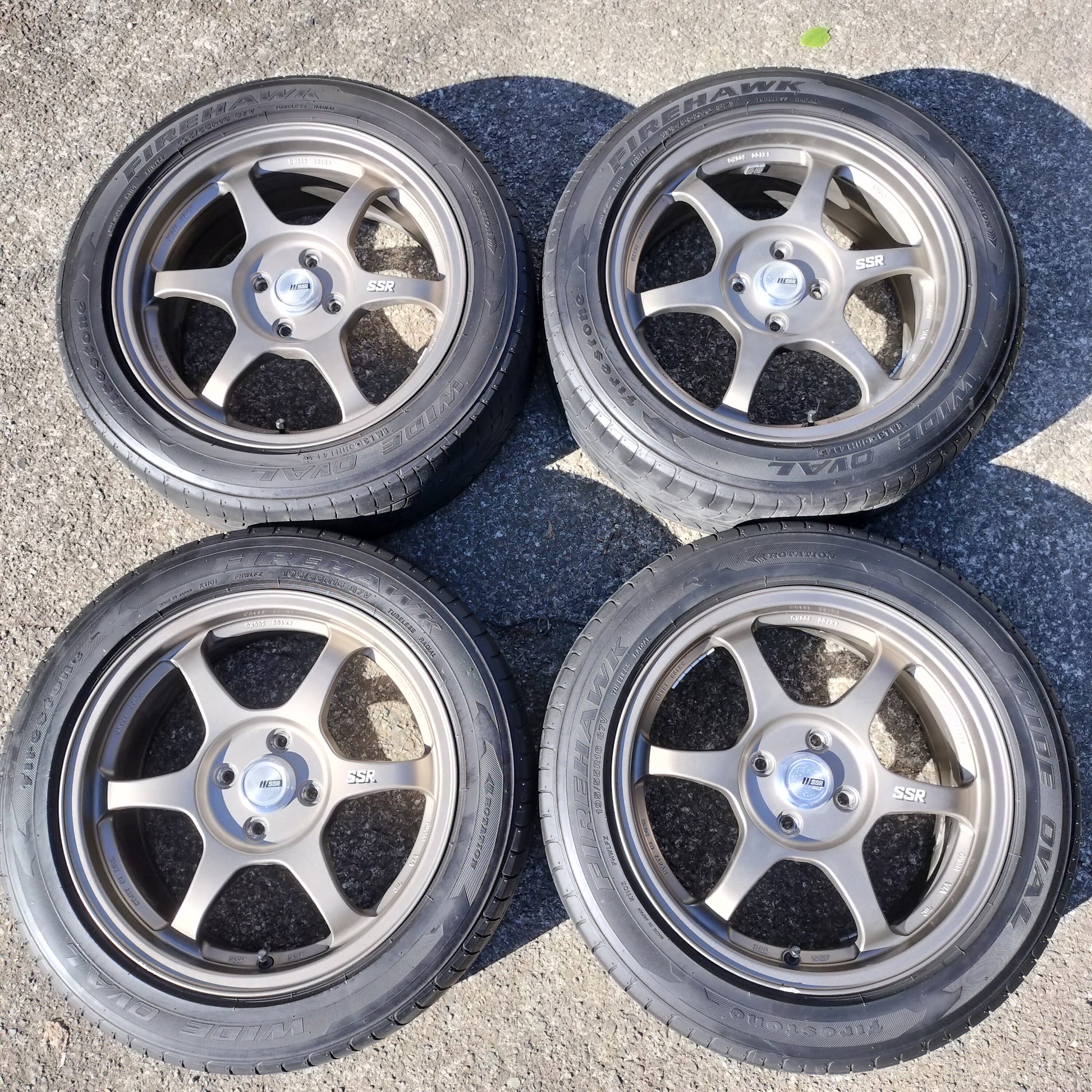 You have to handle these to believe how light they are! Totally impressed with this set of Type C's in terms of weight, quality, and looks. The bronze is classy and they're in quite good condition overall. There are a couple small dings pictured and a couple areas where it looks like a tire changer has rubbed the lips lightly. Center caps are included (which is a bit of a rarity for these) and the finish is in great shape!