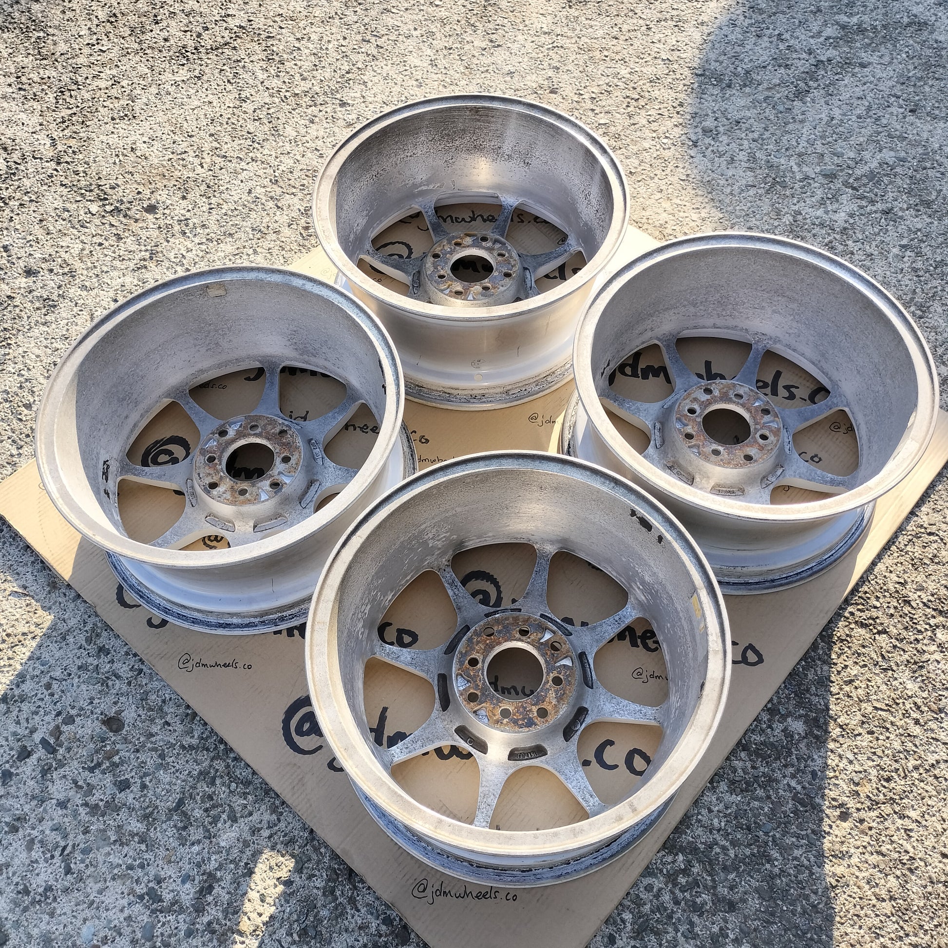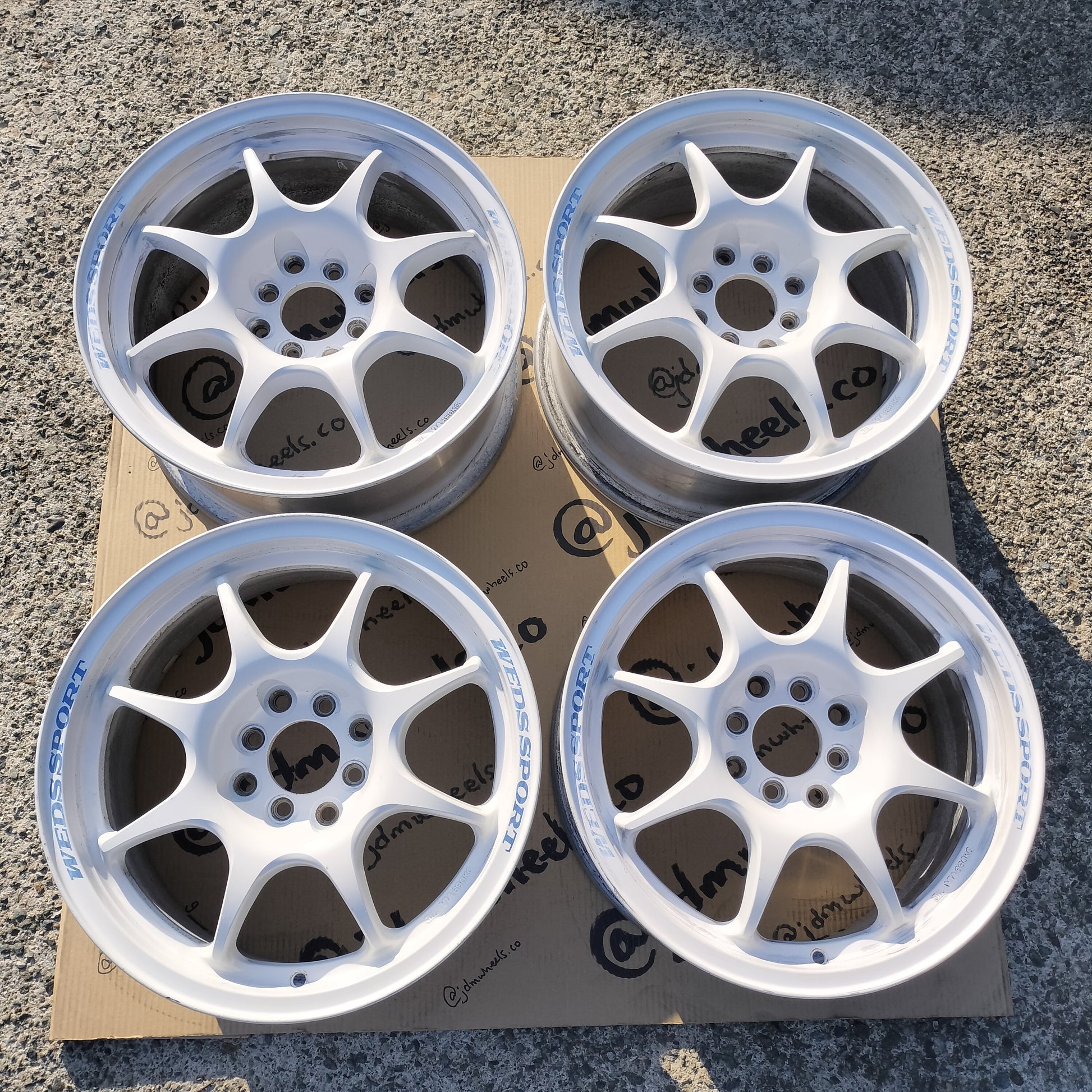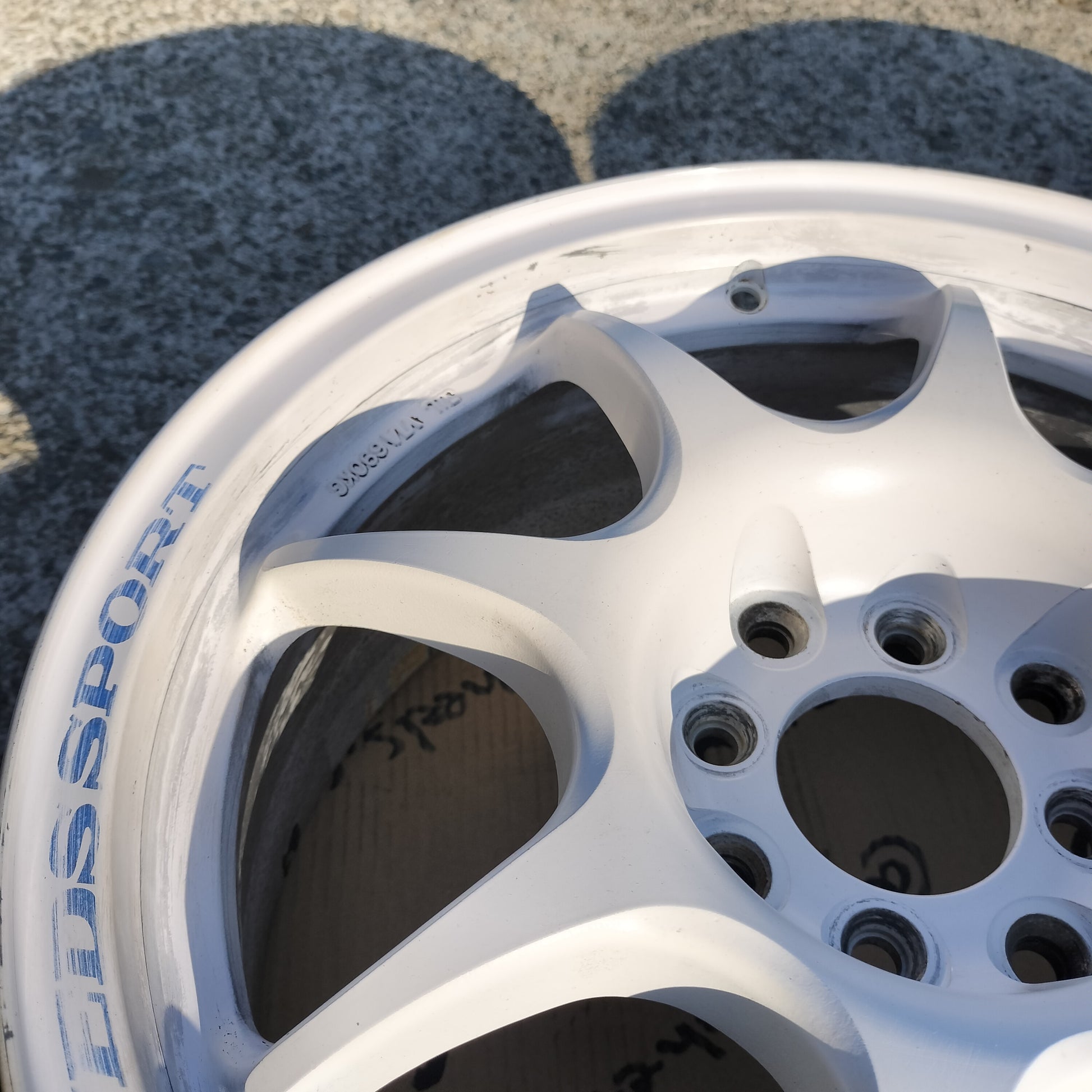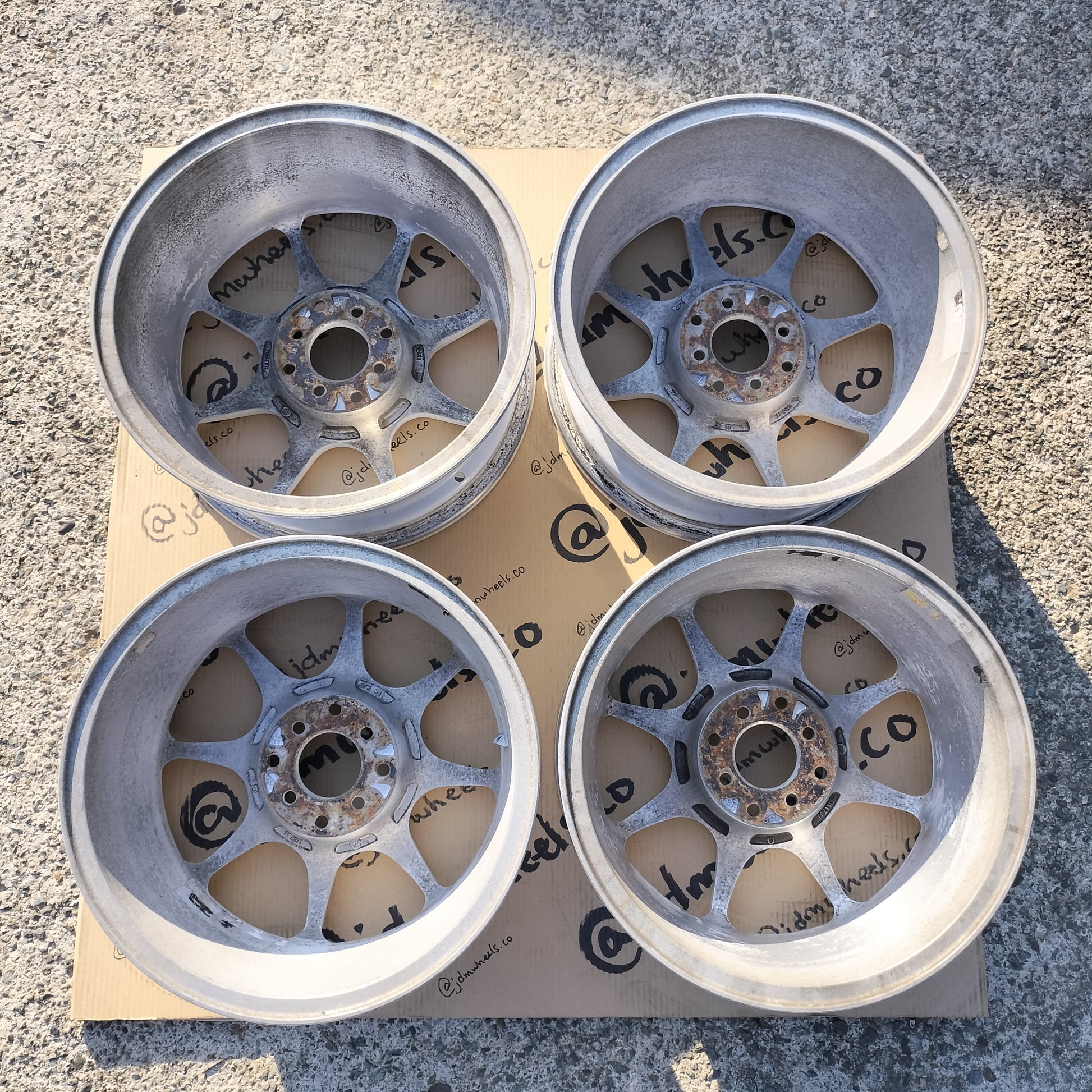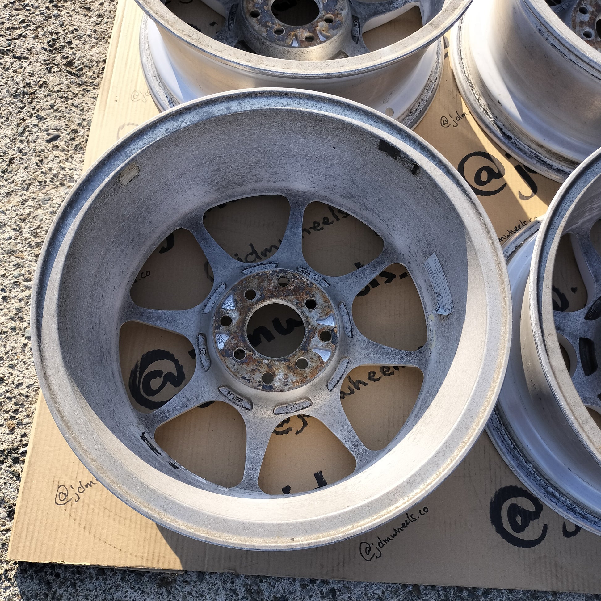 I've been after a set of TC-05's for a while and these really checked all the boxes - perfect Honda specs and great condition all things considered. From the factory, Weds uses a really thin paint coating and as you can see it has worn off in a lot of places. That said, there's basically zero rash which is what I'm always looking for. These just have one spot of being lightly grazed/scuffed - I'm a bit hesitant to call if rash but please check the enlarged pictures to get an idea of condition.