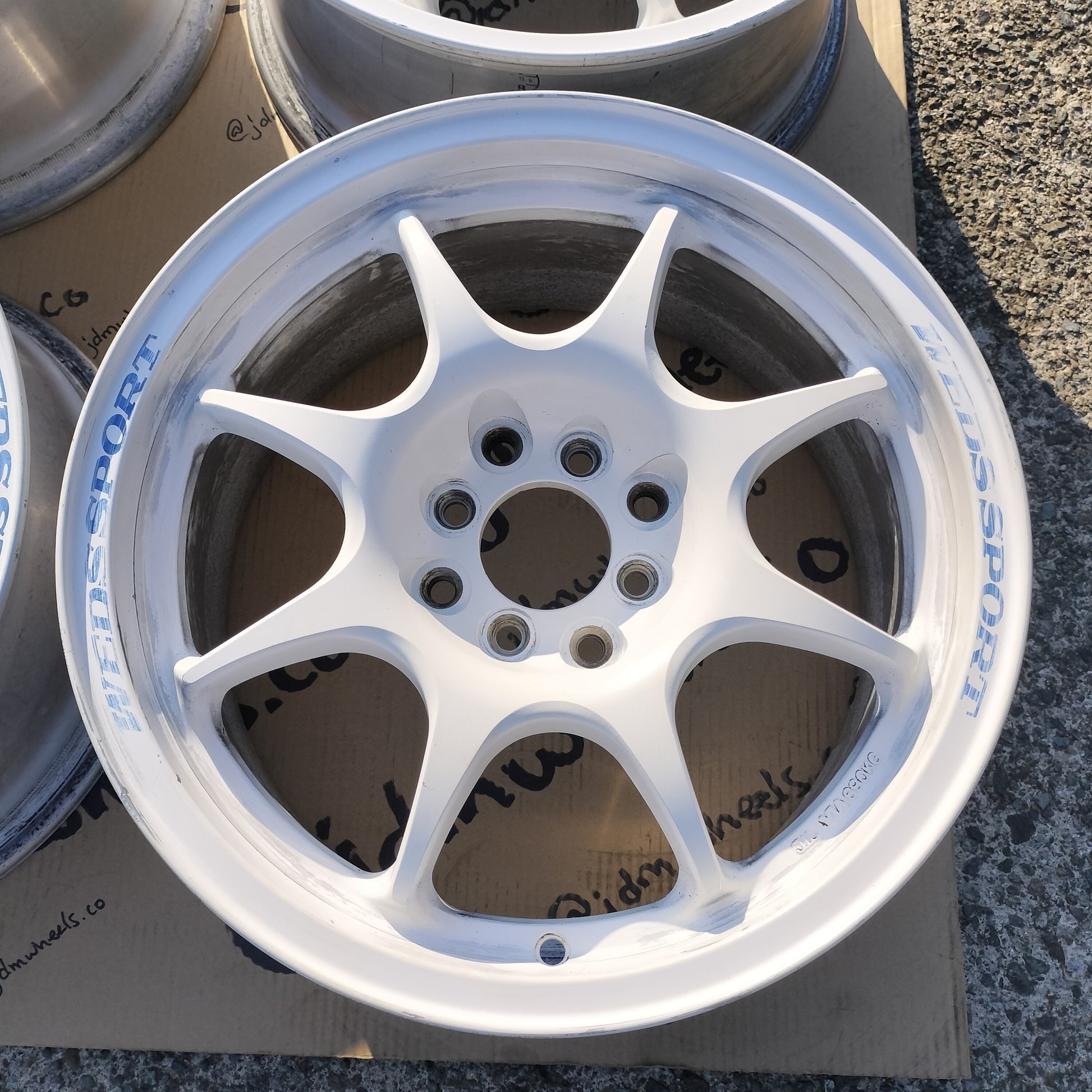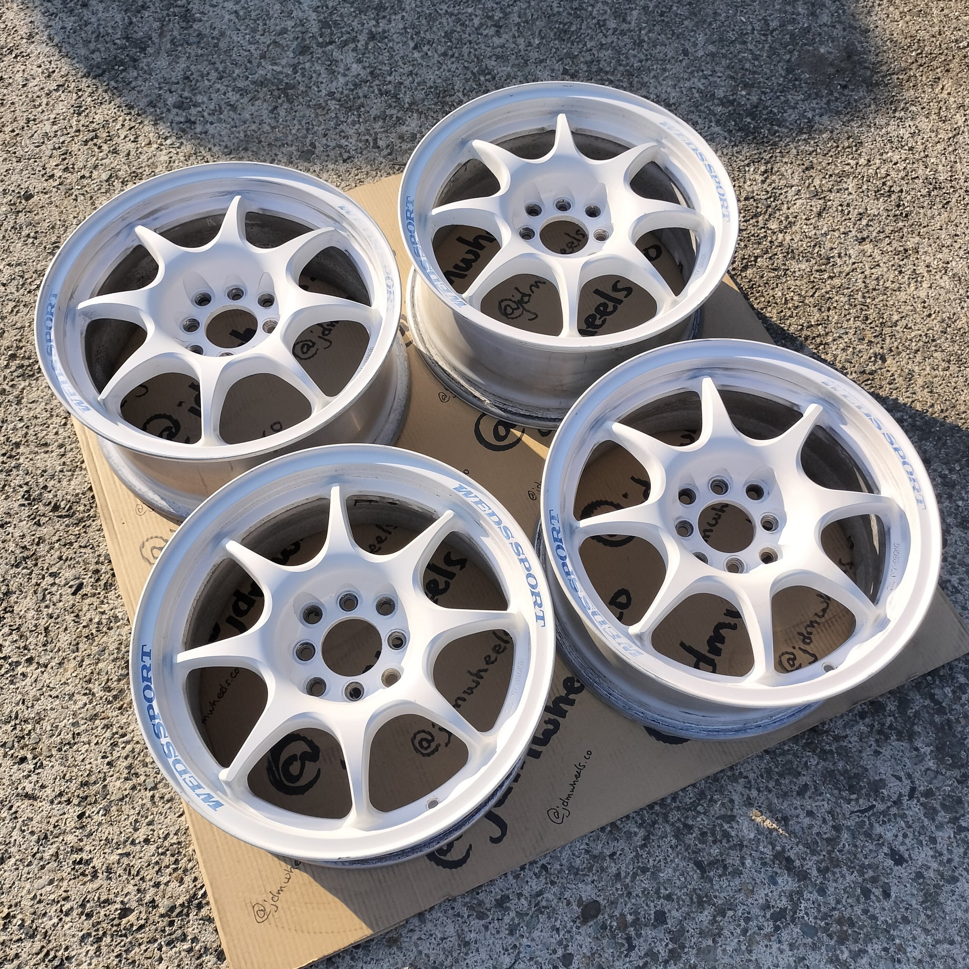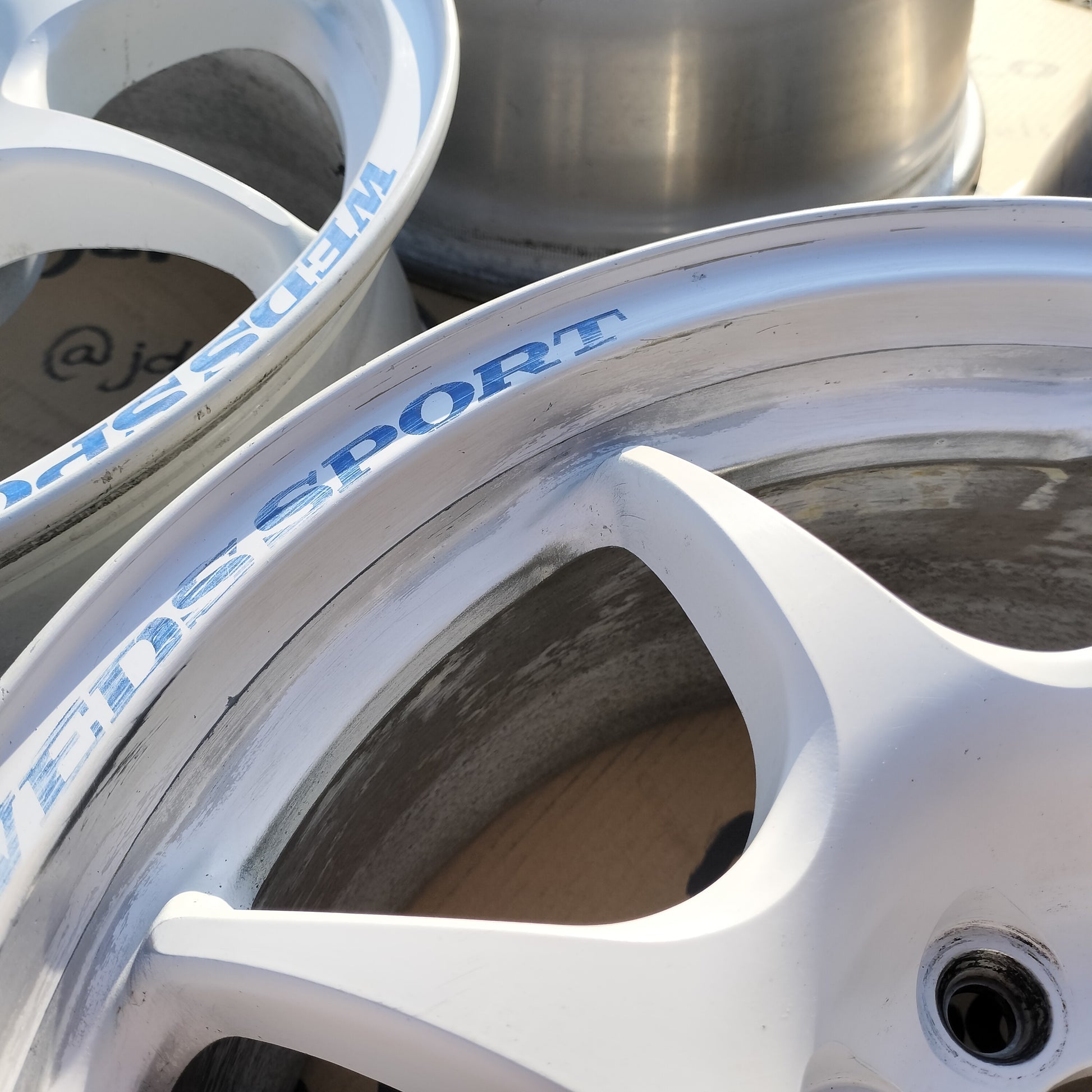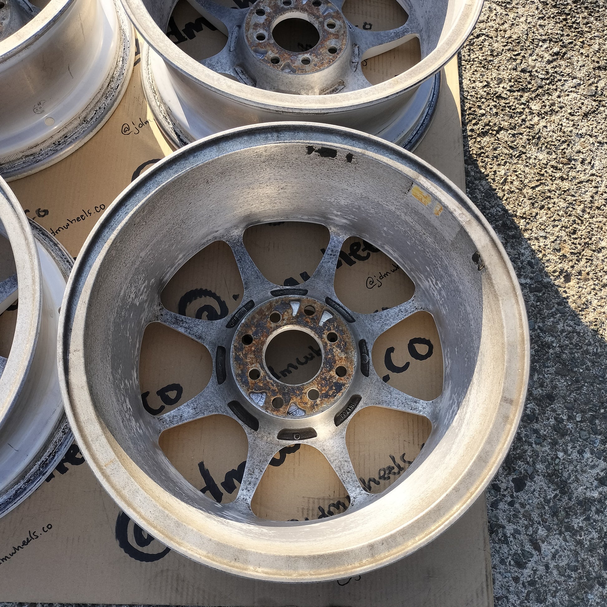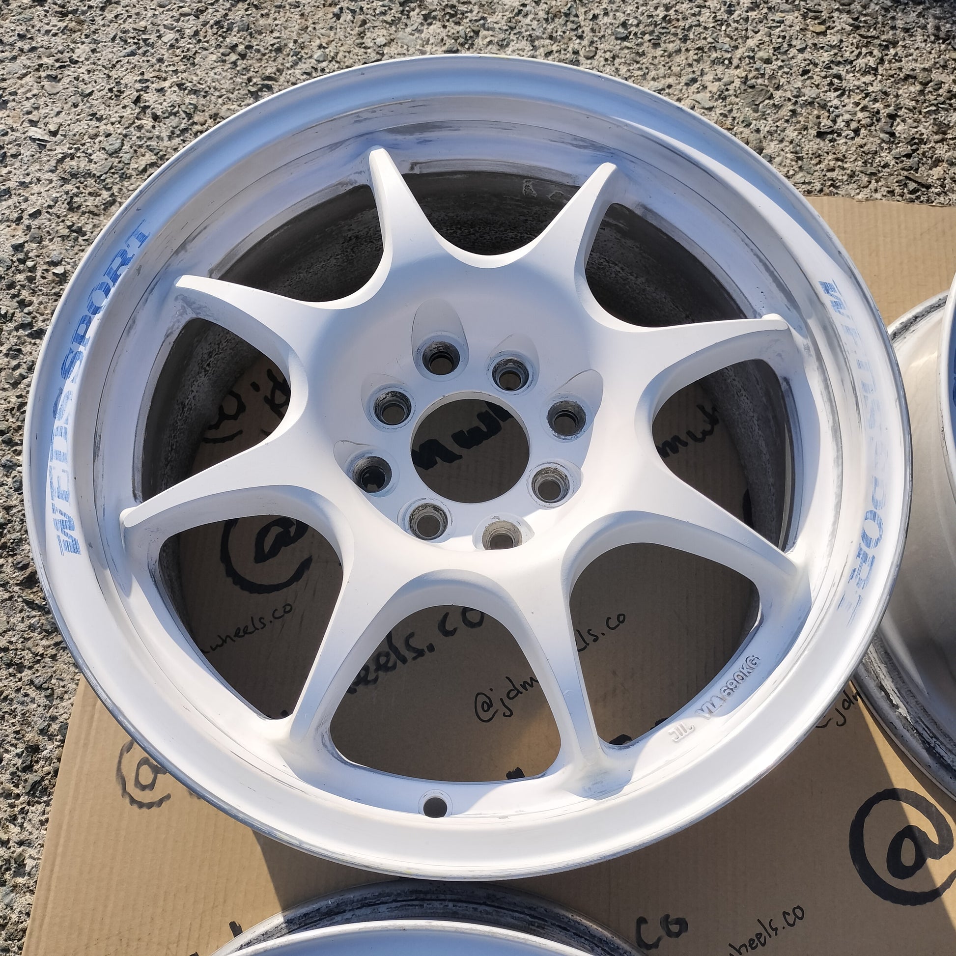 I've been after a set of TC-05's for a while and these really checked all the boxes - perfect Honda specs and great condition all things considered. From the factory, Weds uses a really thin paint coating and as you can see it has worn off in a lot of places. That said, there's basically zero rash which is what I'm always looking for. These just have one spot of being lightly grazed/scuffed - I'm a bit hesitant to call if rash but please check the enlarged pictures to get an idea of condition.