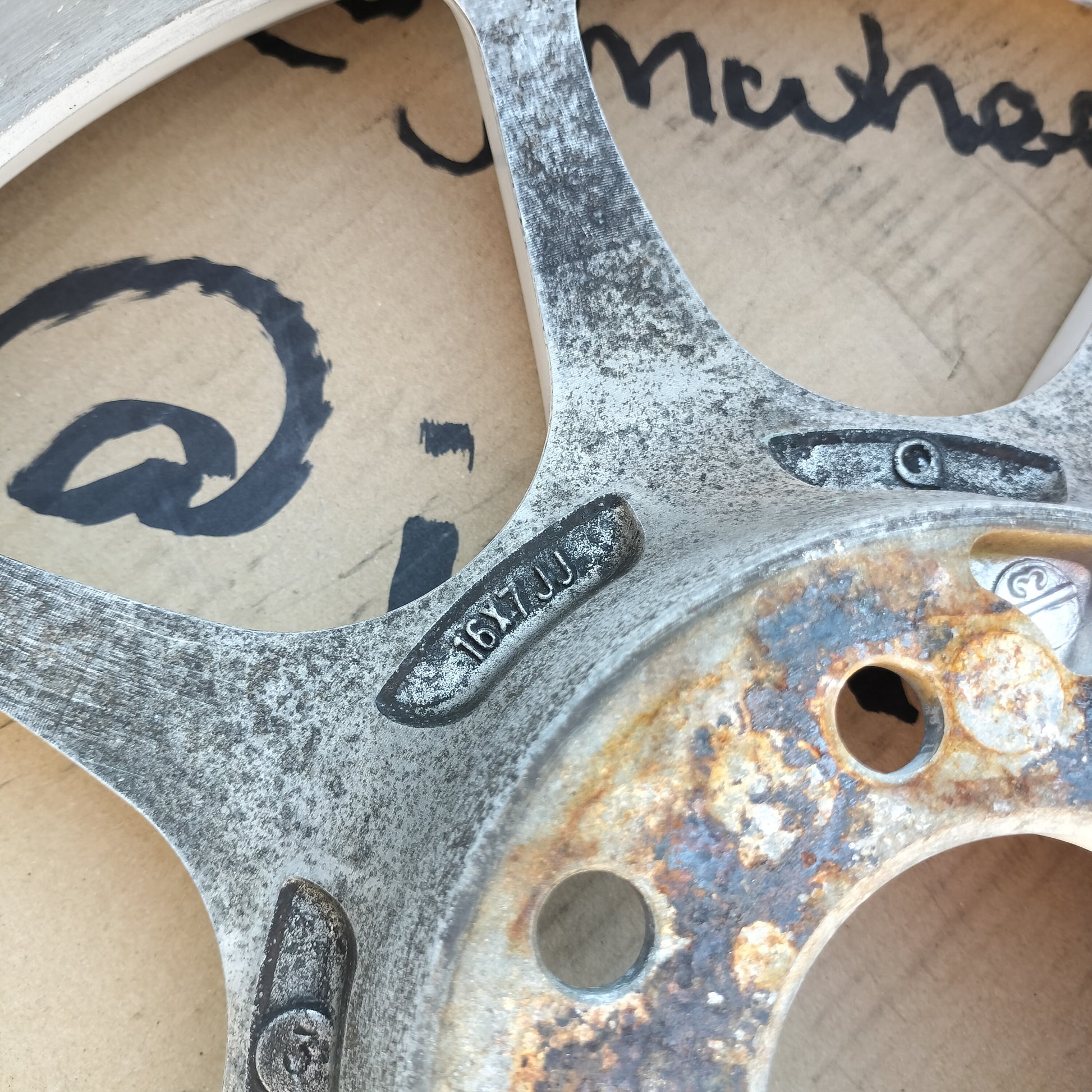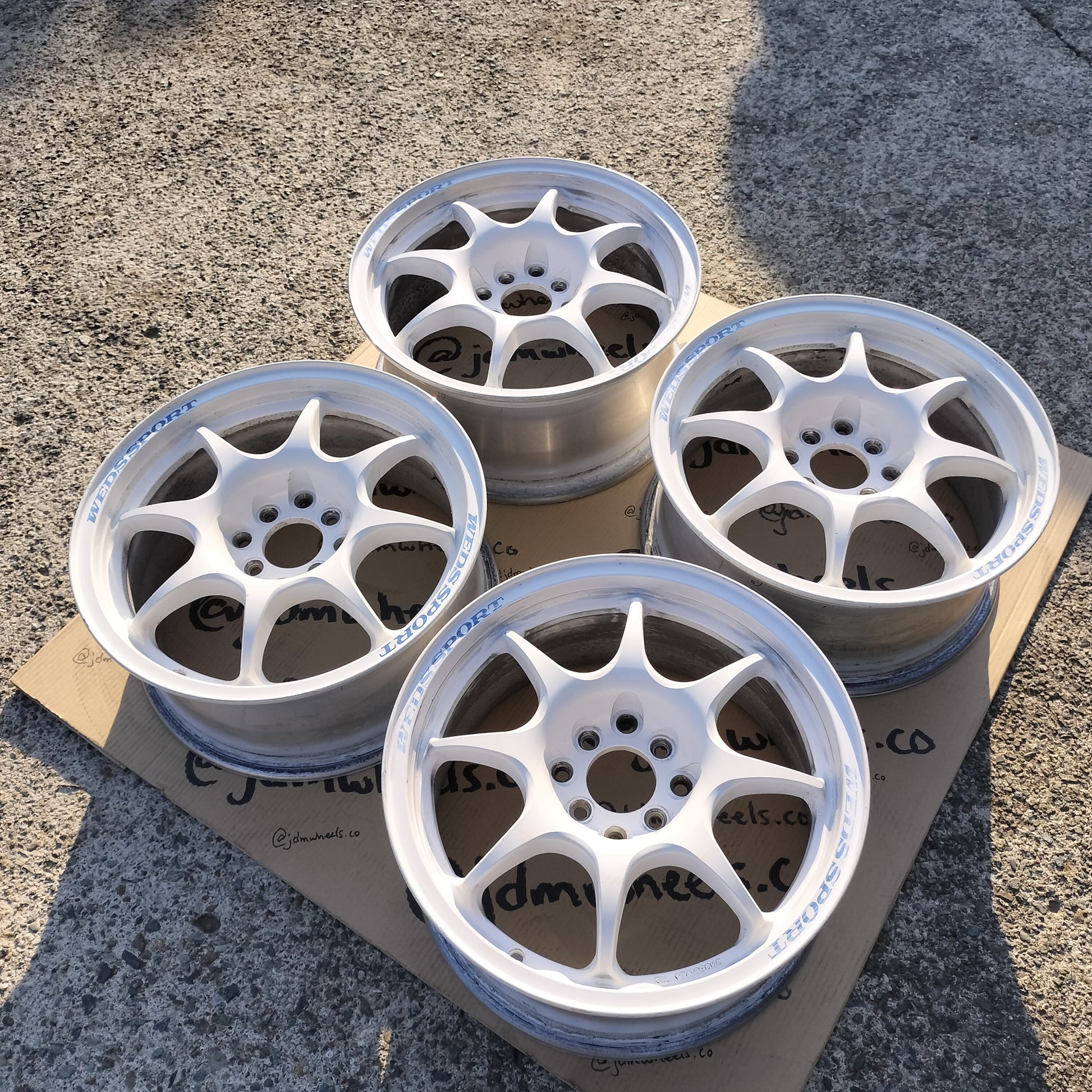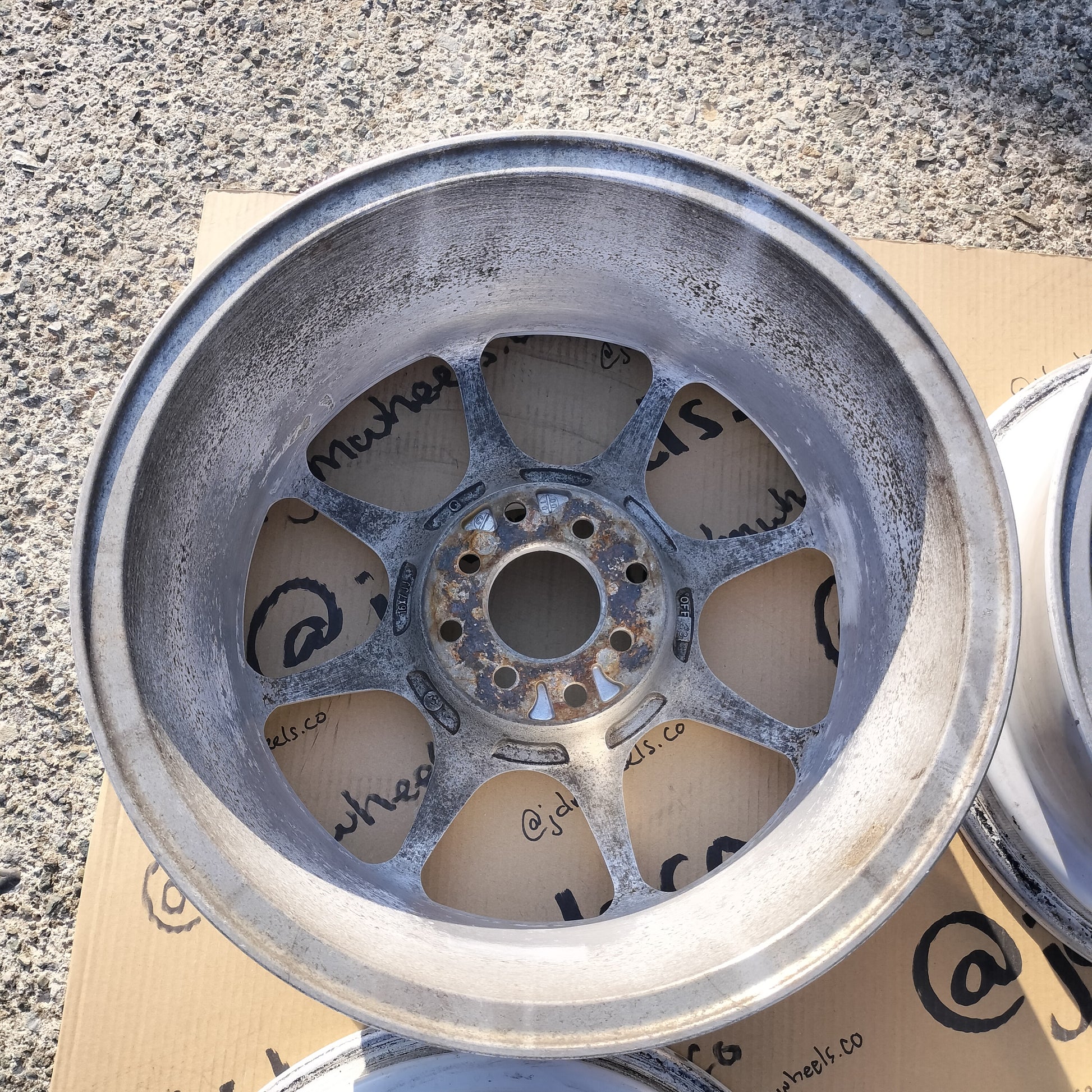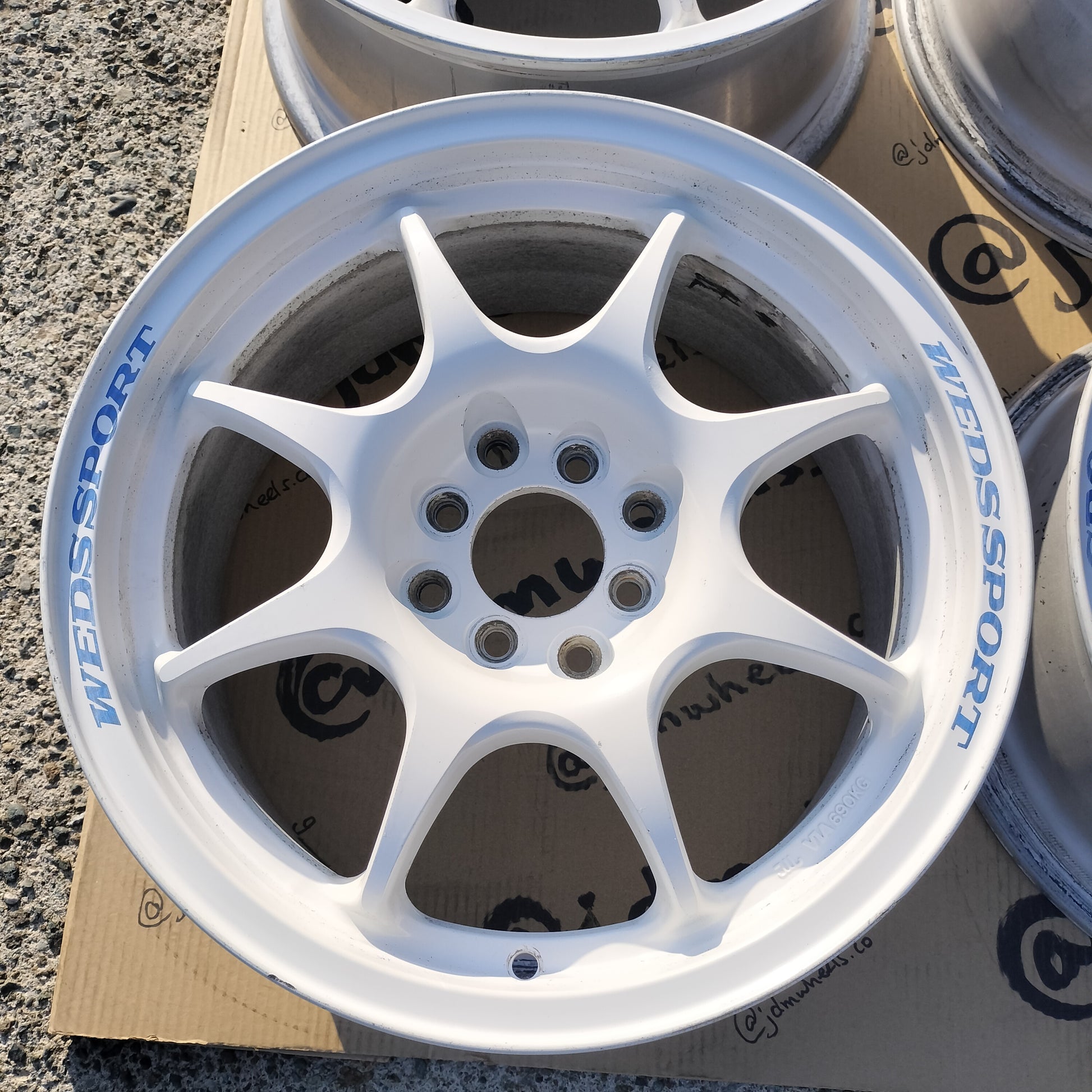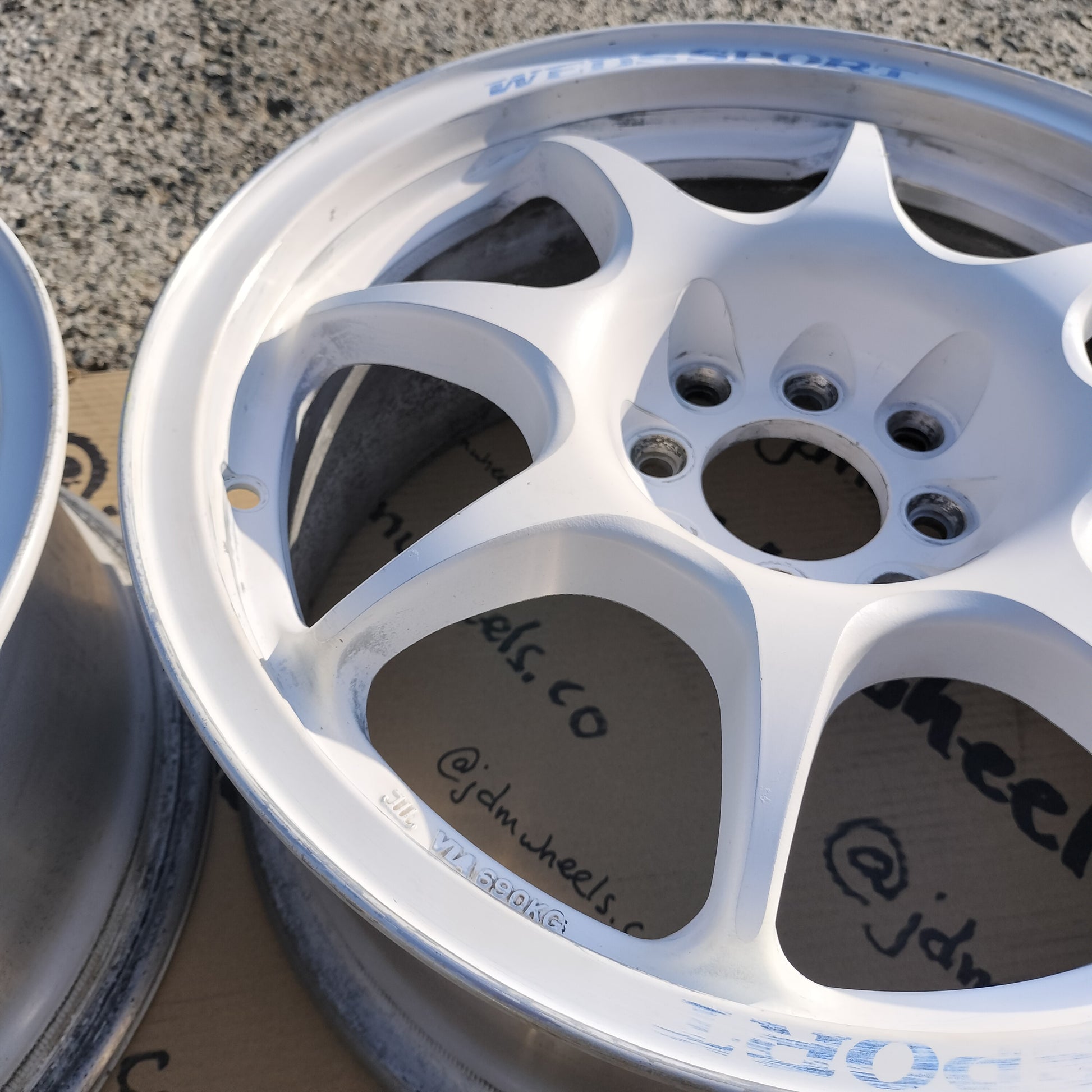 I've been after a set of TC-05's for a while and these really checked all the boxes - perfect Honda specs and great condition all things considered. From the factory, Weds uses a really thin paint coating and as you can see it has worn off in a lot of places. That said, there's basically zero rash which is what I'm always looking for. These just have one spot of being lightly grazed/scuffed - I'm a bit hesitant to call if rash but please check the enlarged pictures to get an idea of condition.