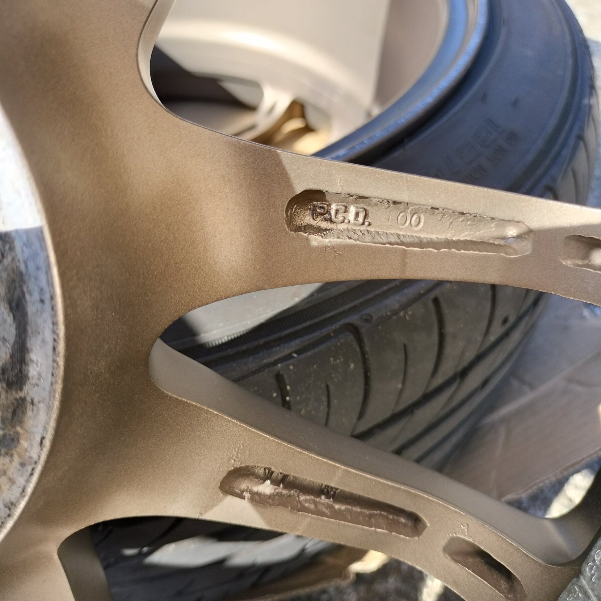 The finish on these is in very good condition. There are a few sections of rash, light grazing, and scratches (please view the enlarged pictures to see clearly). No bends, cracks, or repairs. No bubbling in the finish - the bronze looks great. Great specs, great finish, just a few bits of rash away from being flawless.